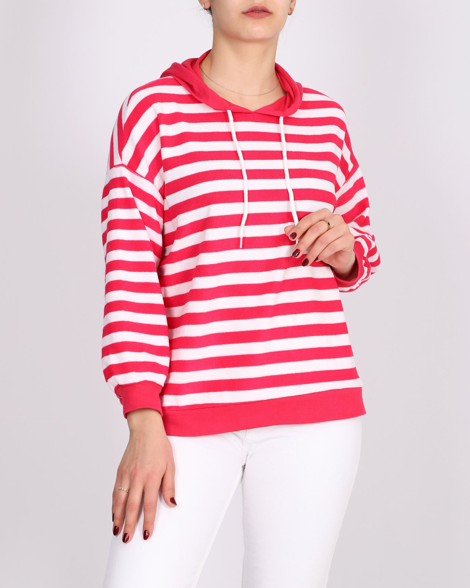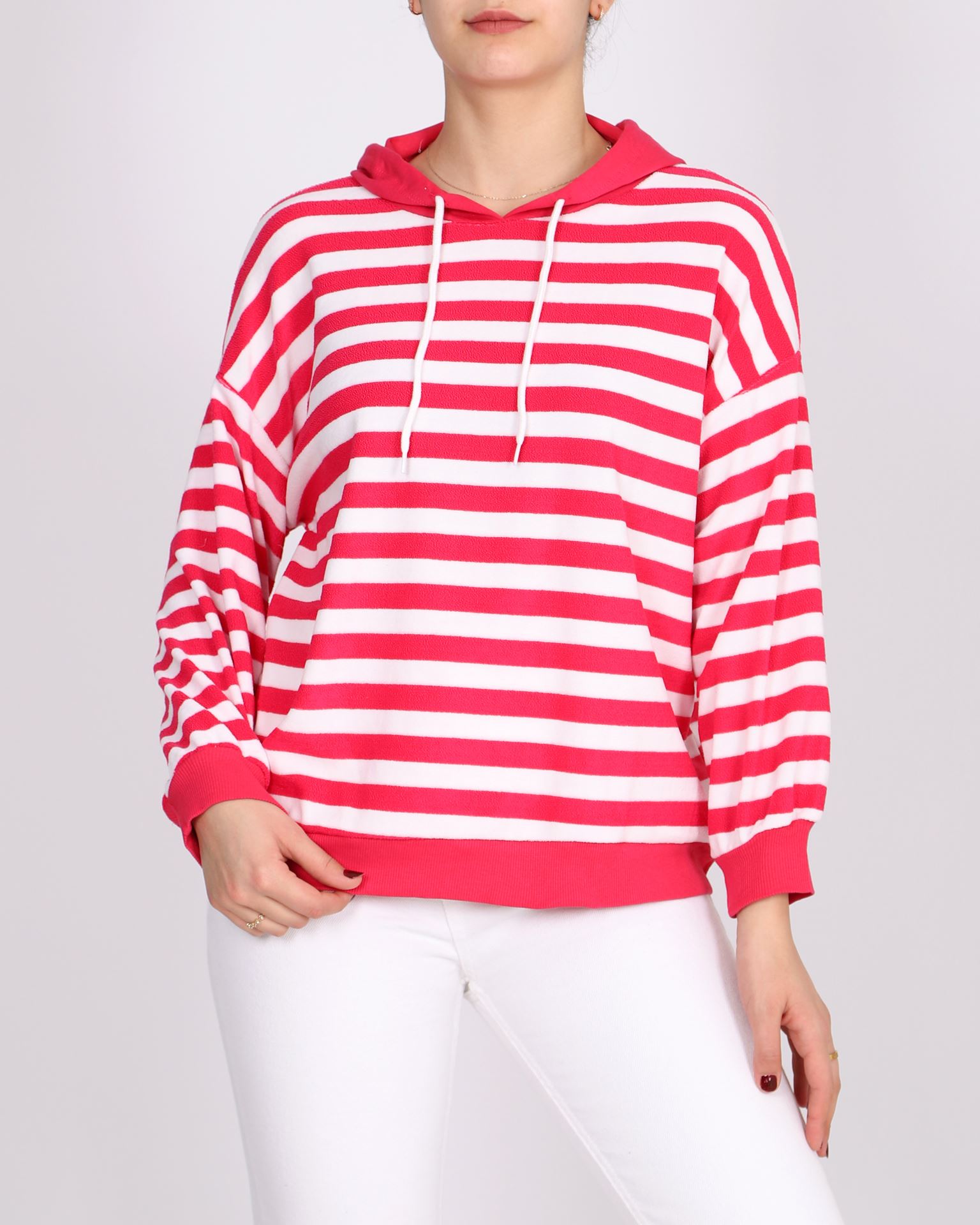 Fuşya Havlu Kumaş Şeritli Sweat SWT831