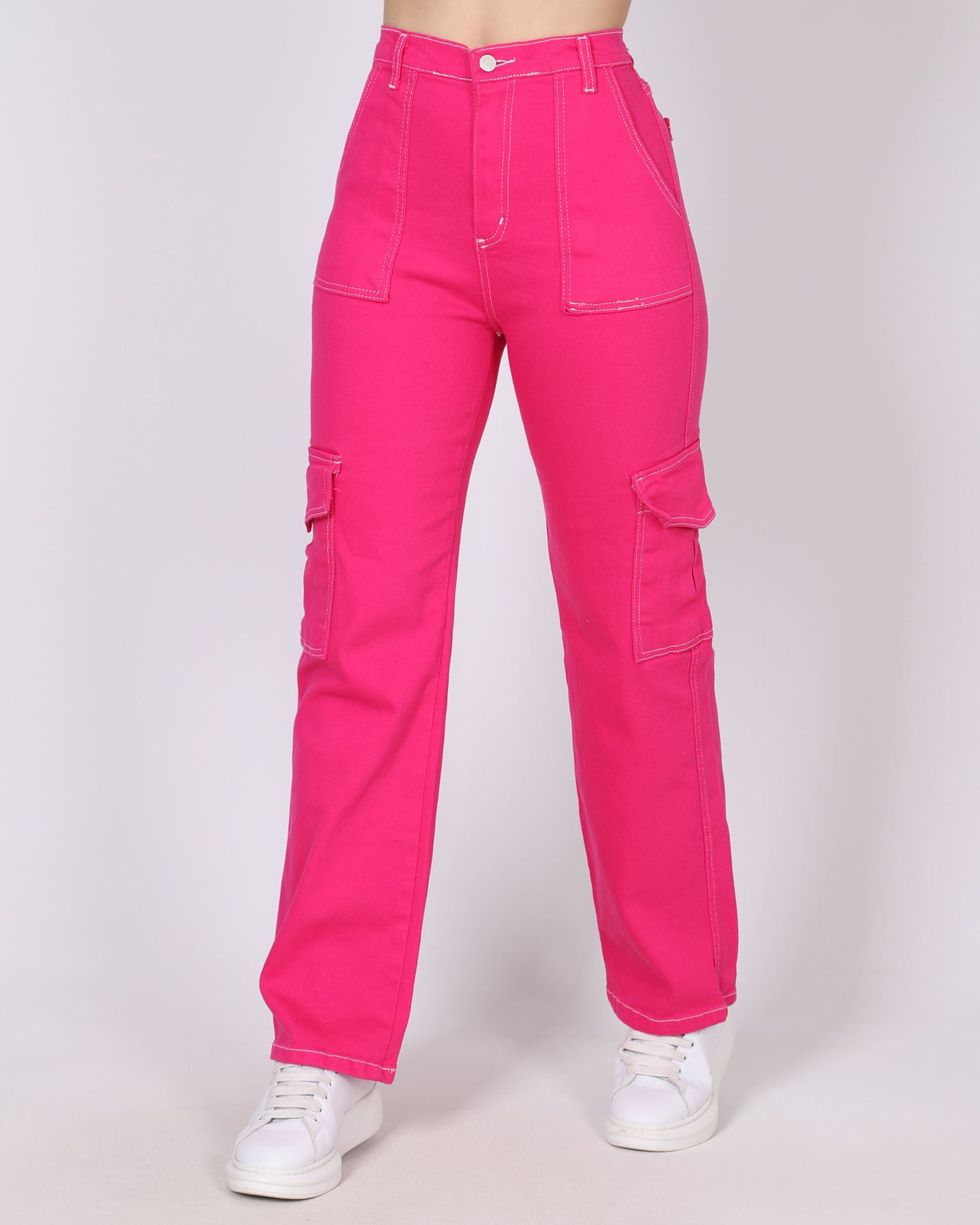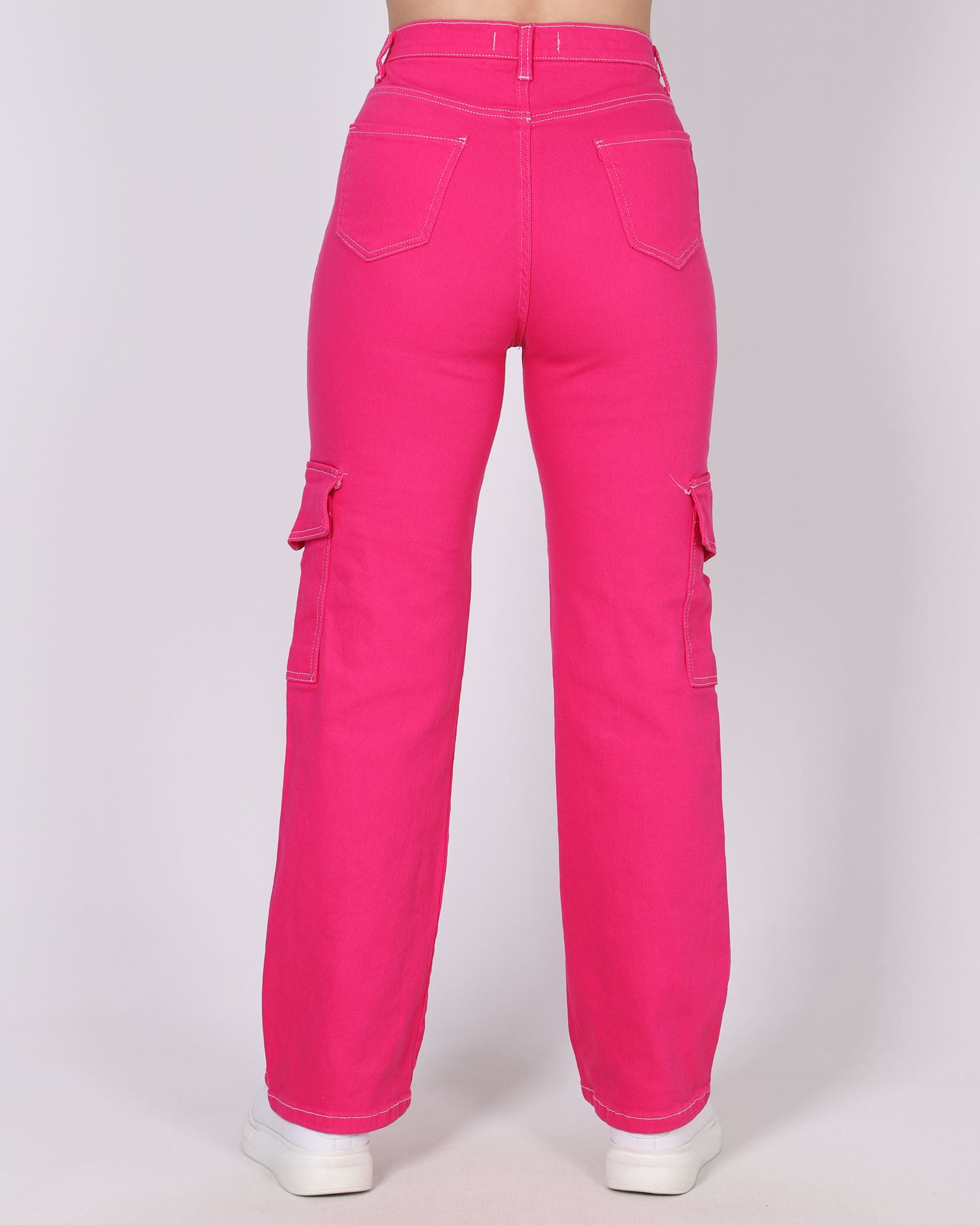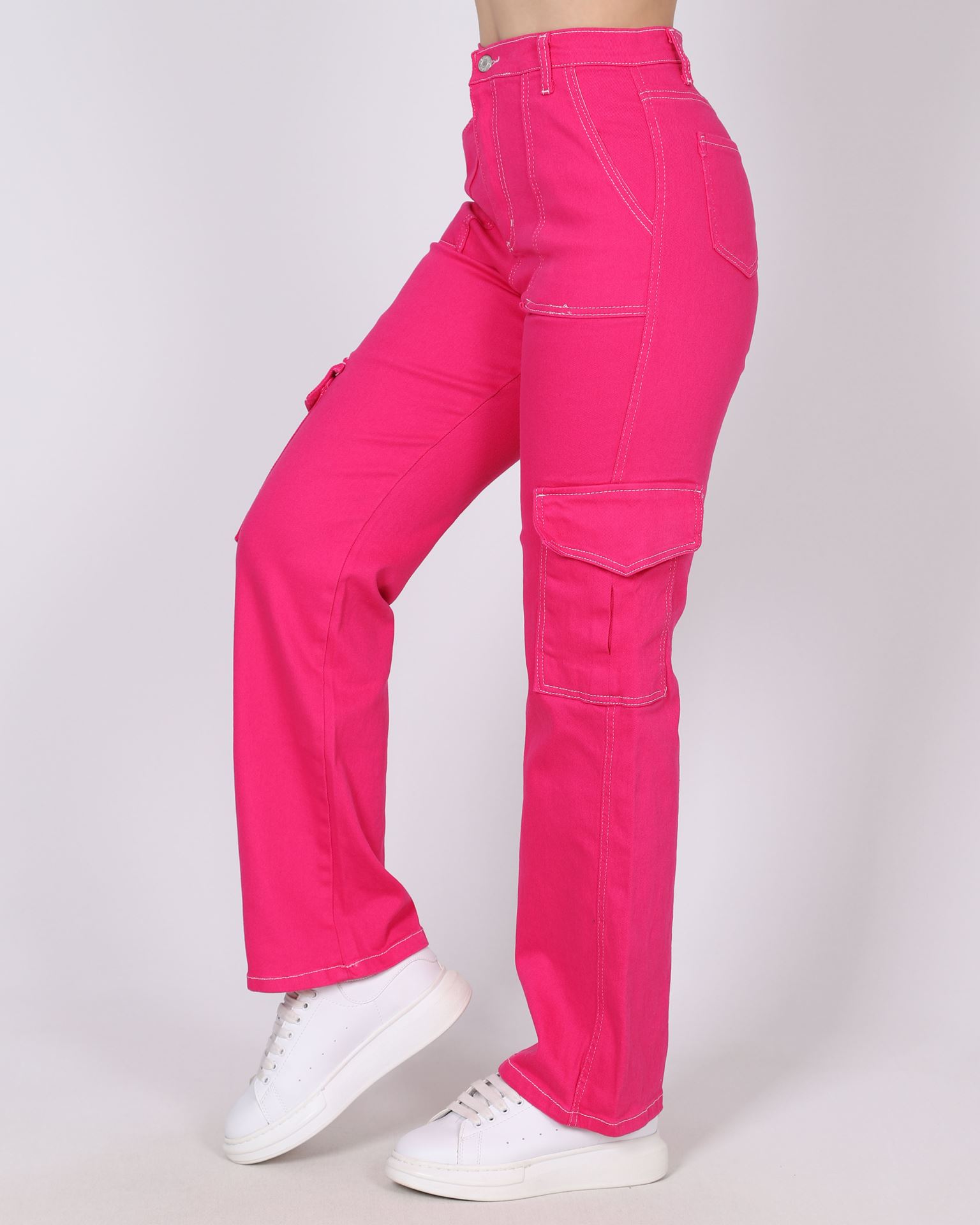 Fuşya Kargo Cepli Kot Pantolon PNT599
