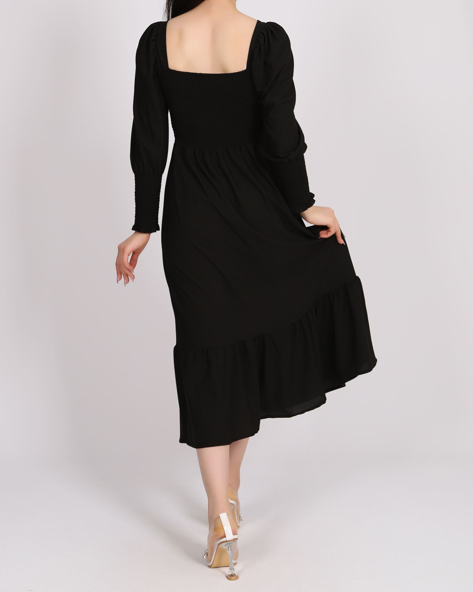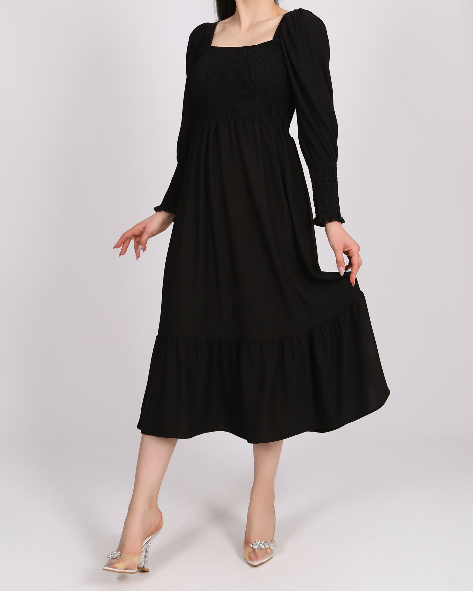 Gipeli Uzun Kol Siyah Elbise ELB740