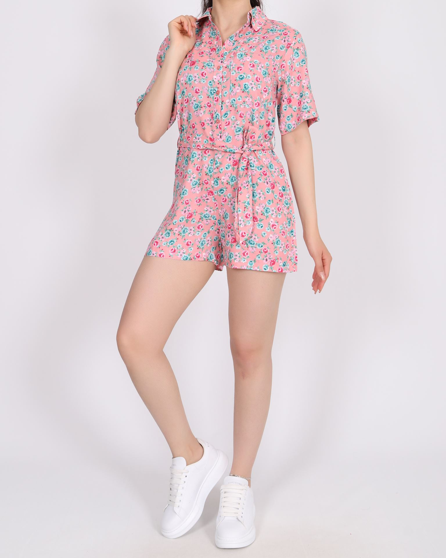 Gömlek Yaka Desenli Şort Tulum TLM323