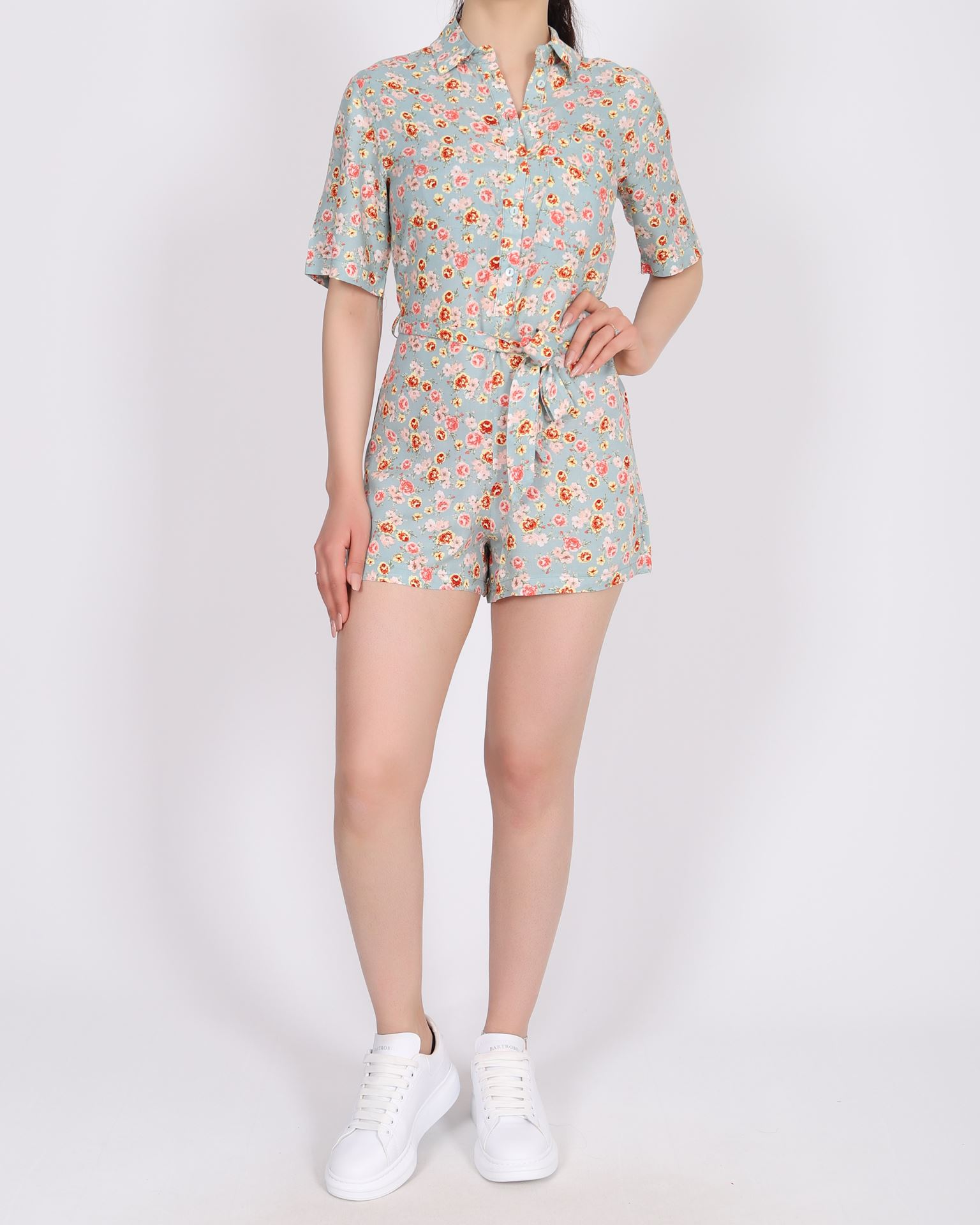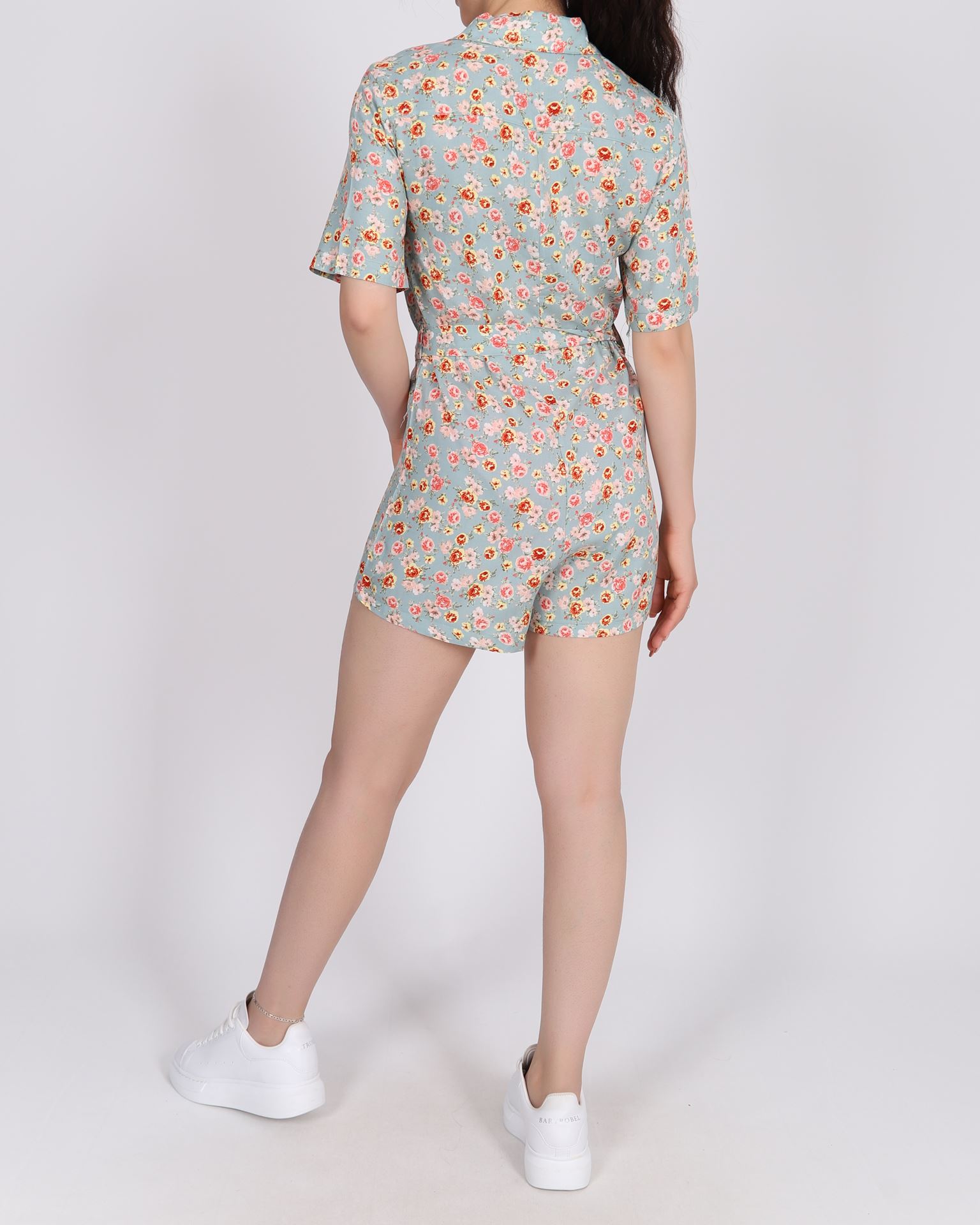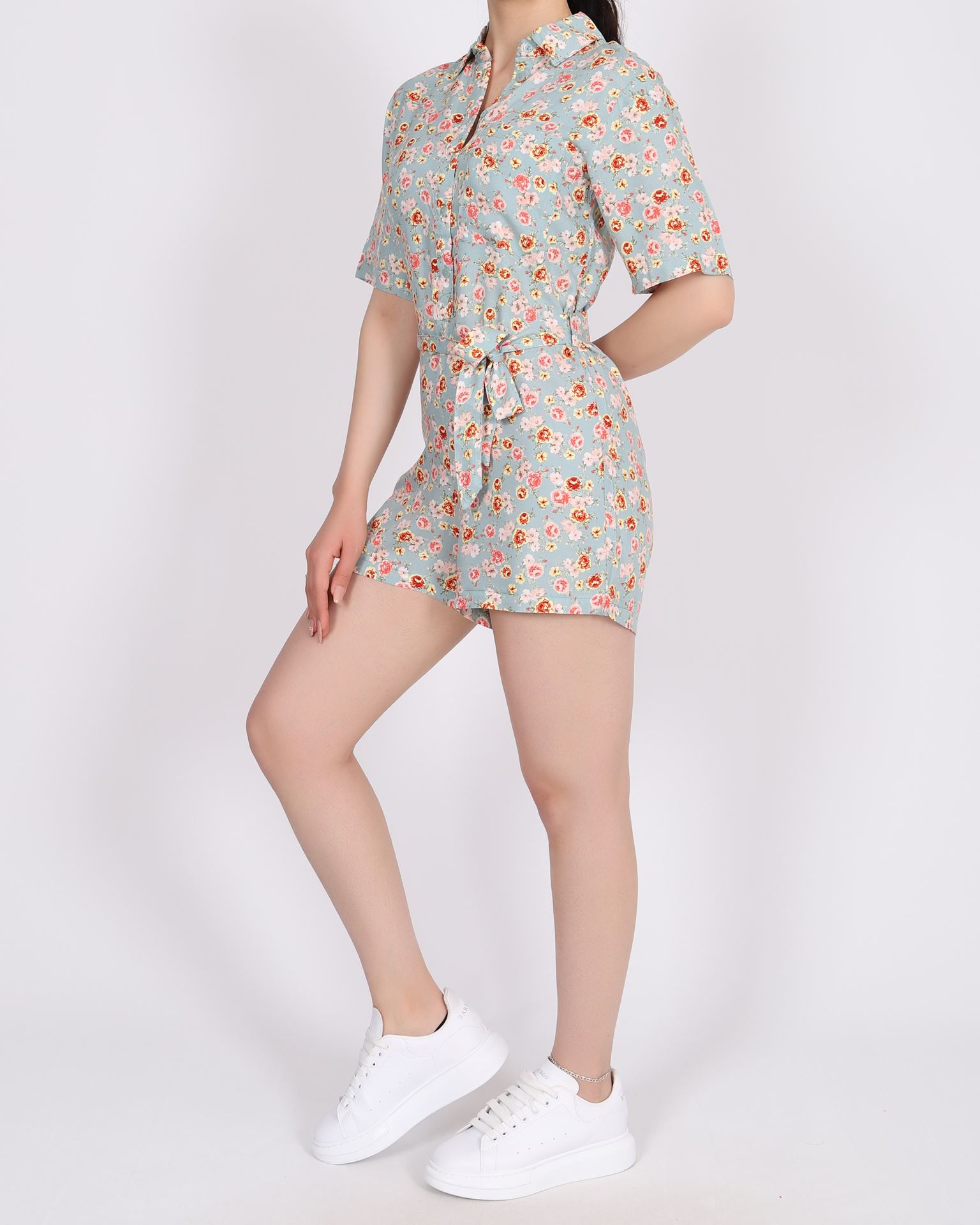 Gömlek Yaka Desenli Şort Tulum TLM324