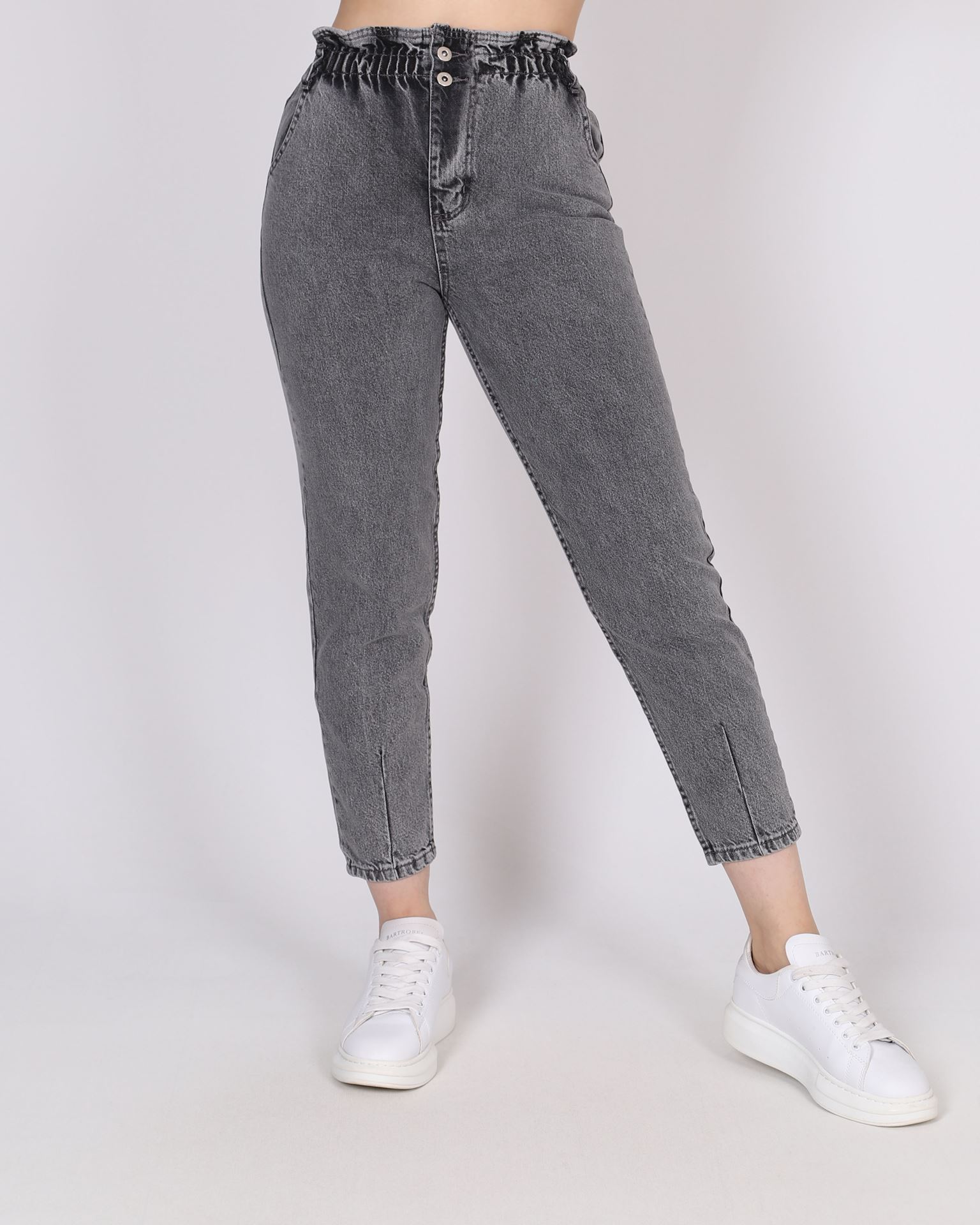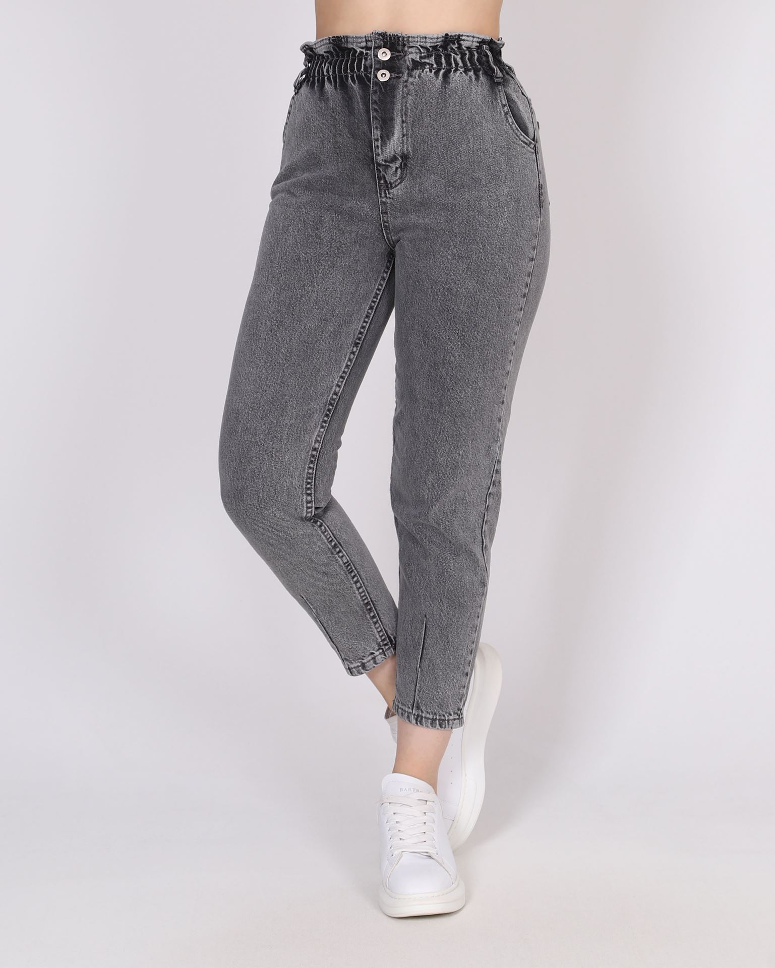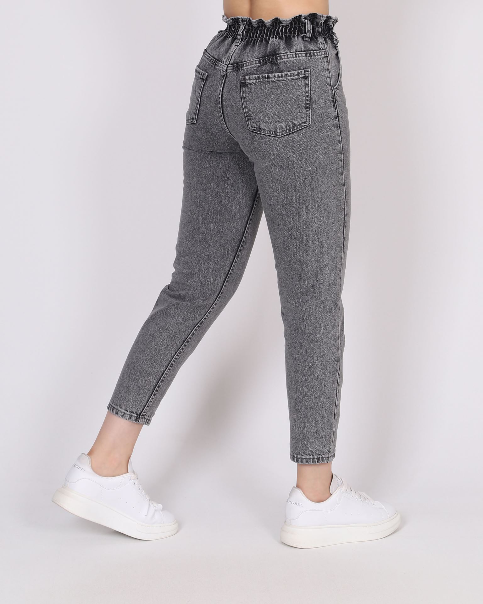 Gri Beli Lastikli Mom Kot Pantolon PNT684