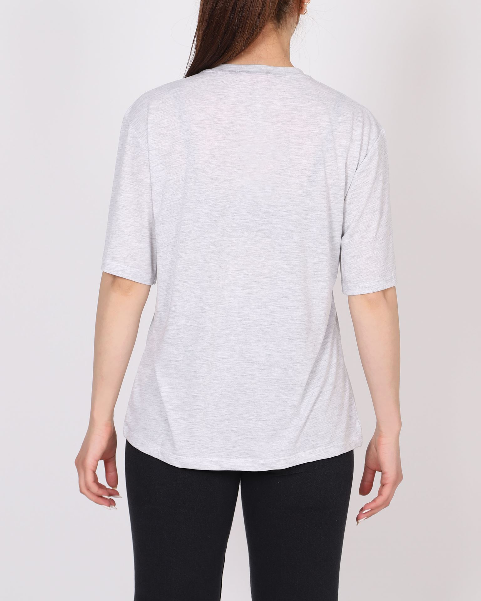 Gri Bisiklet Yaka Basic T-shirt TSH349