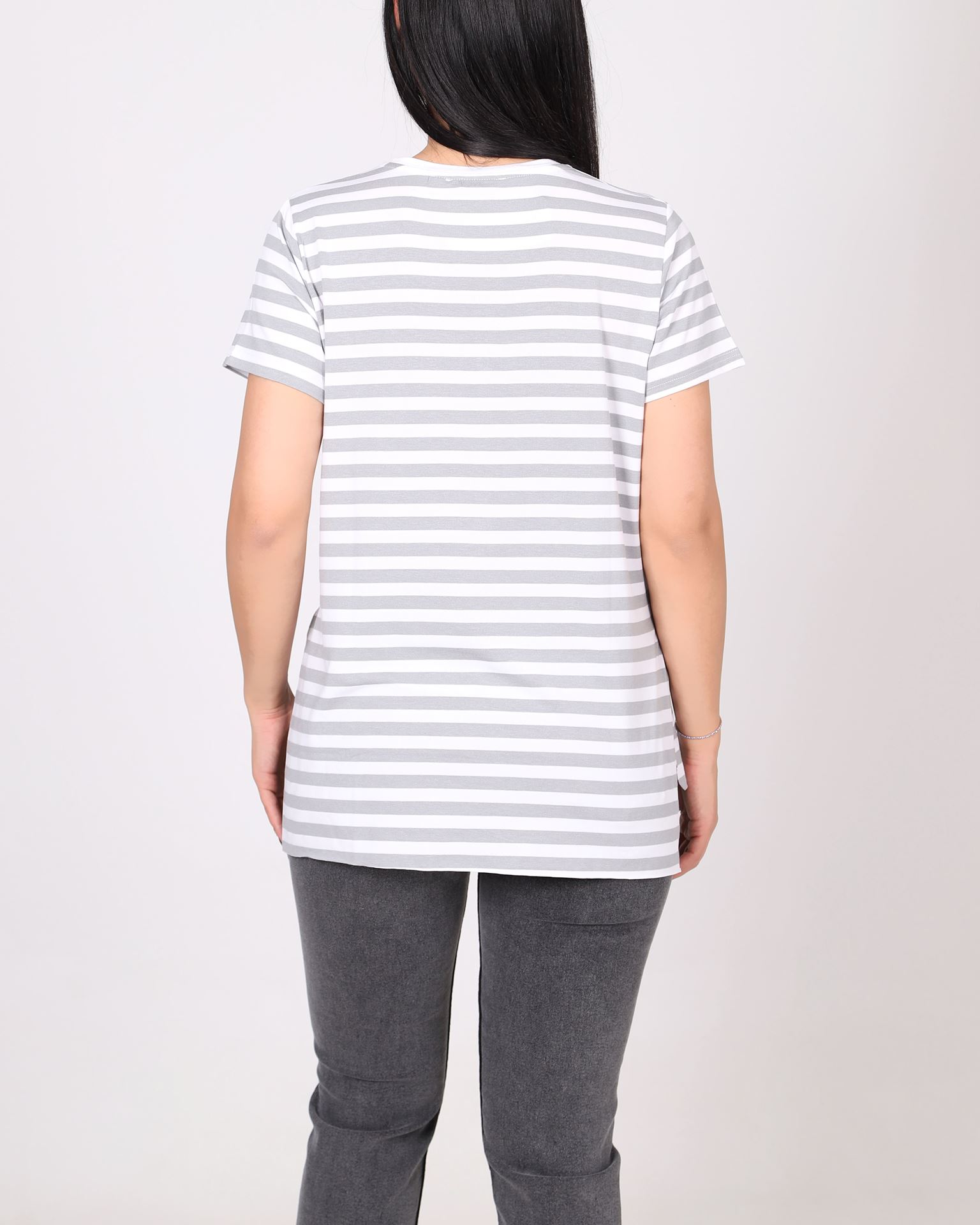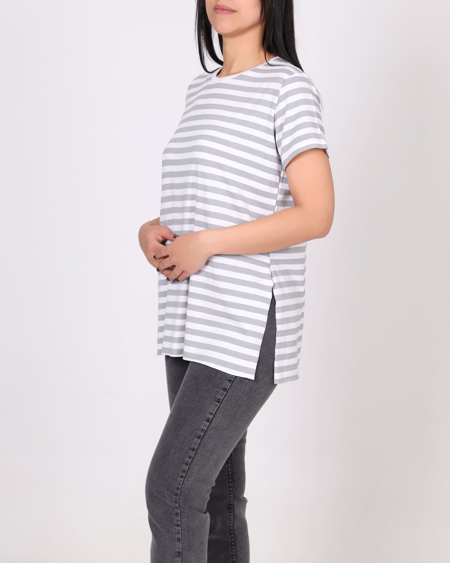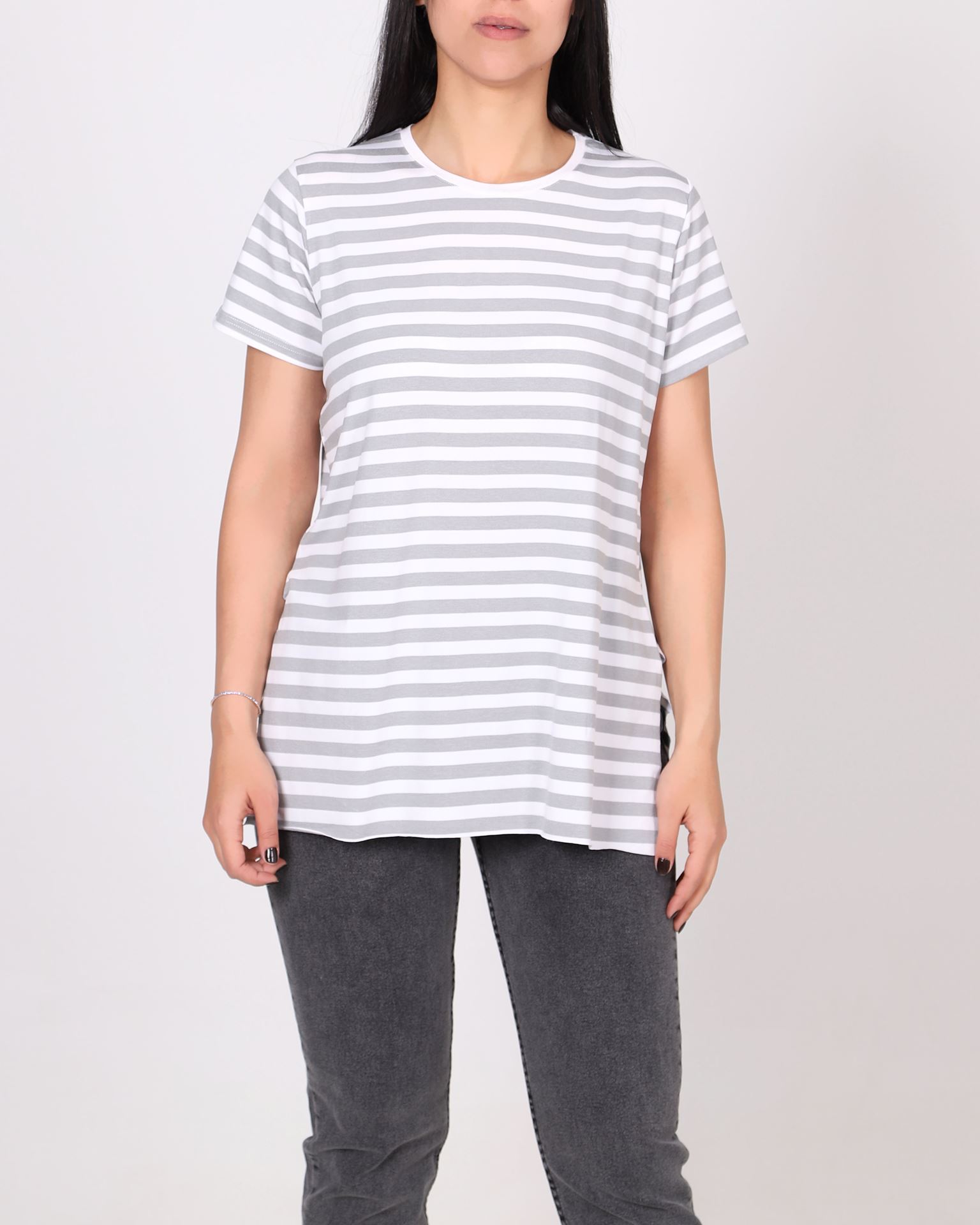 Gri Çizgili Yırtmaçlı T-Shirt TSH391
