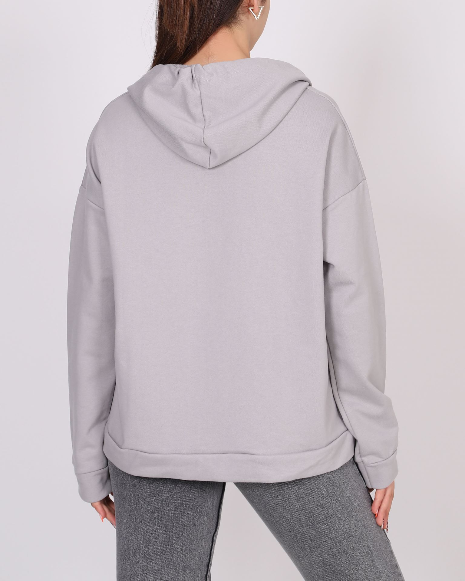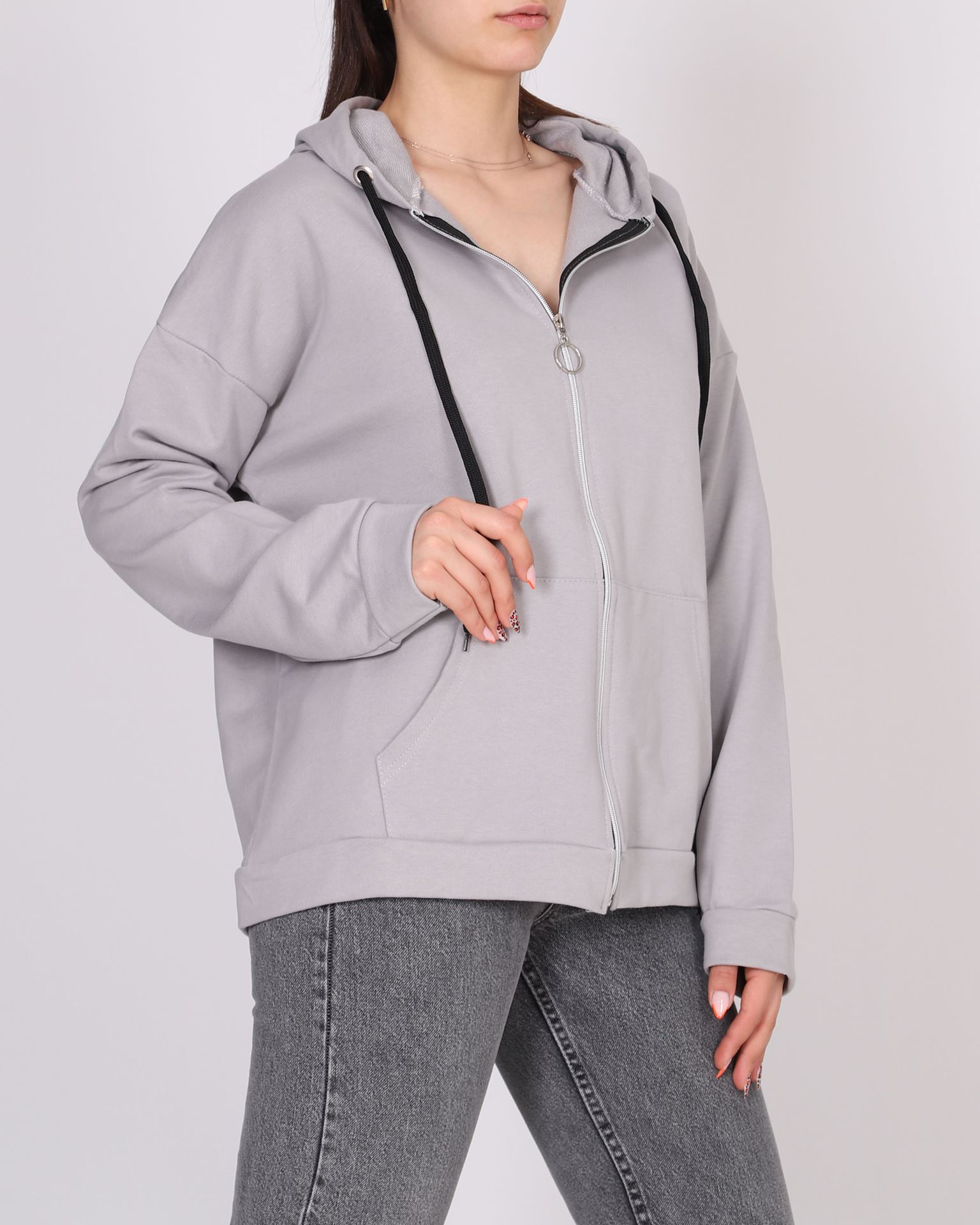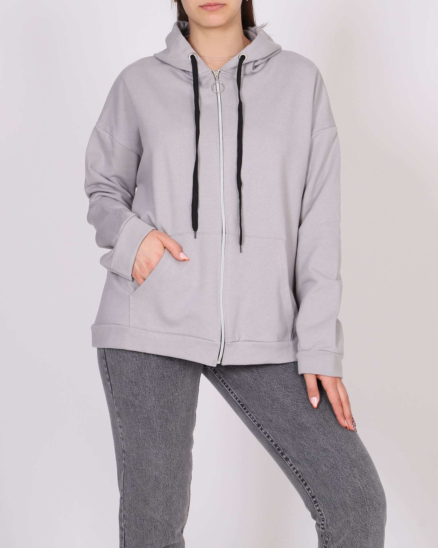 Gri Kapüşonlu Fermuarlı Sweat SWT959
