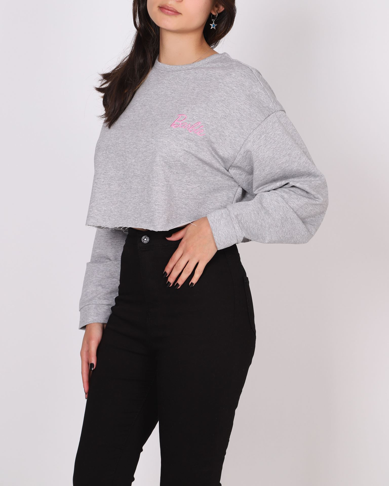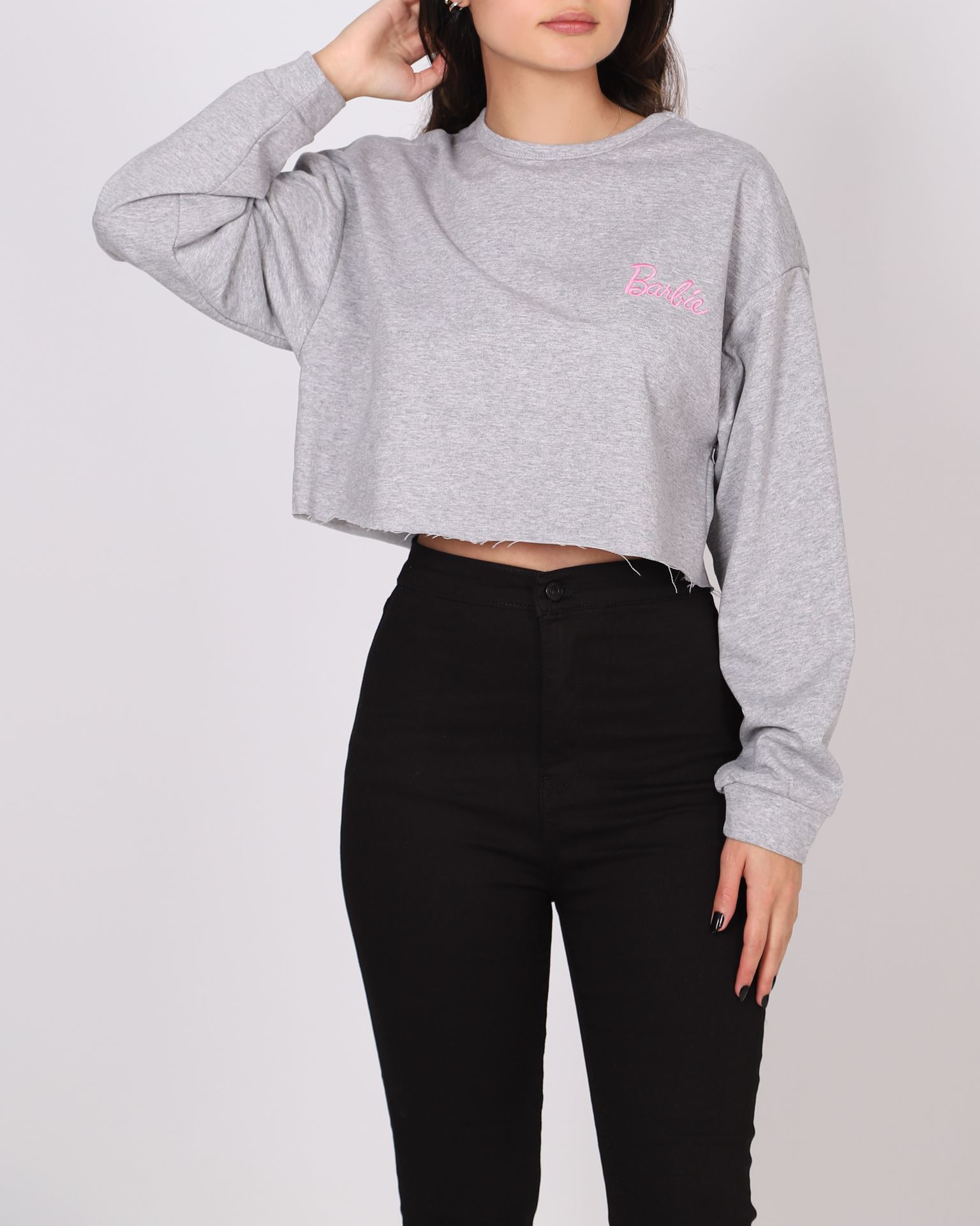 Gri Nakışlı Crop Sweat SWT988