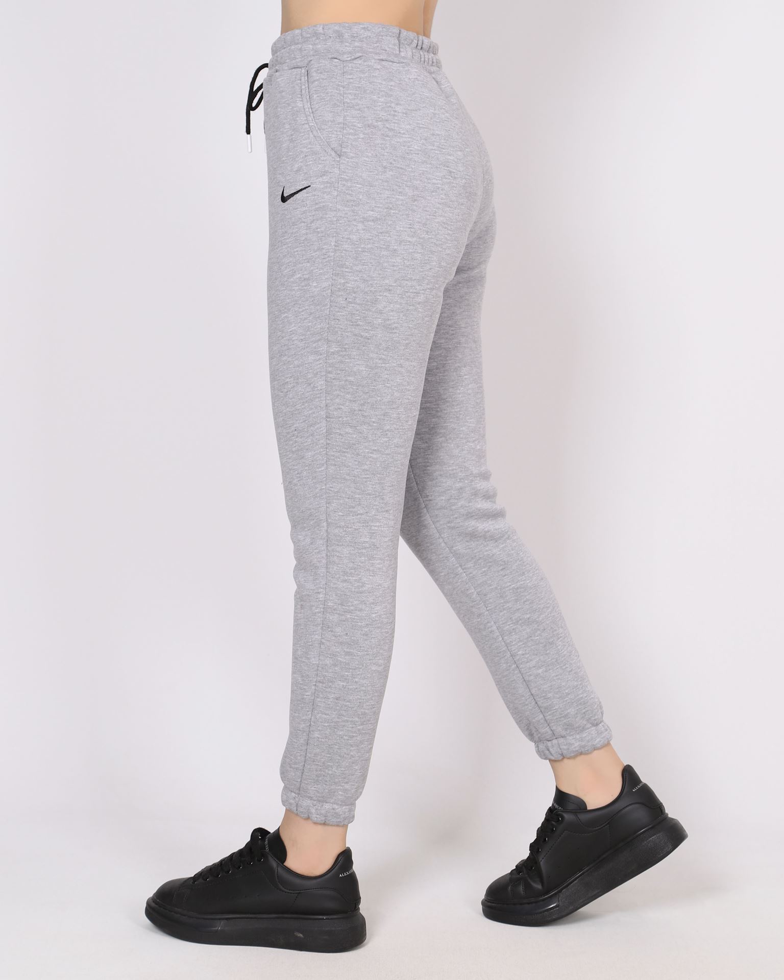 Gri Nakışlı Üç İplik Şardonlu Eşofman Altı TKM2607