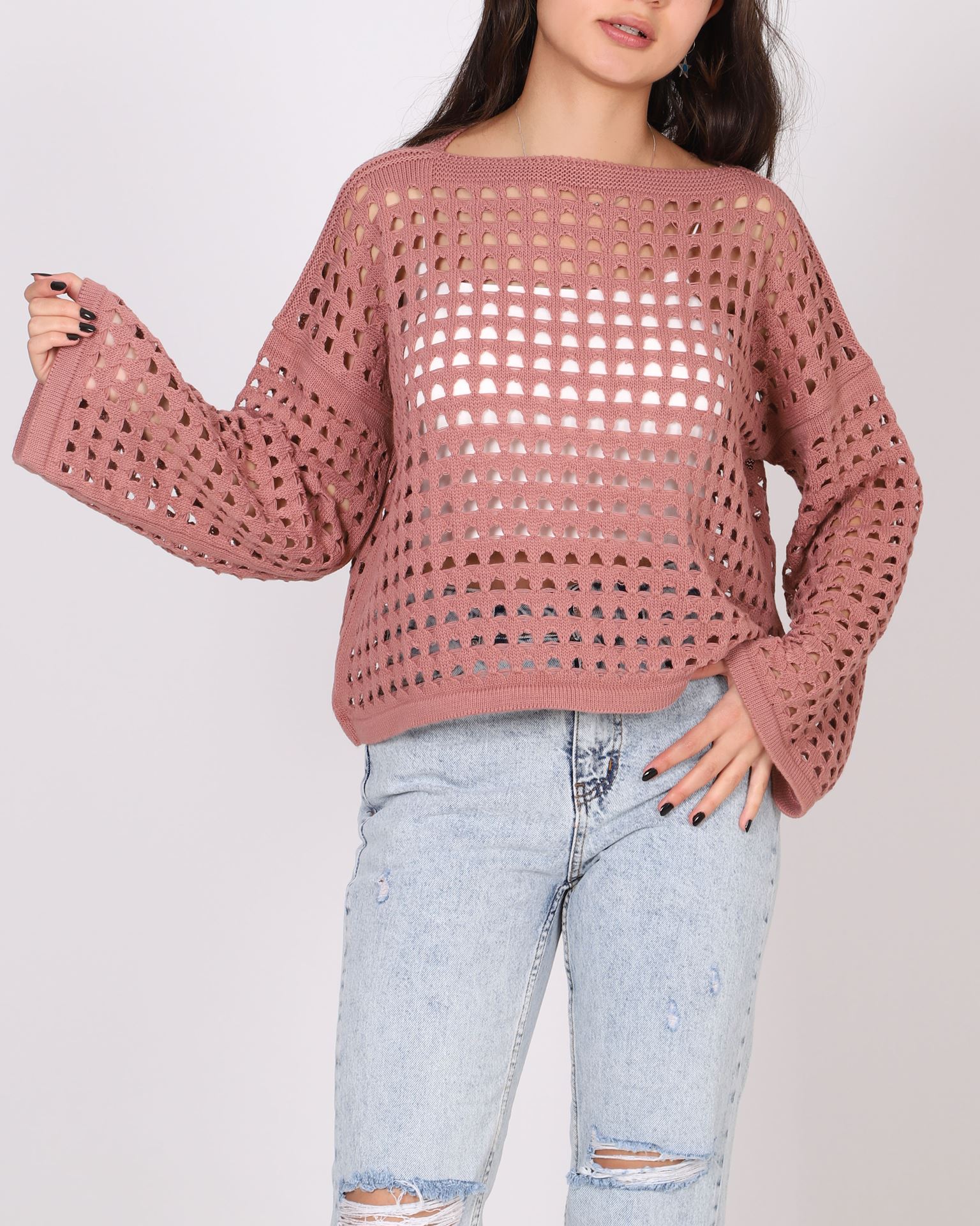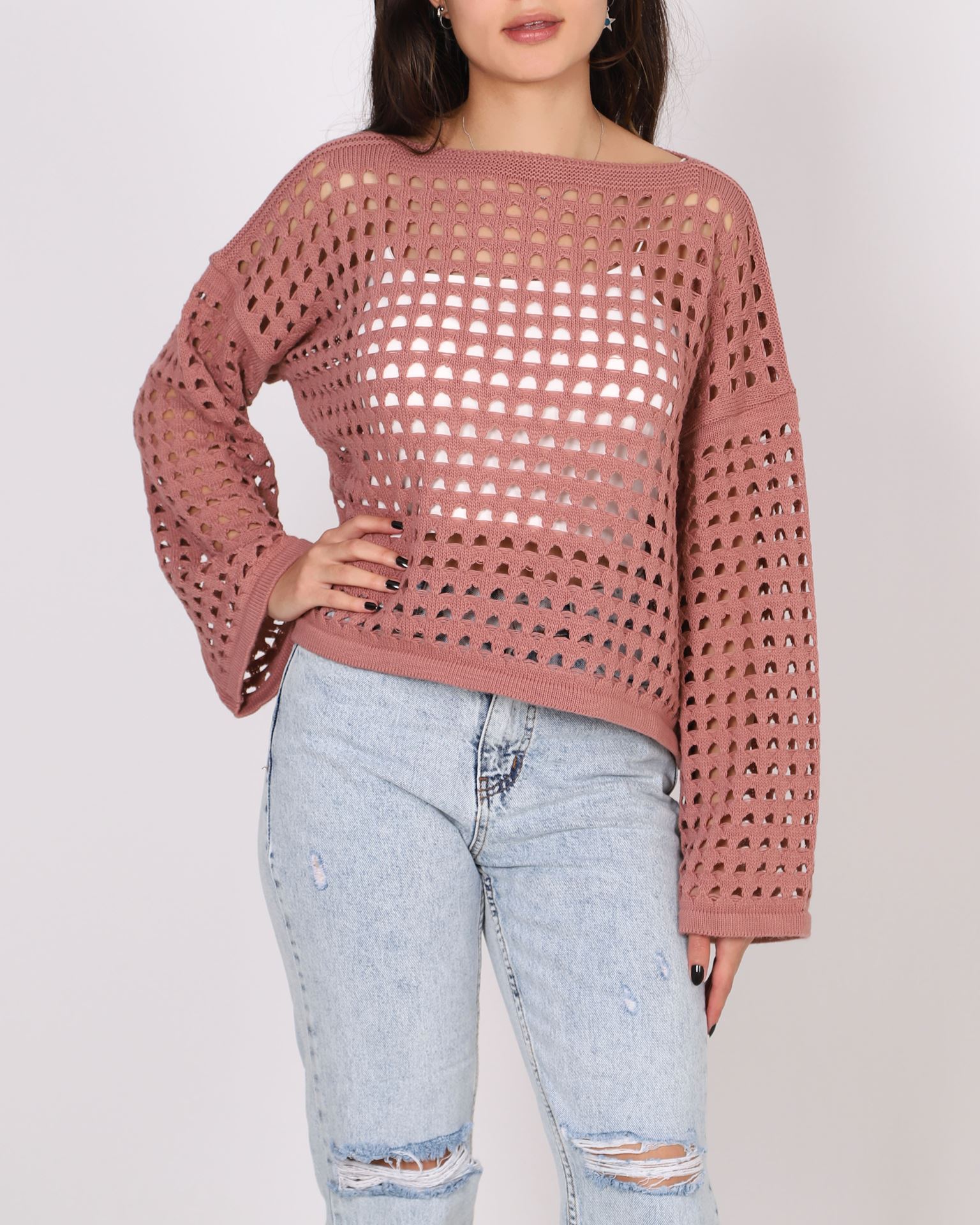 Gül Kurusu Ajurlu Triko Bluz BLZ473