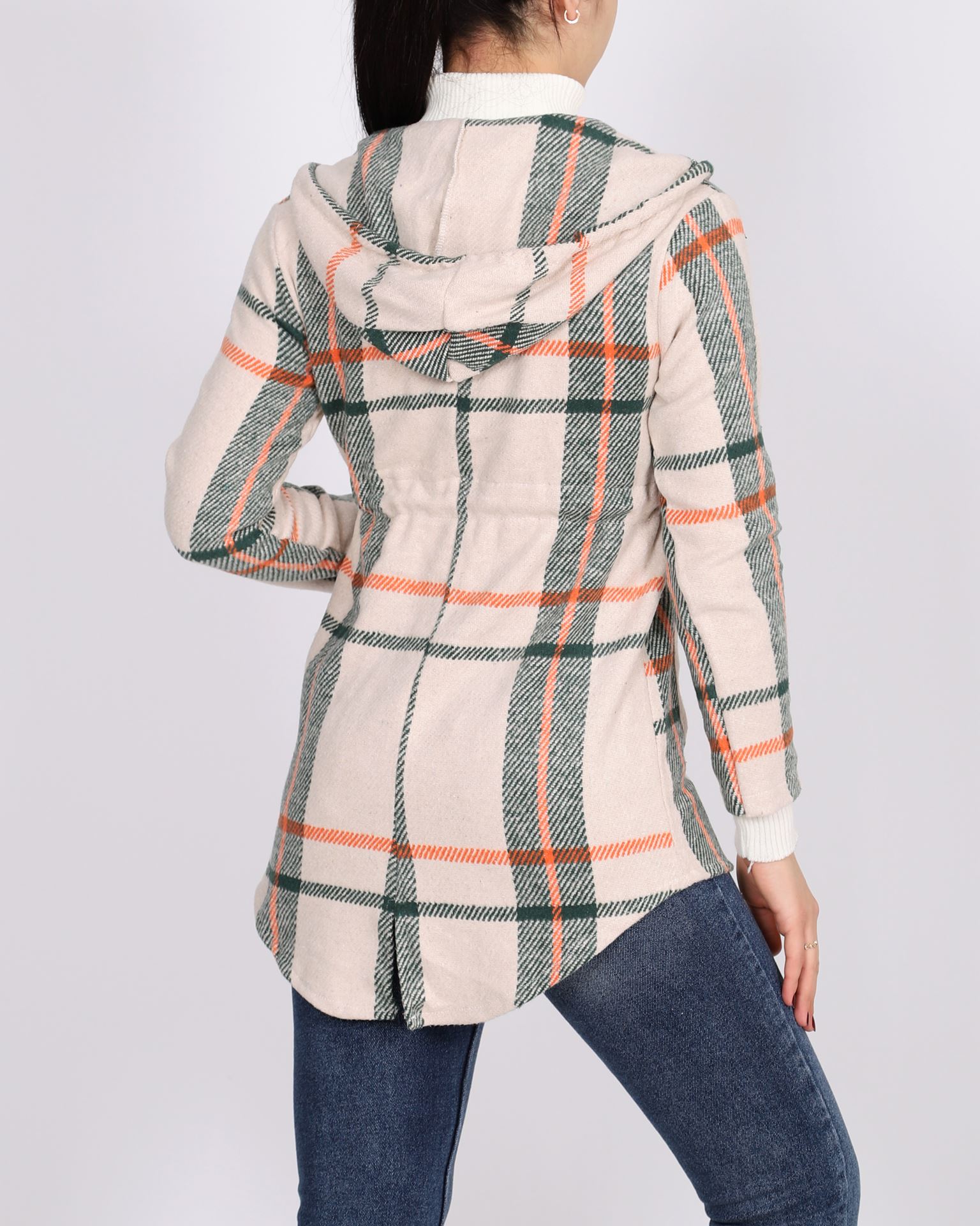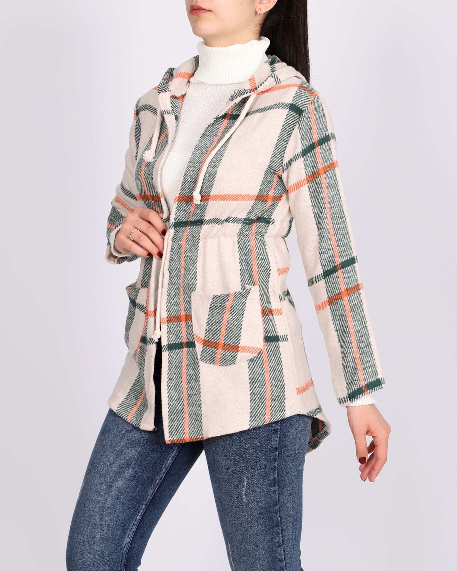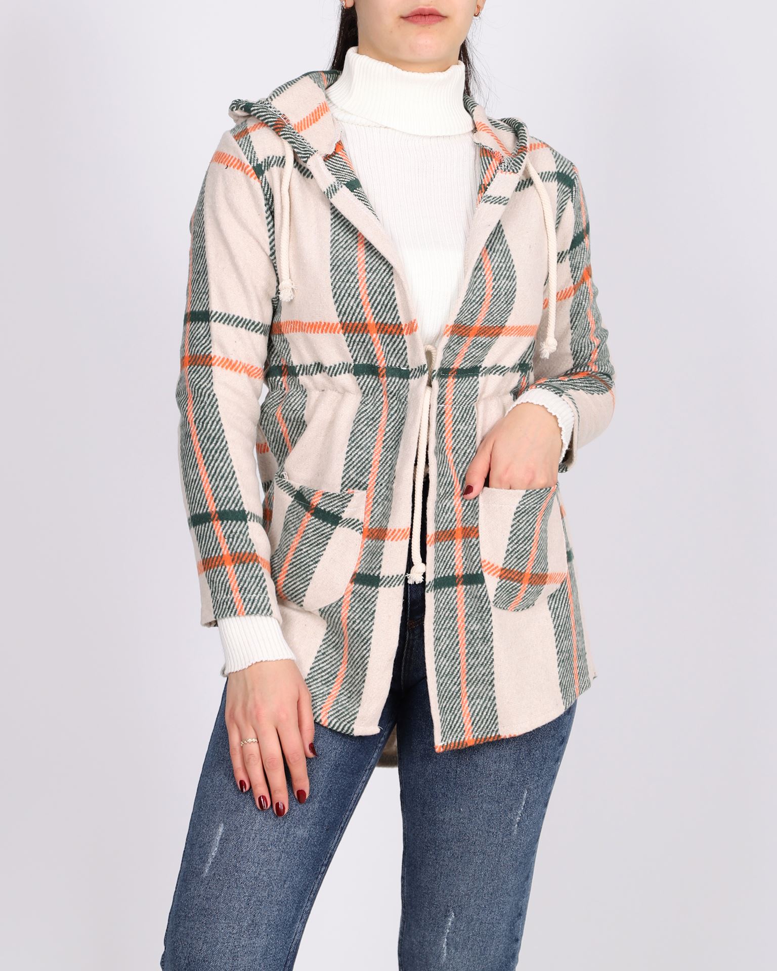 Haki Ekoseli Kapüşonlu Hırka HRK519