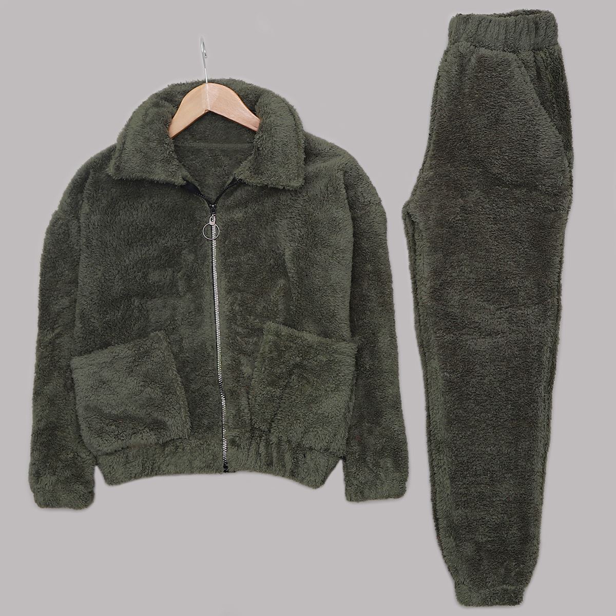 Haki Fermuarlı Peluş Eşofman Takımı TKM1249