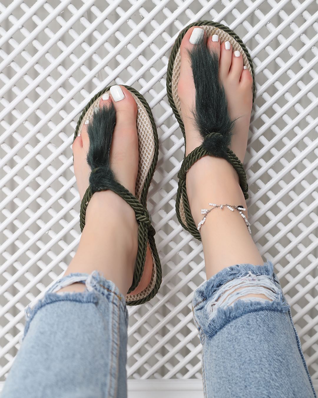 Haki Tüylü Halat Sandalet SND035