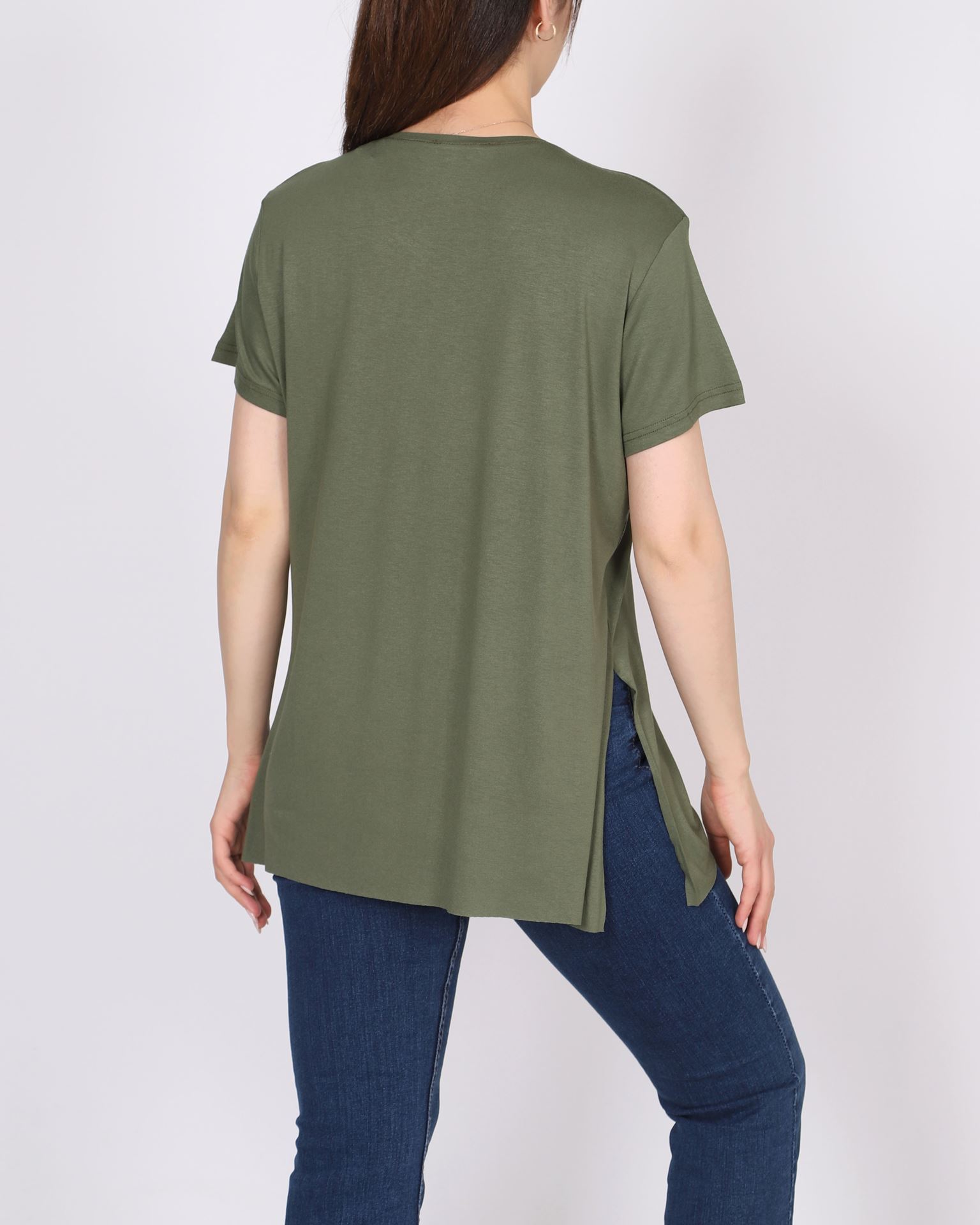 Haki V Yaka Yırtmaçlı T-shirt TSH376