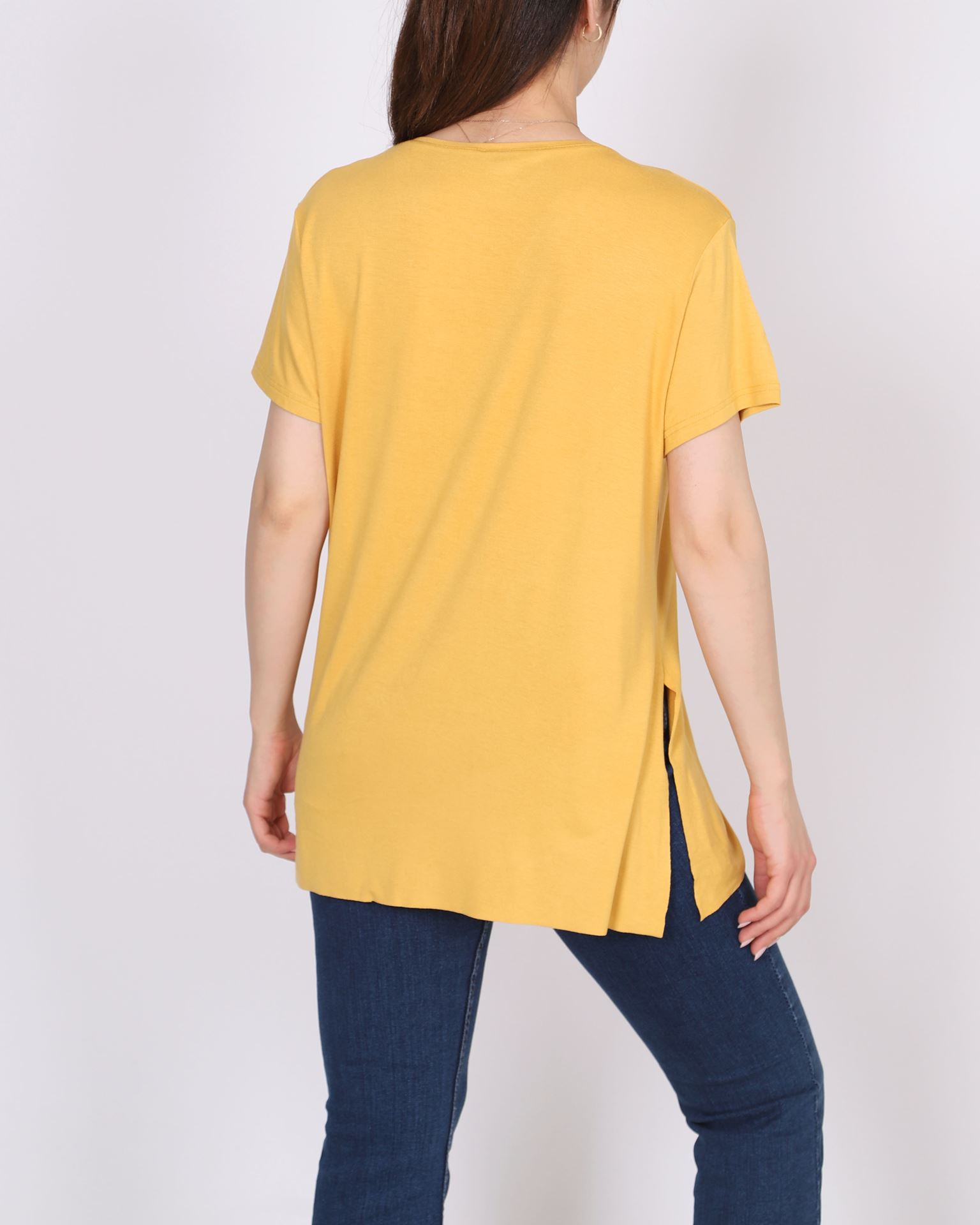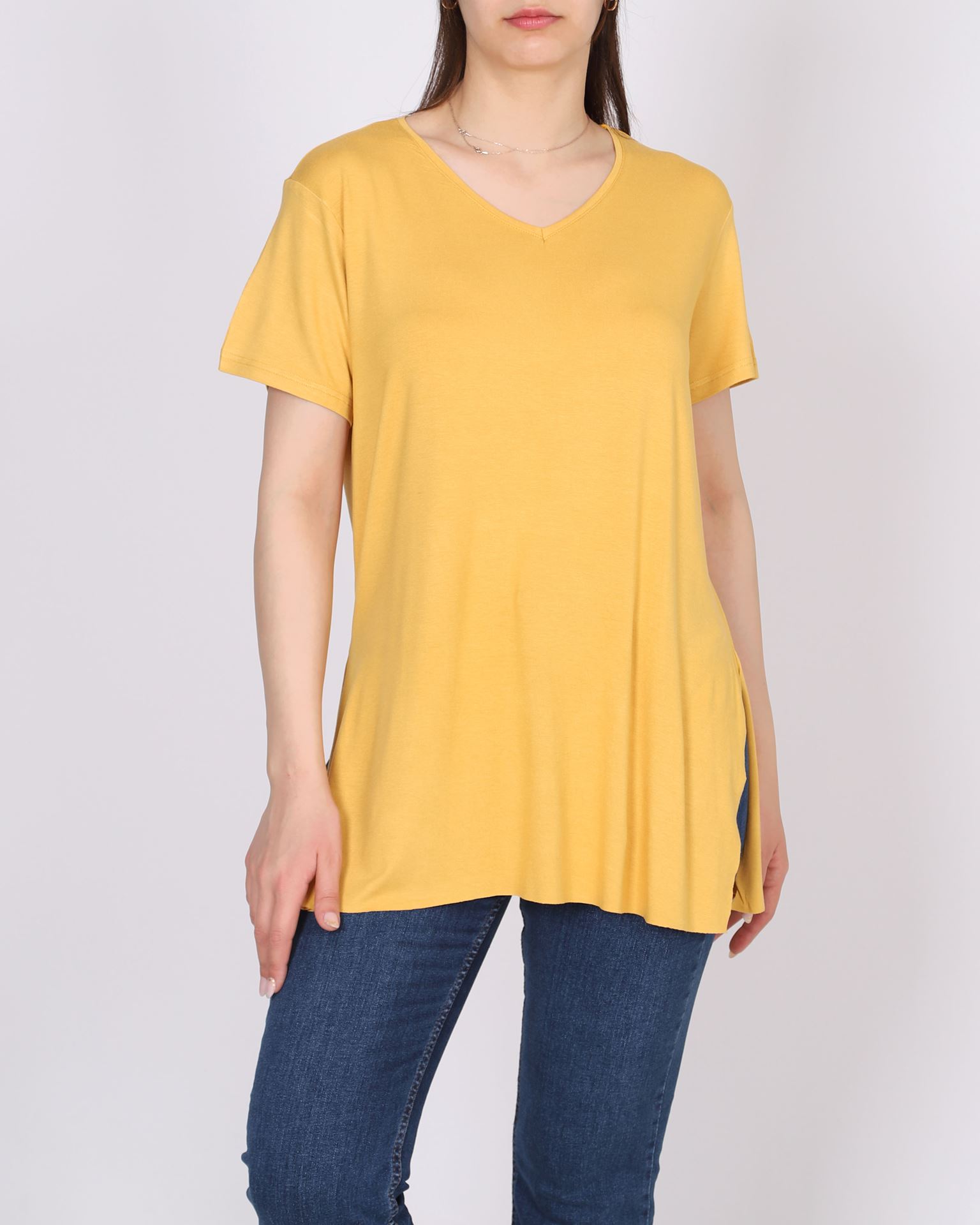 Hardal V Yaka Yırtmaçlı T-shirt TSH380