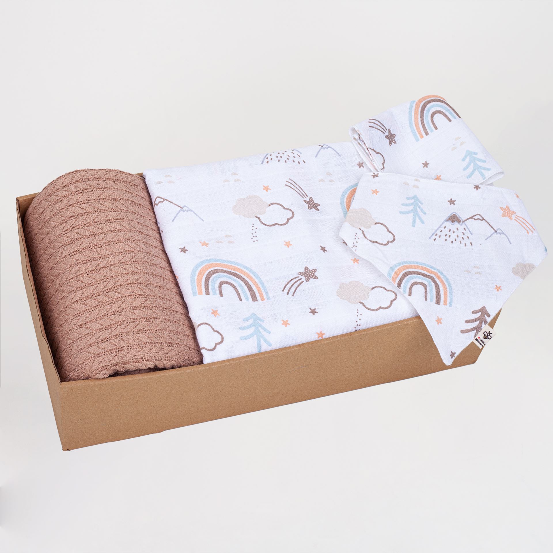 •Set içeriği:1 Adet Örgü Pike(115x115cm)1 Adet Müslin Örtü(105xx105cm)4 Adet Ağız Mendili(2 tanesi hediyedir)2 Adet Önlük