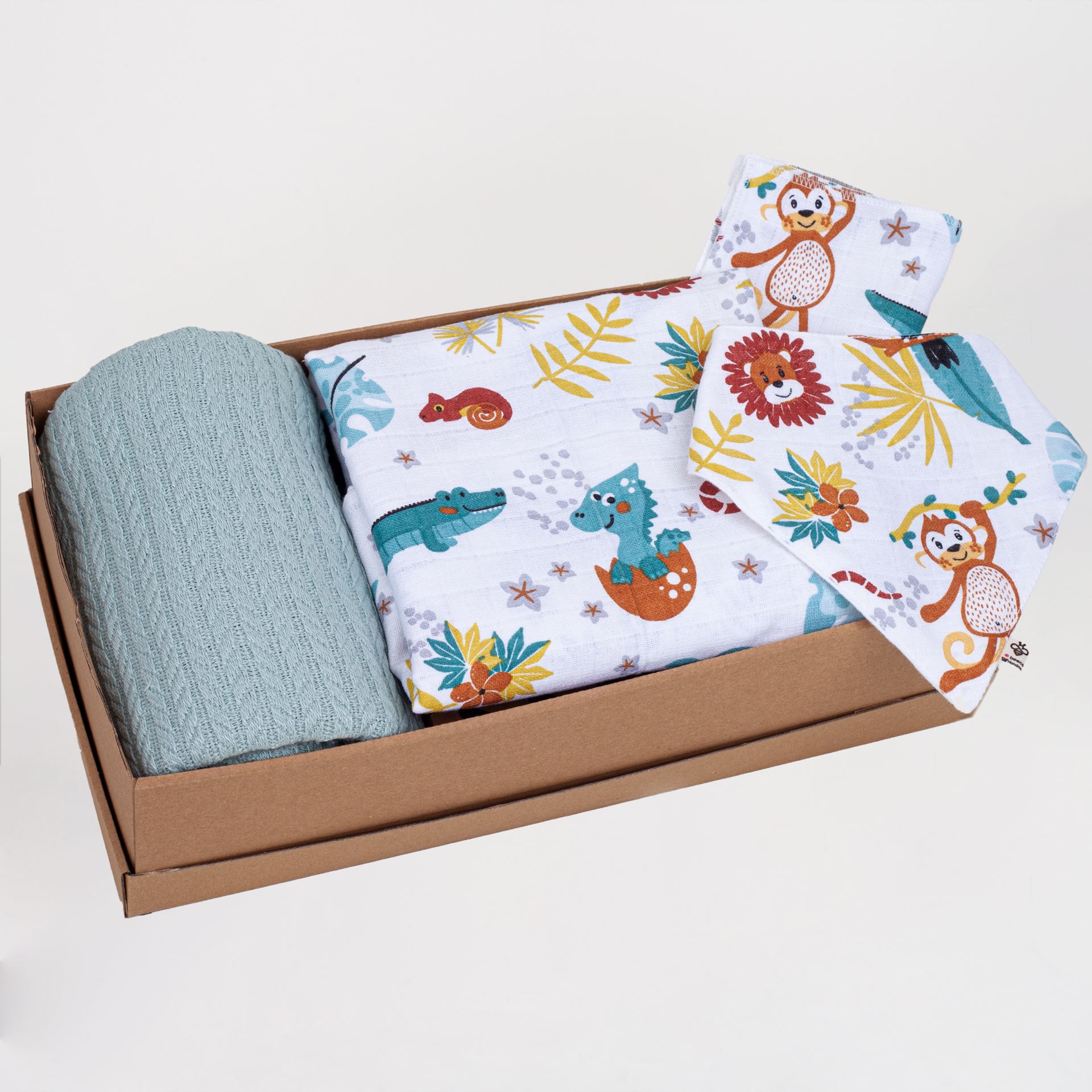 •Set içeriği:1 Adet Örgü Pike(115x115cm)1 Adet Müslin Örtü(105xx105cm)4 Adet Ağız Mendili(2 tanesi hediyedir)2 Adet Önlük