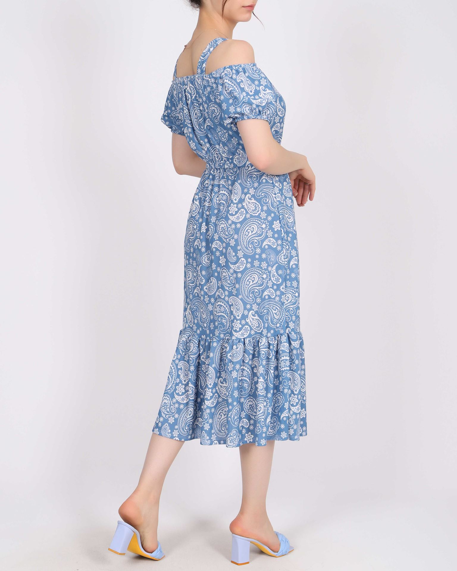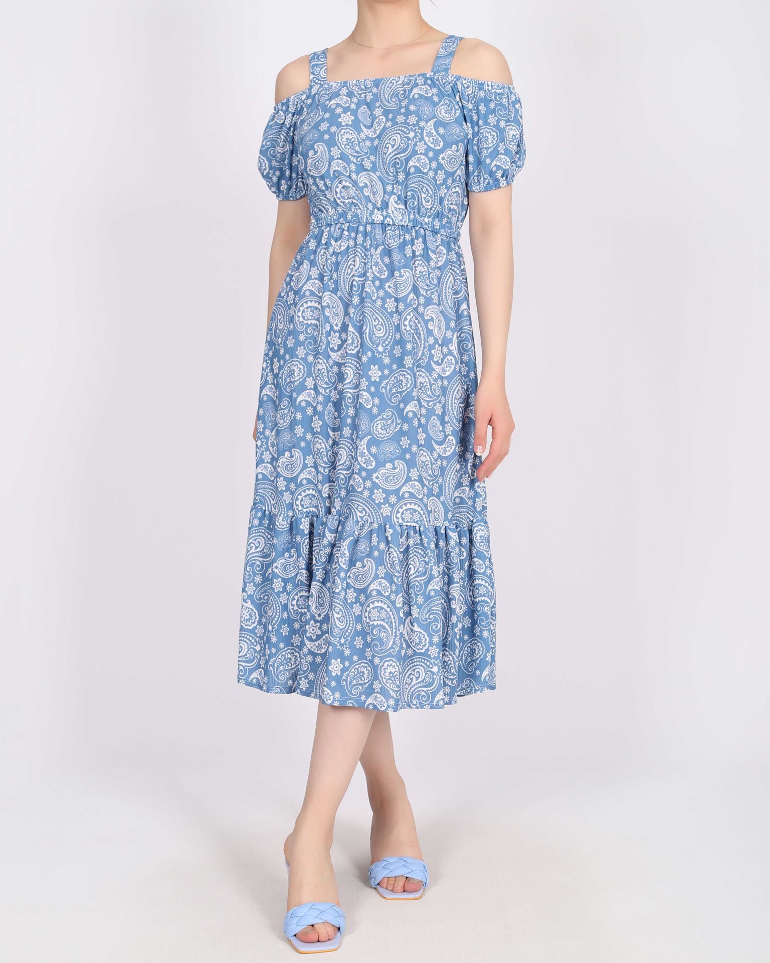 İndigo Beli Lastikli Krinkıl Elbise ELB862