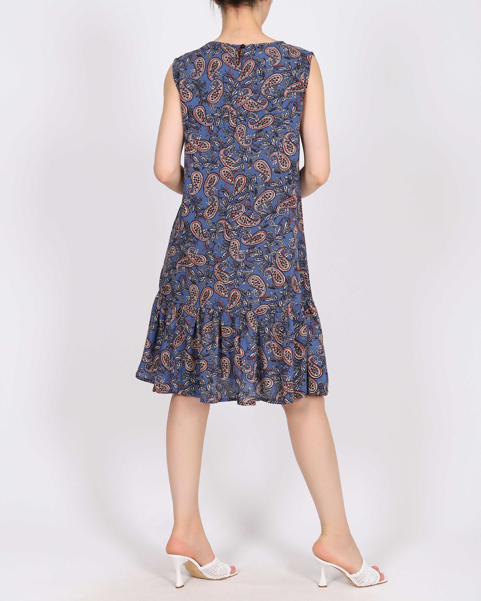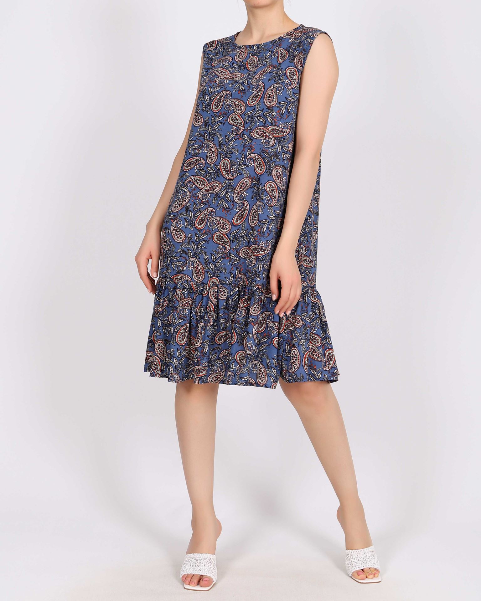 İndigo Eteği Fırfırlı Desenli Elbise ELB946