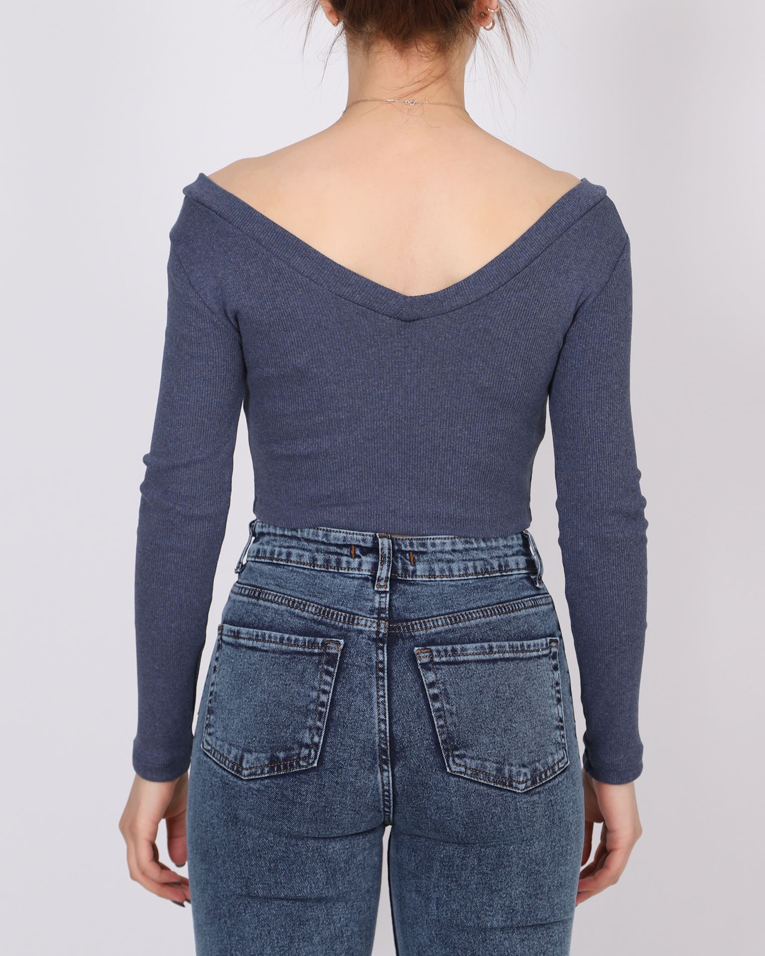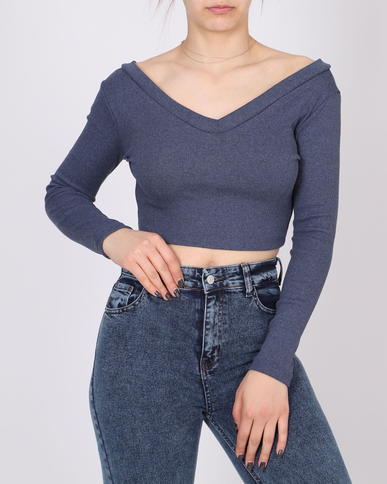İndigo Ön Arka V Yaka Bluz BLZ322