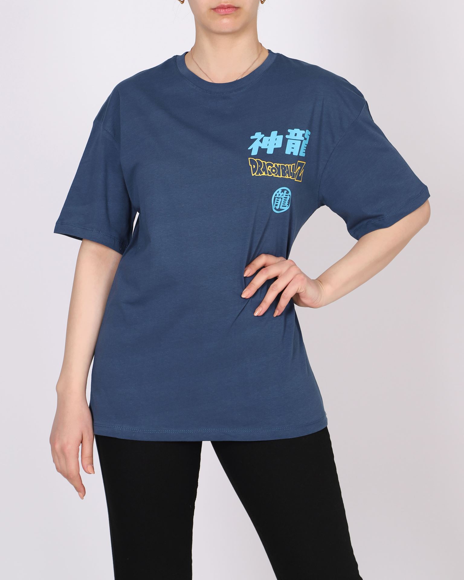 İndigo Oversize Baskılı T-shirt TSH368