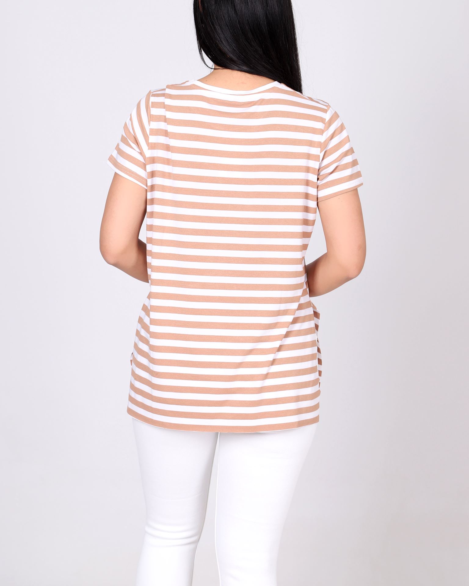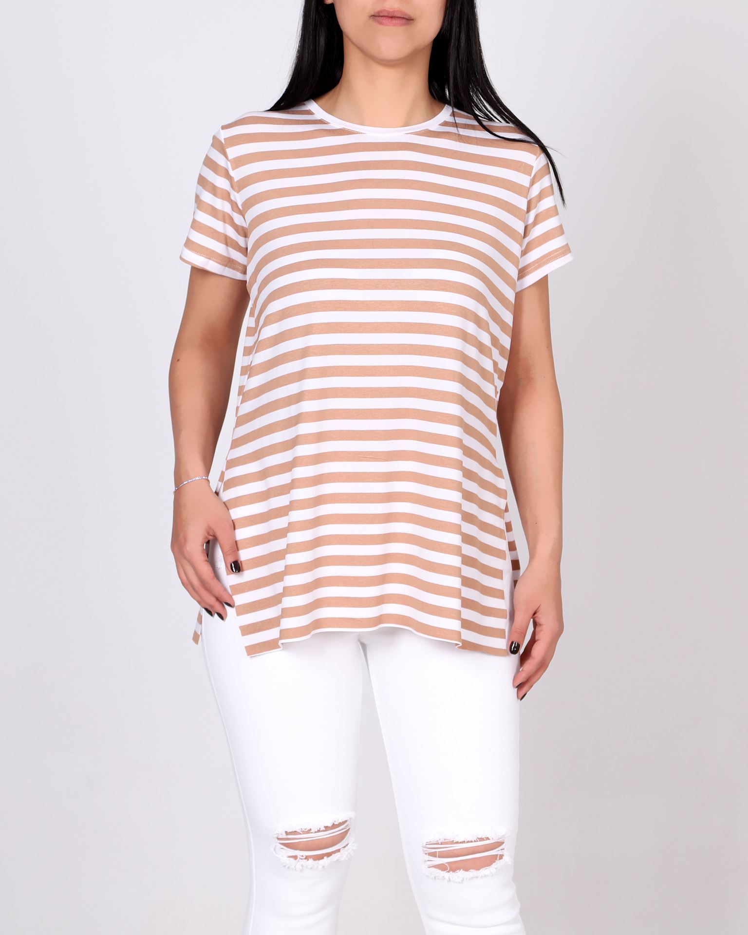 Kahve Çizgili Yırtmaçlı T-Shirt TSH392