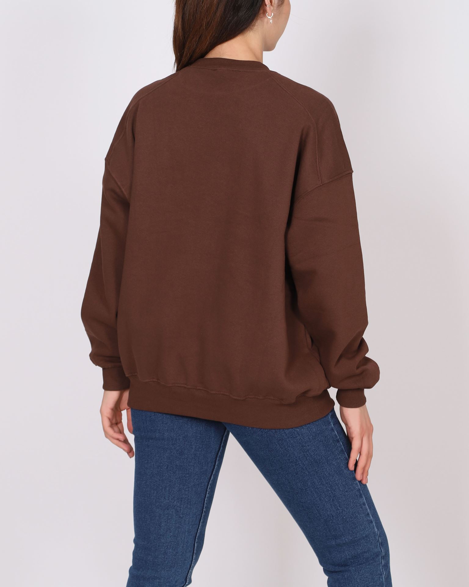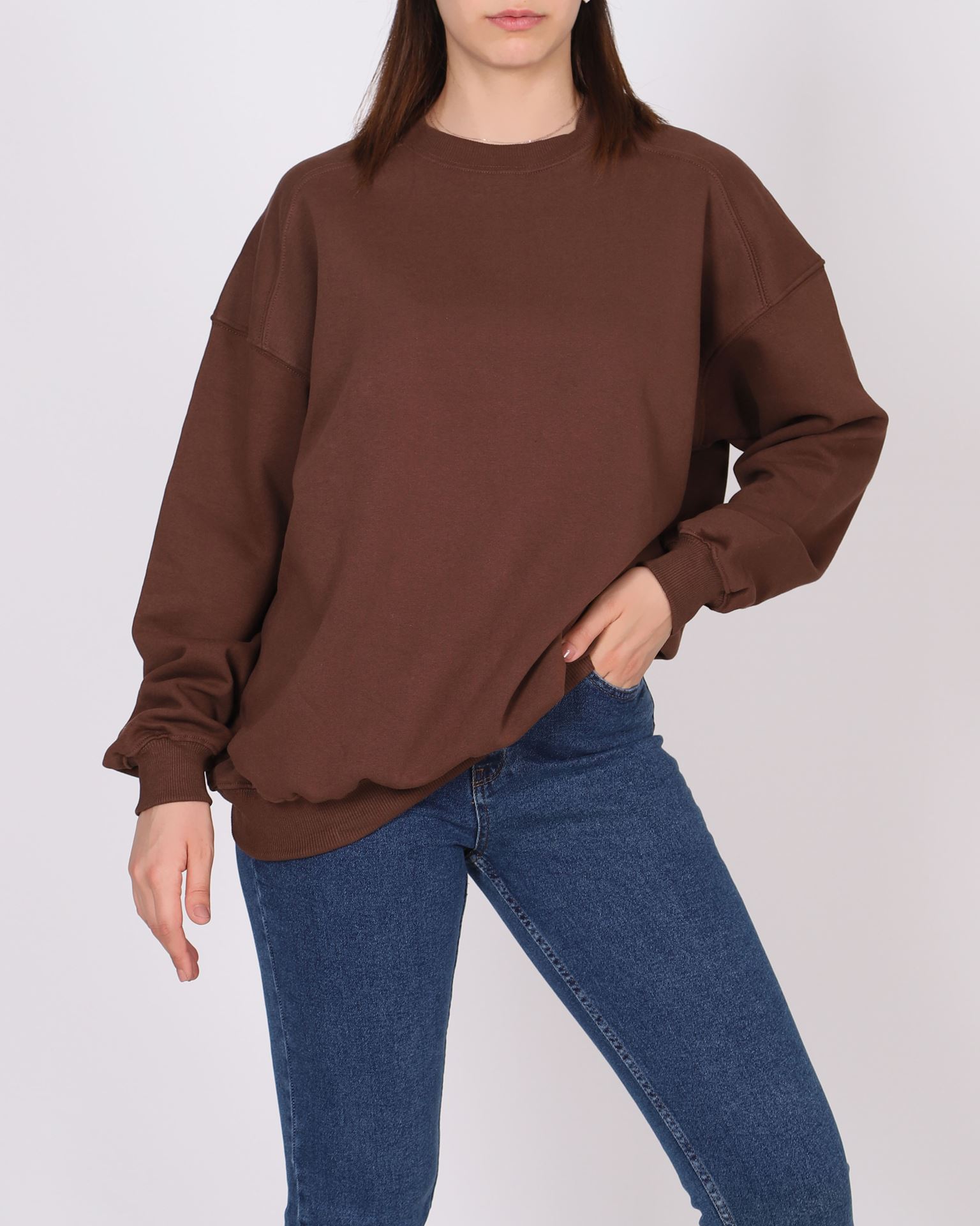 Kahverengi Bisiklet Yaka Oversize Sweat SWT972