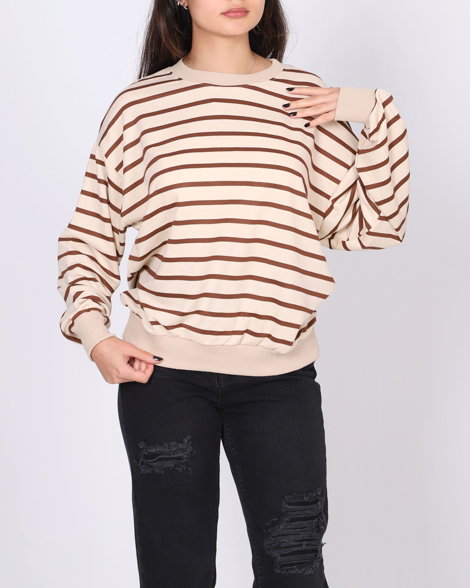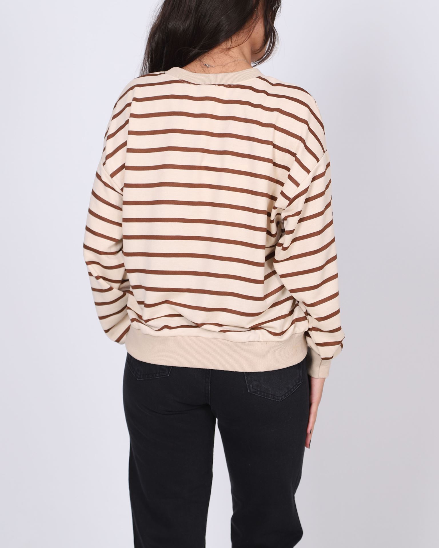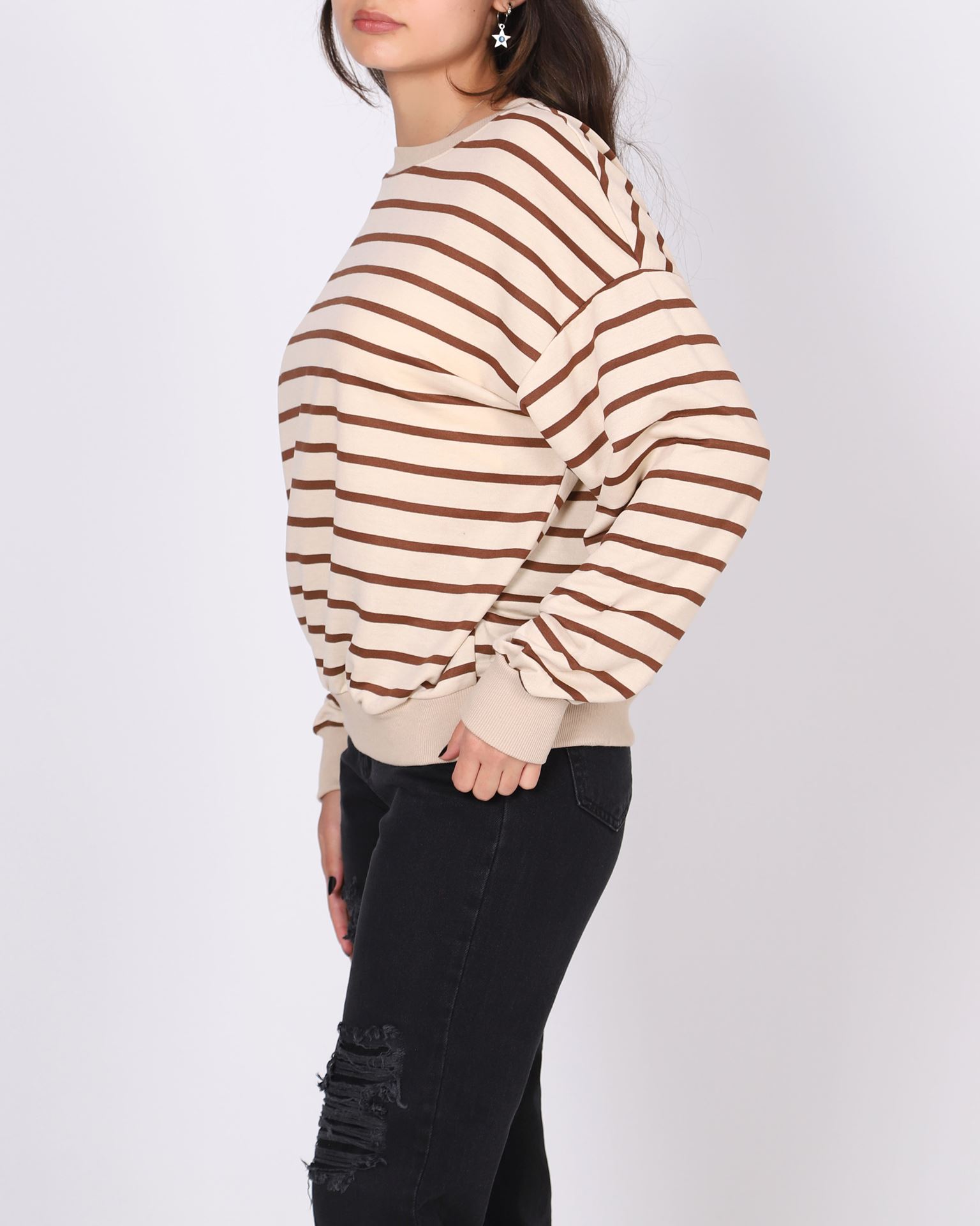 Kahverengi Çizgili Bisiklet Yaka Sweat SWT993