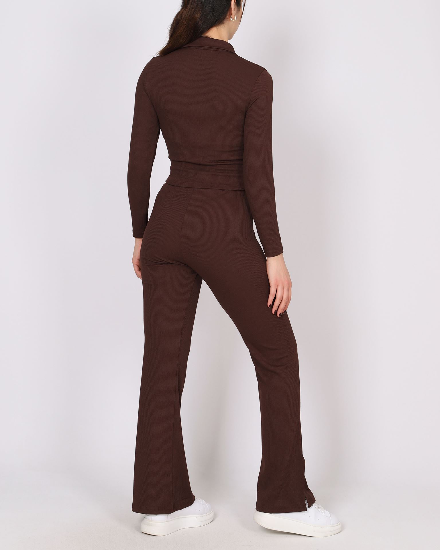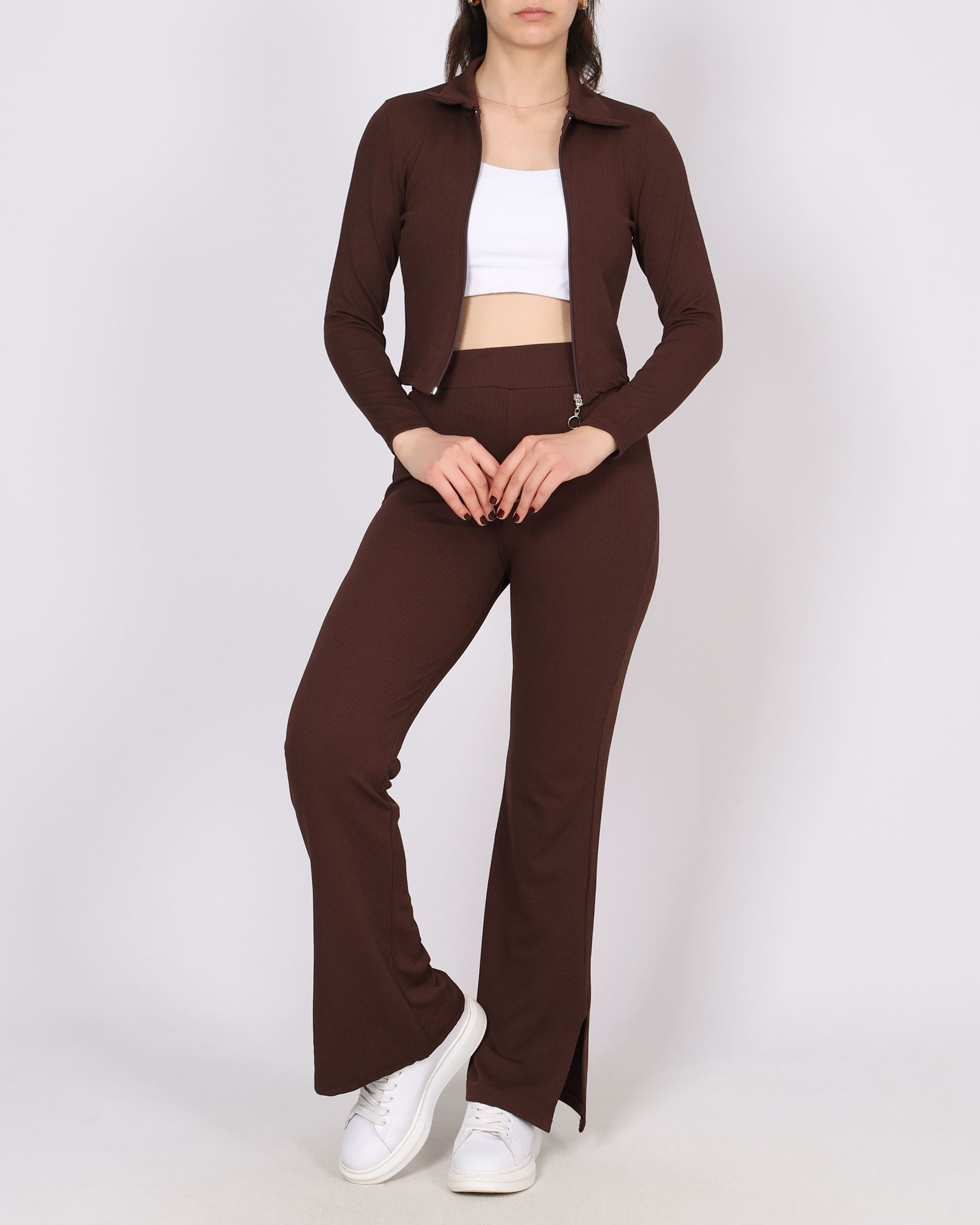Kahverengi Fermuarlı İkili Takım TKM2644