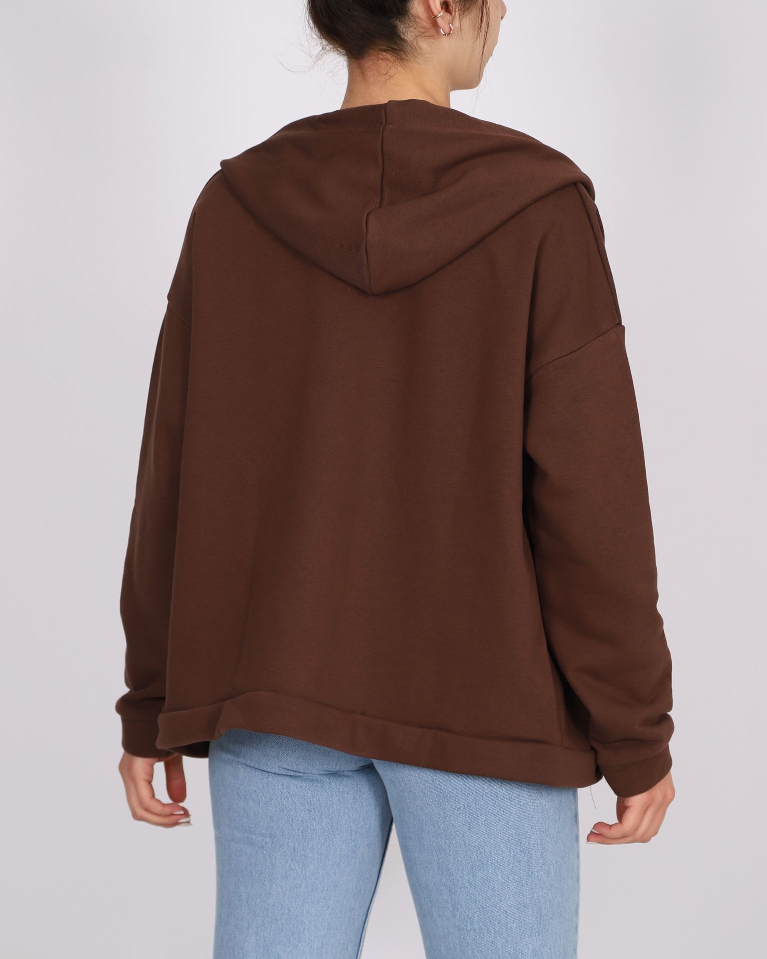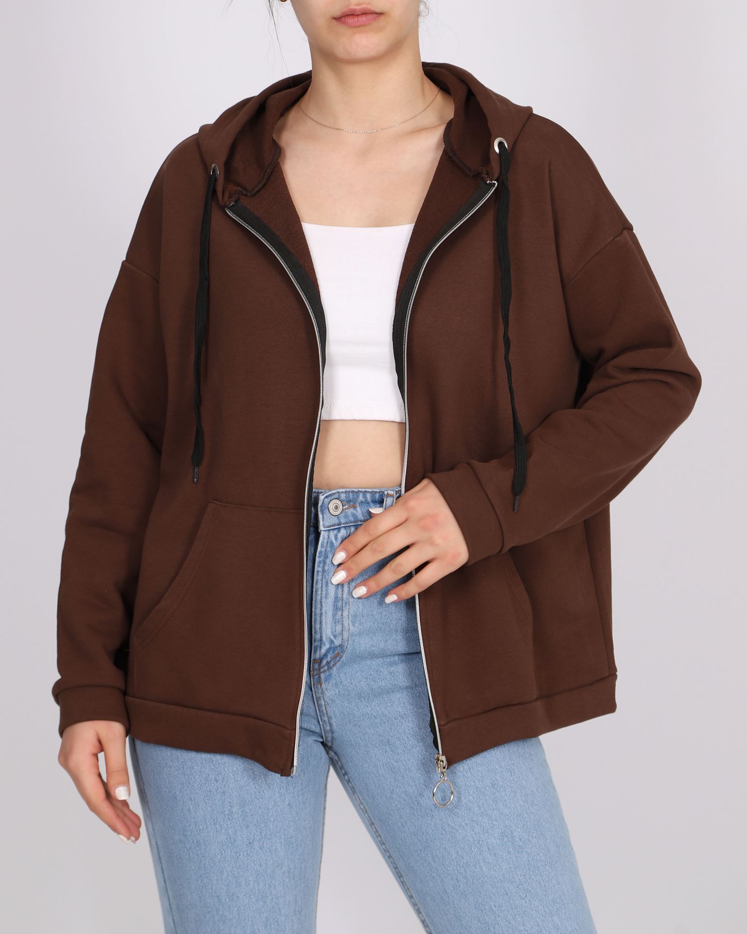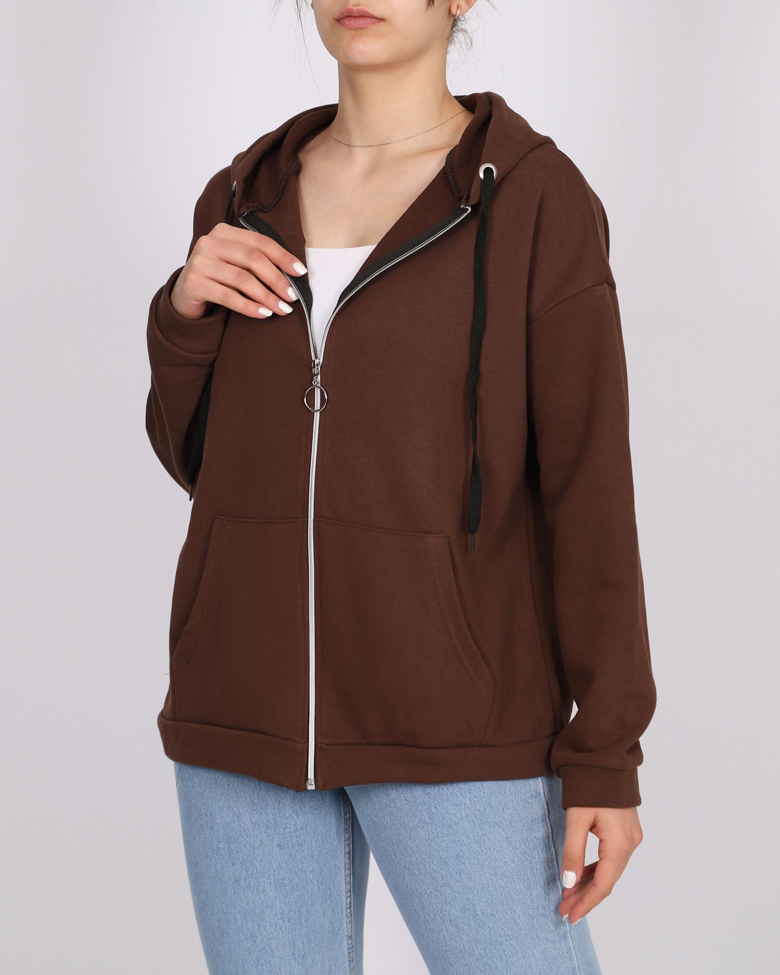 Kahverengi Kapüşonlu Fermuarlı Sweat SWT901