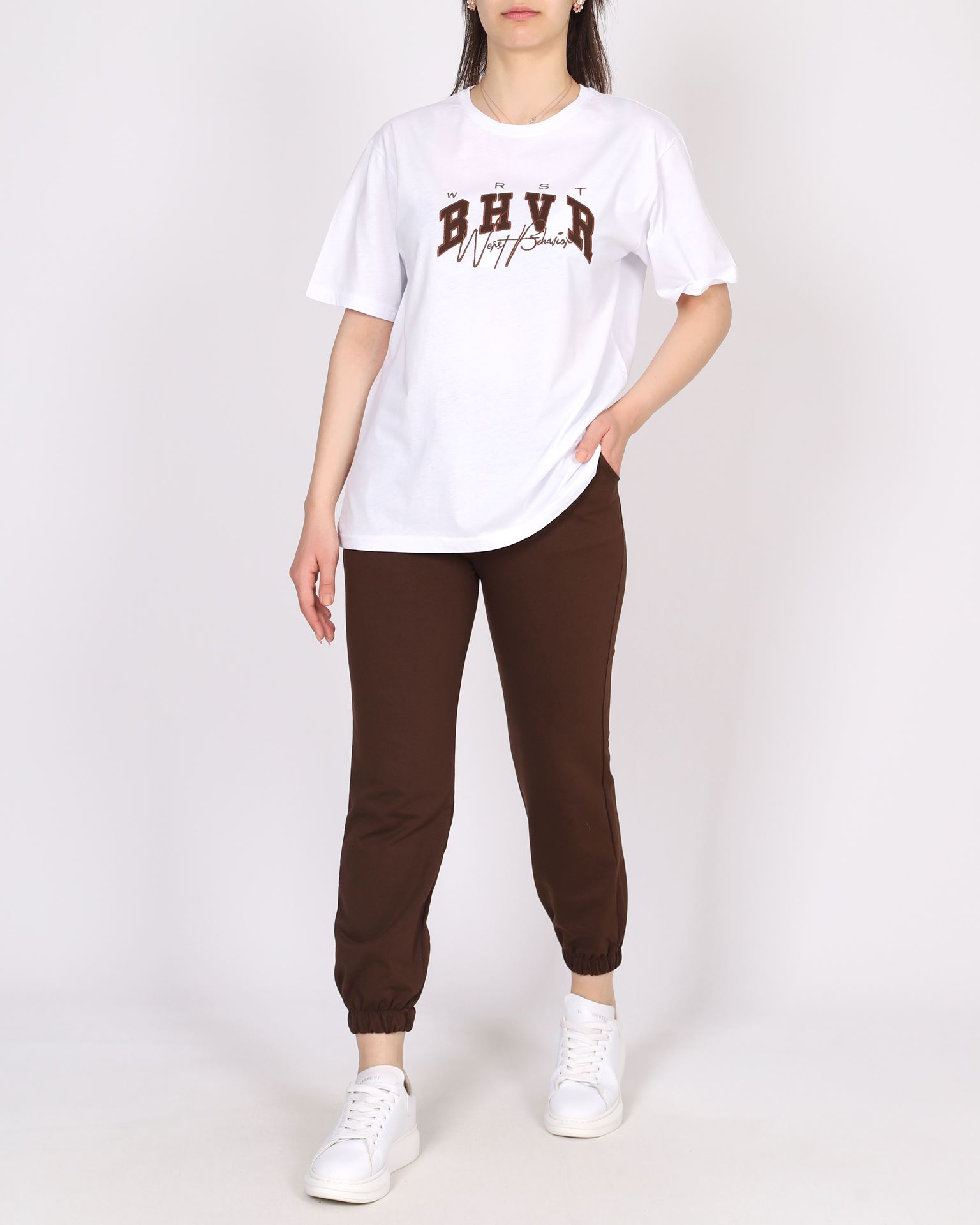 Kahverengi Nakışlı Eşofman Takımı TKM2444