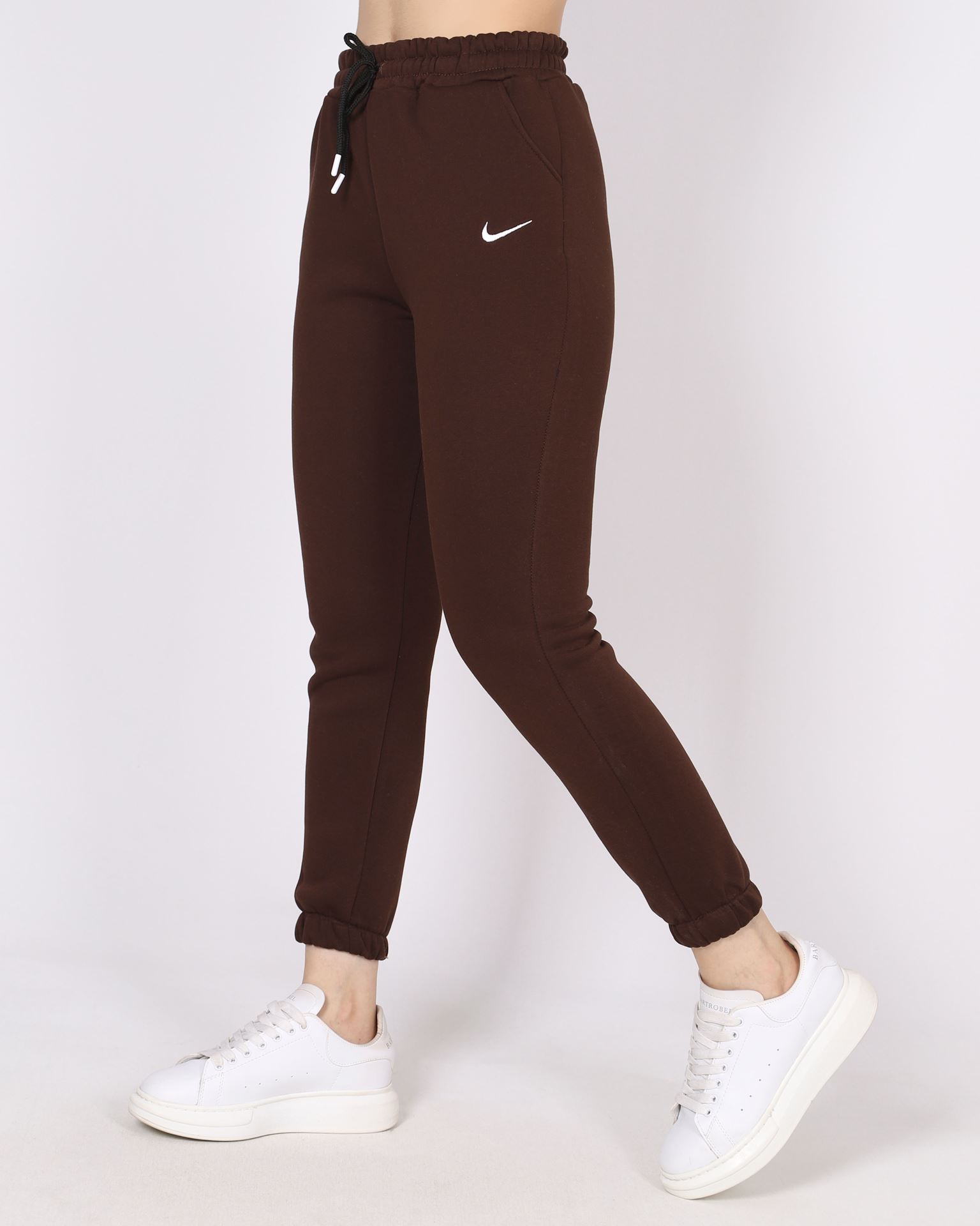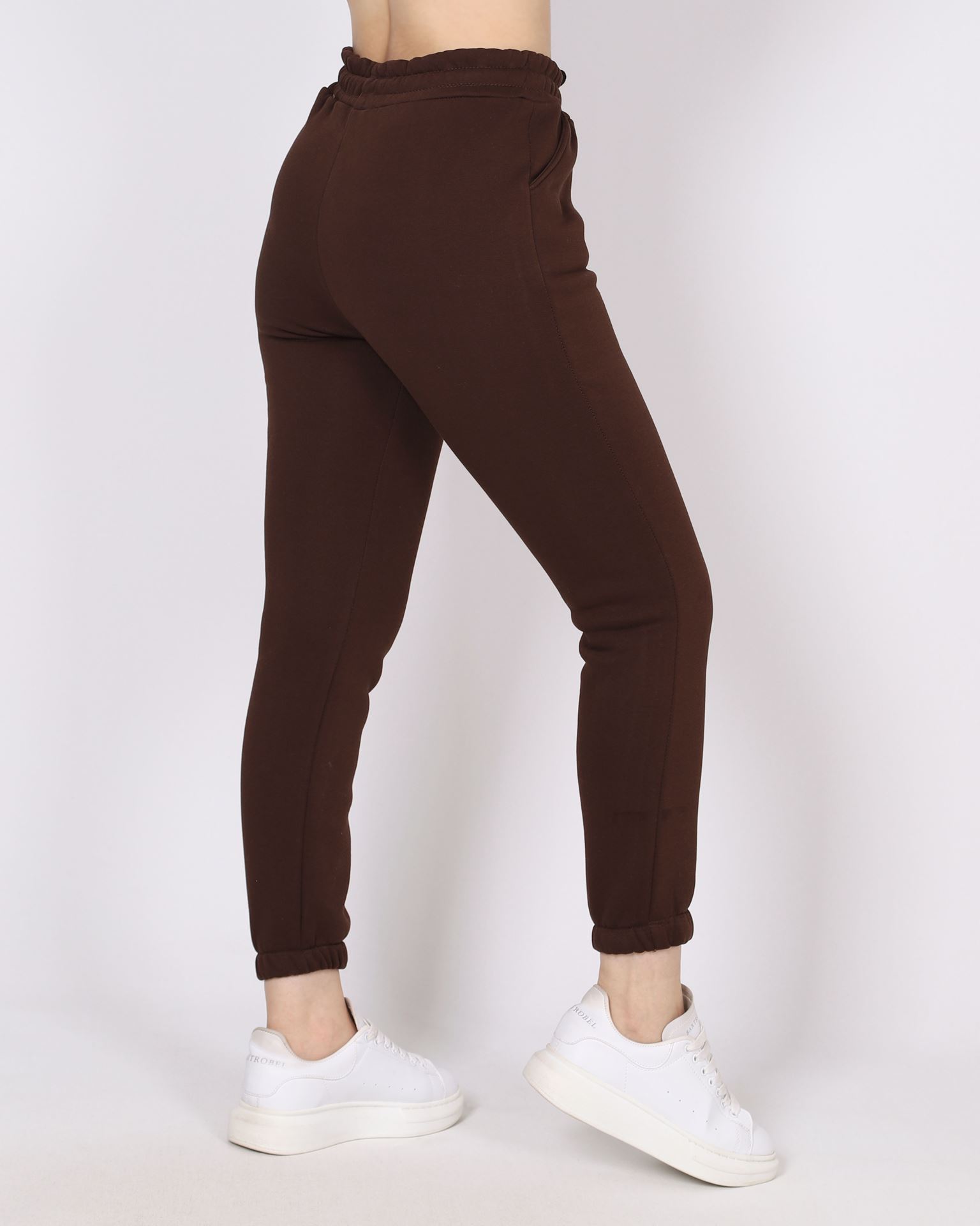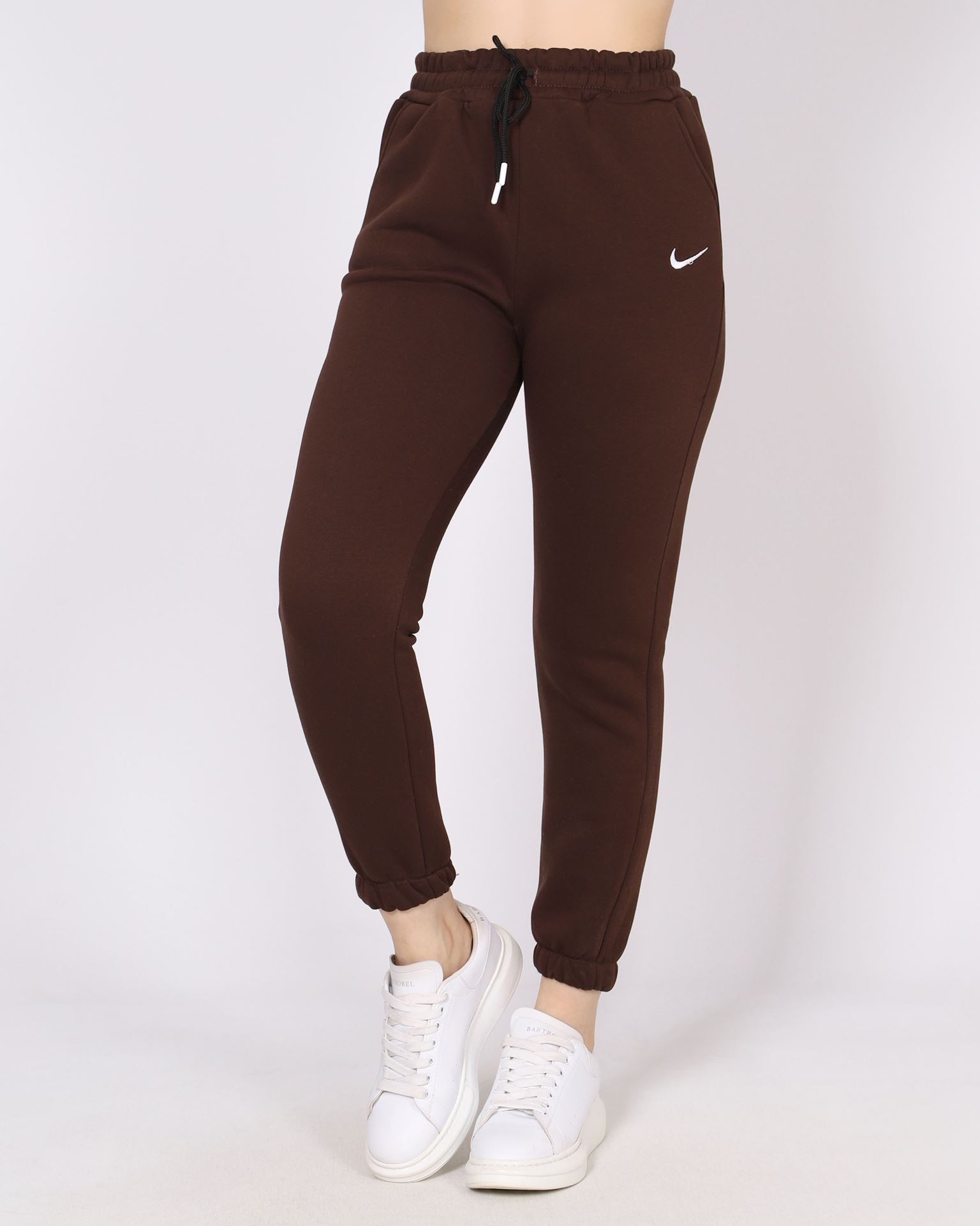 Kahverengi Nakışlı Üç İplik Şardonlu Eşofman Altı TKM2608