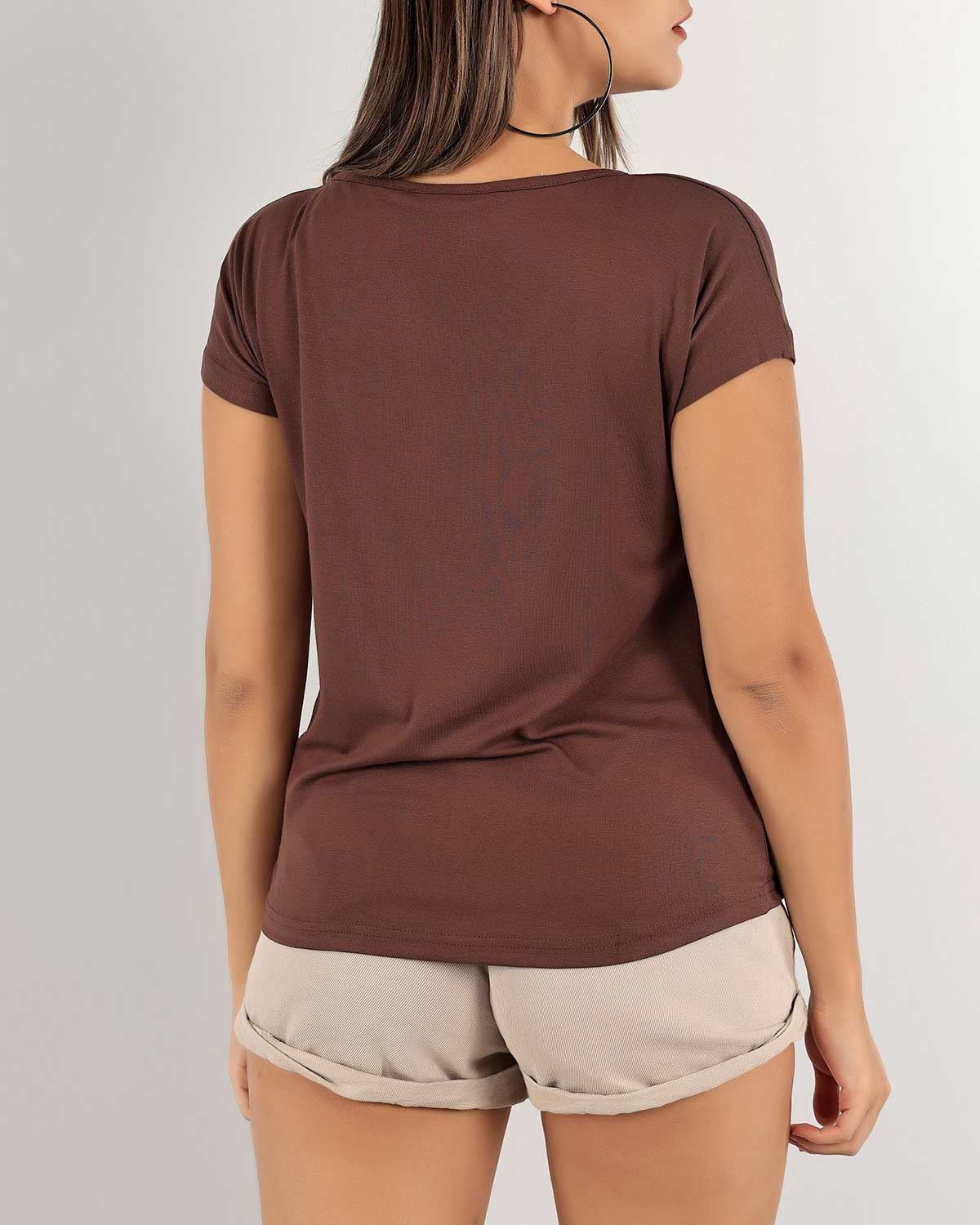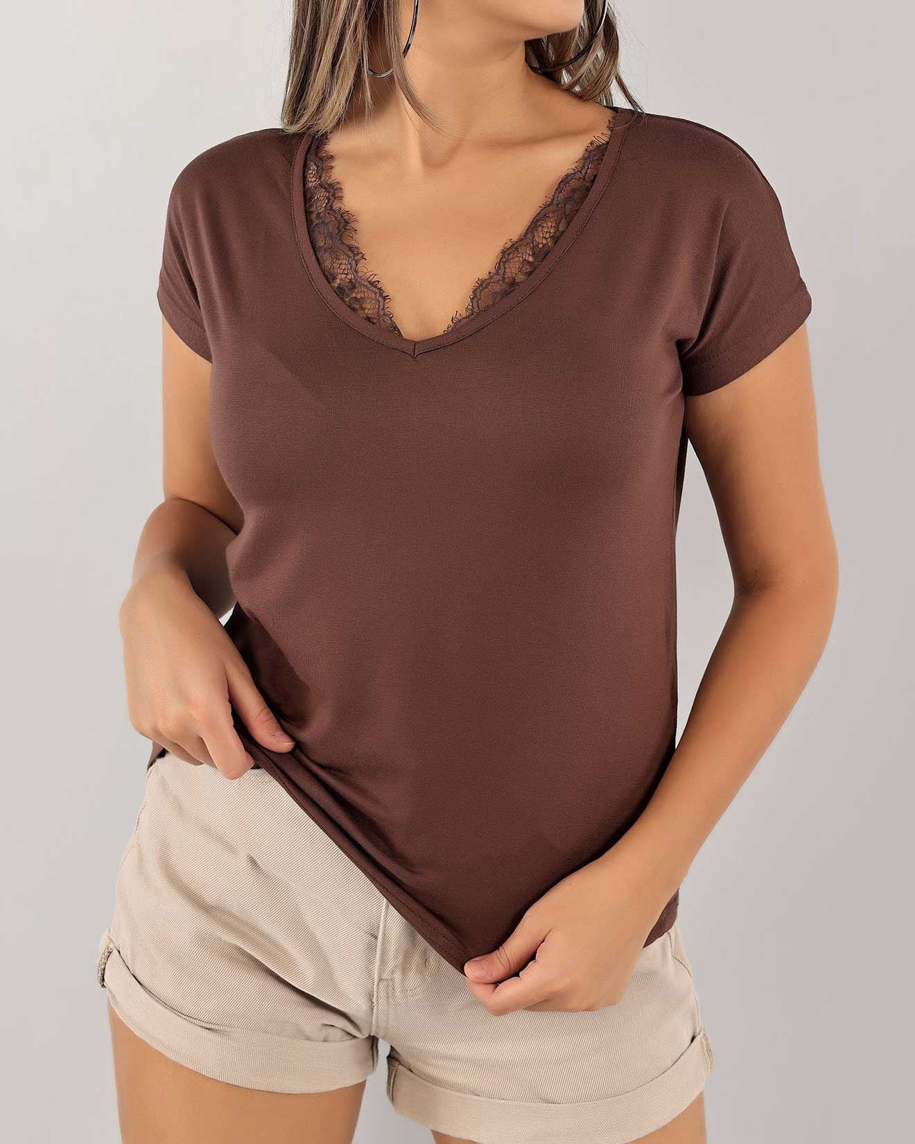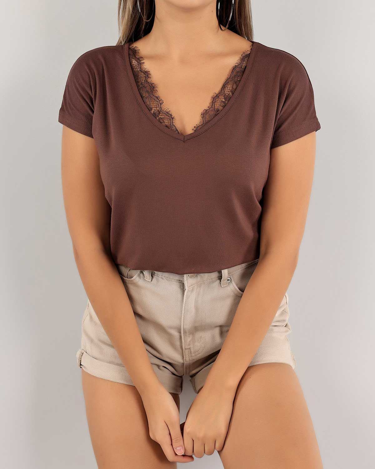 Kahverengi Yakası Dantelli Bluz BLZ186