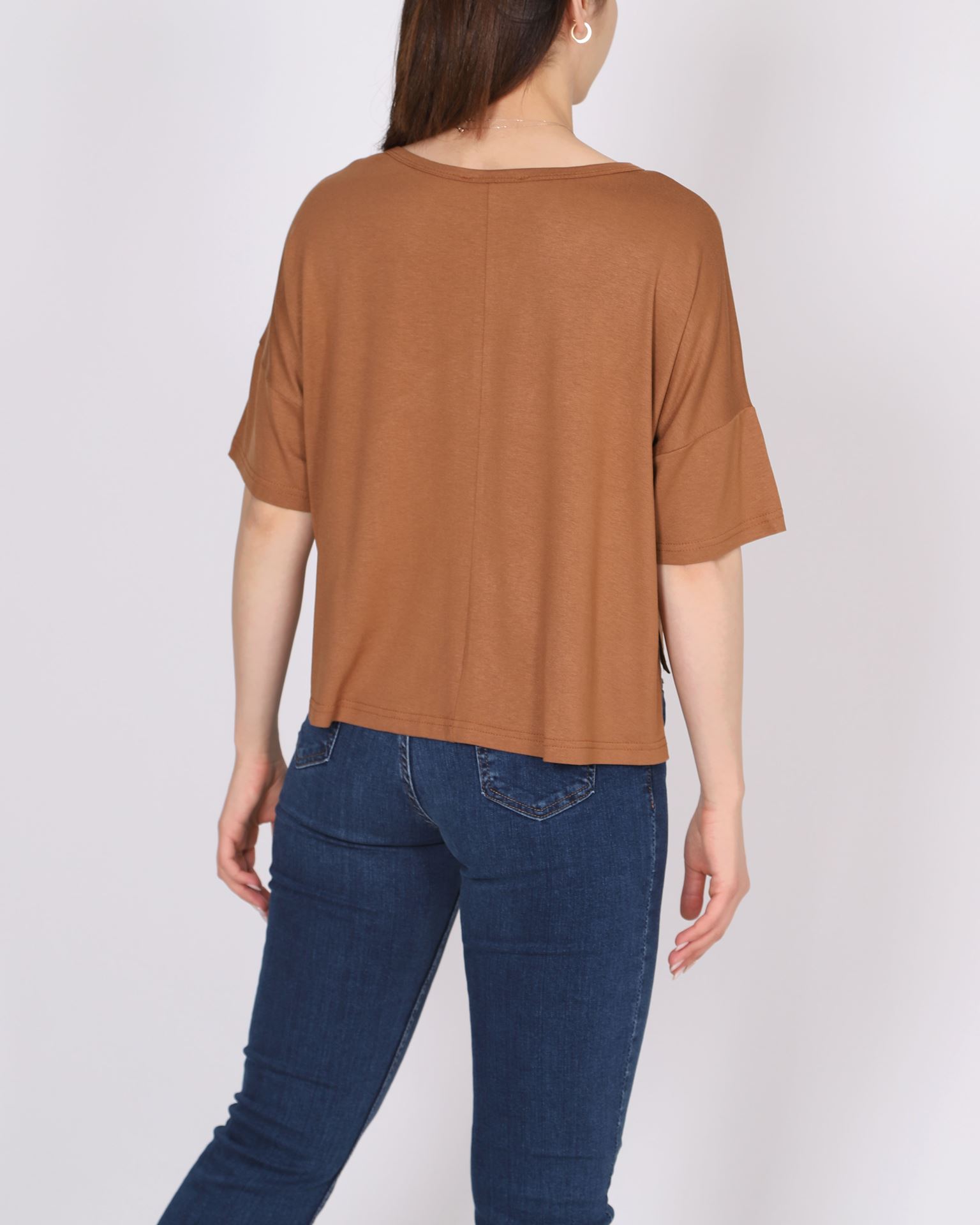 Kahverengi Yırtmaçlı Bluz BLZ433