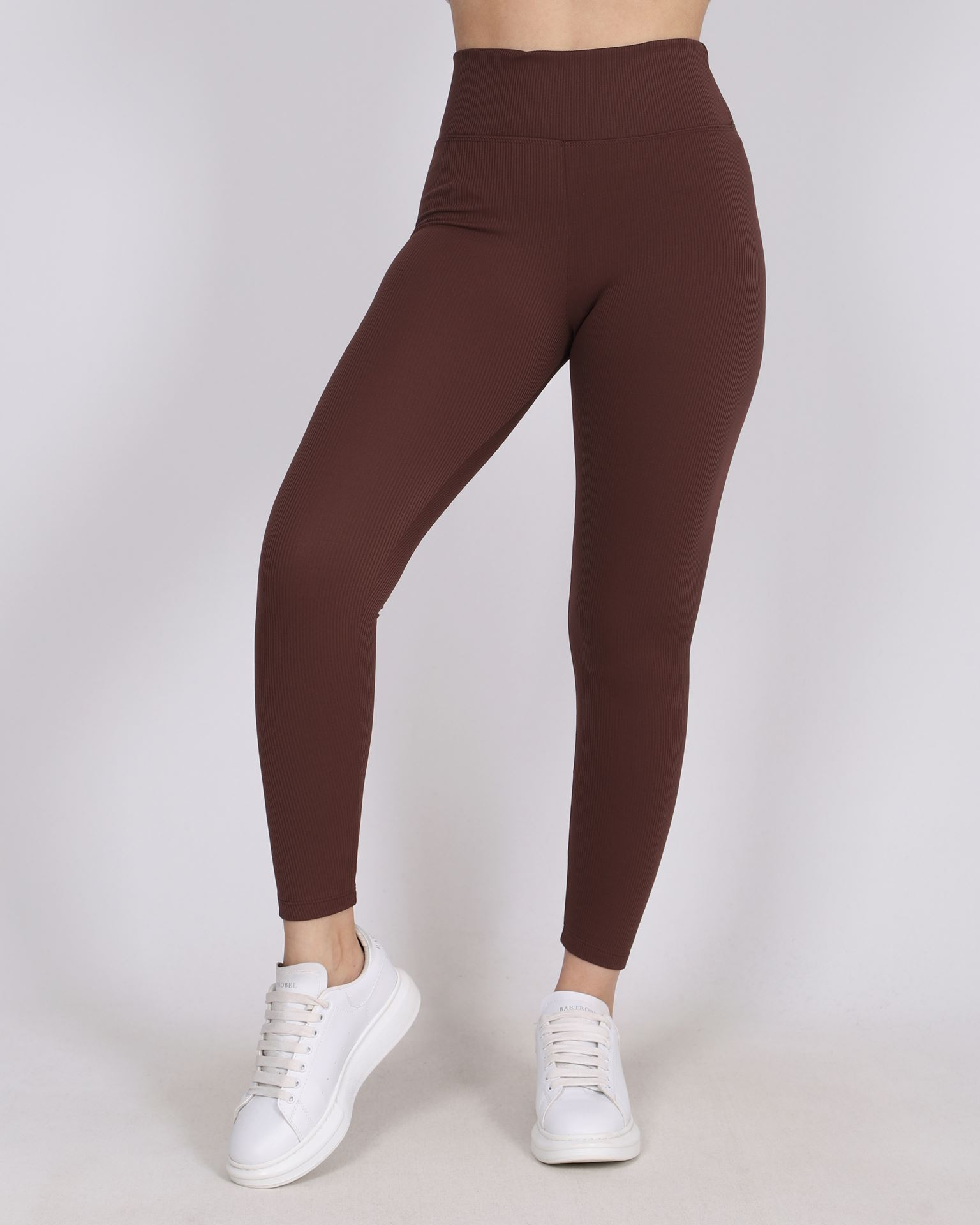 Kahverengi Yüksek Bel Fitilli İçi Pamuklu Tayt TYT260
