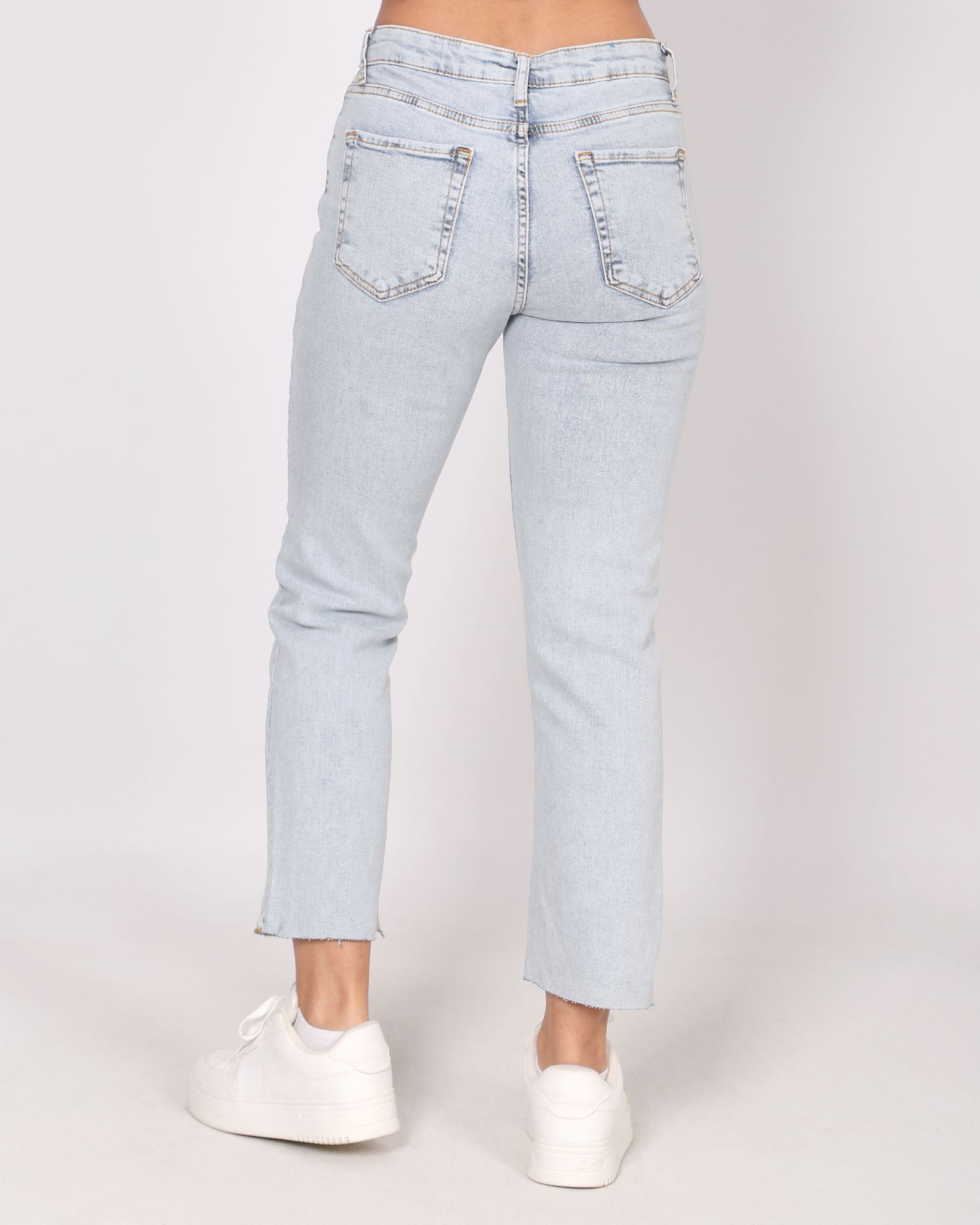 Kar Yıkama Kesik Paça Likralı Mom Jean PNT901