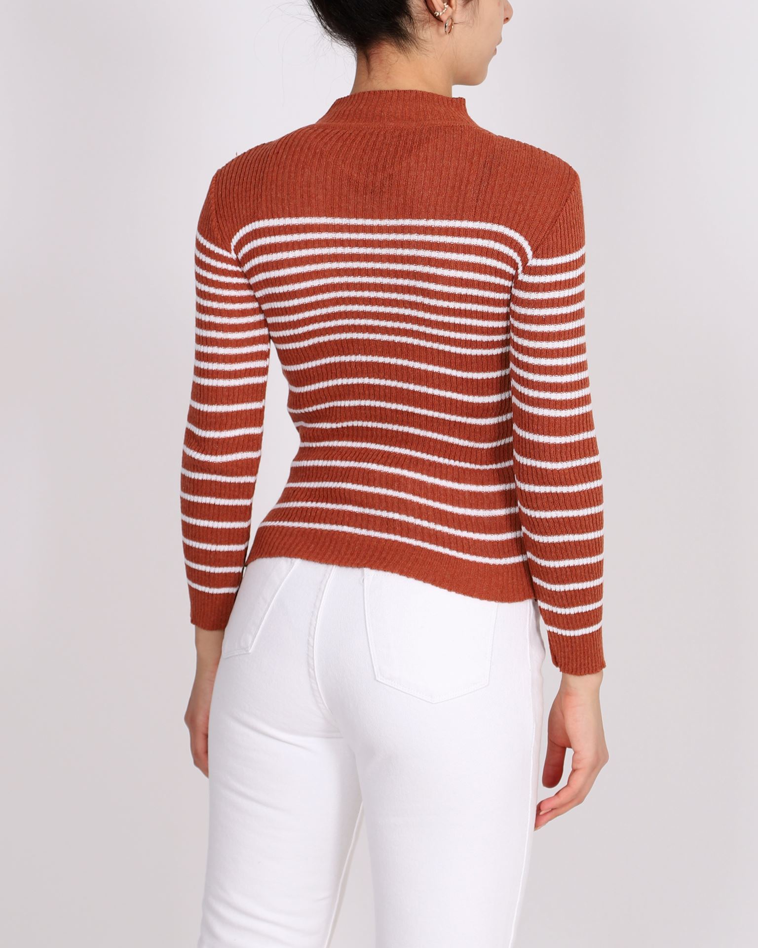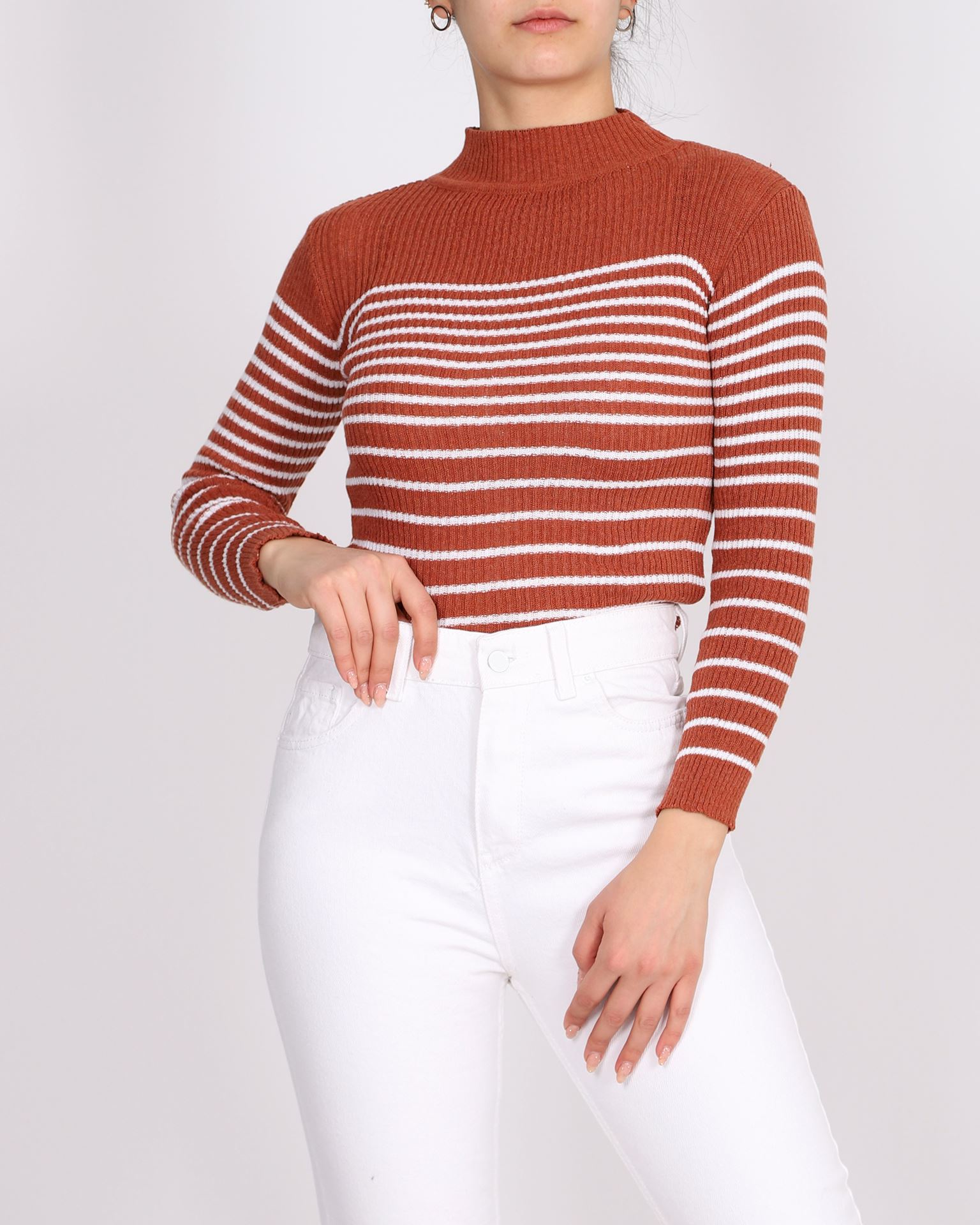 Kiremit Çizgili Yarım Balıkçı Triko KZK604