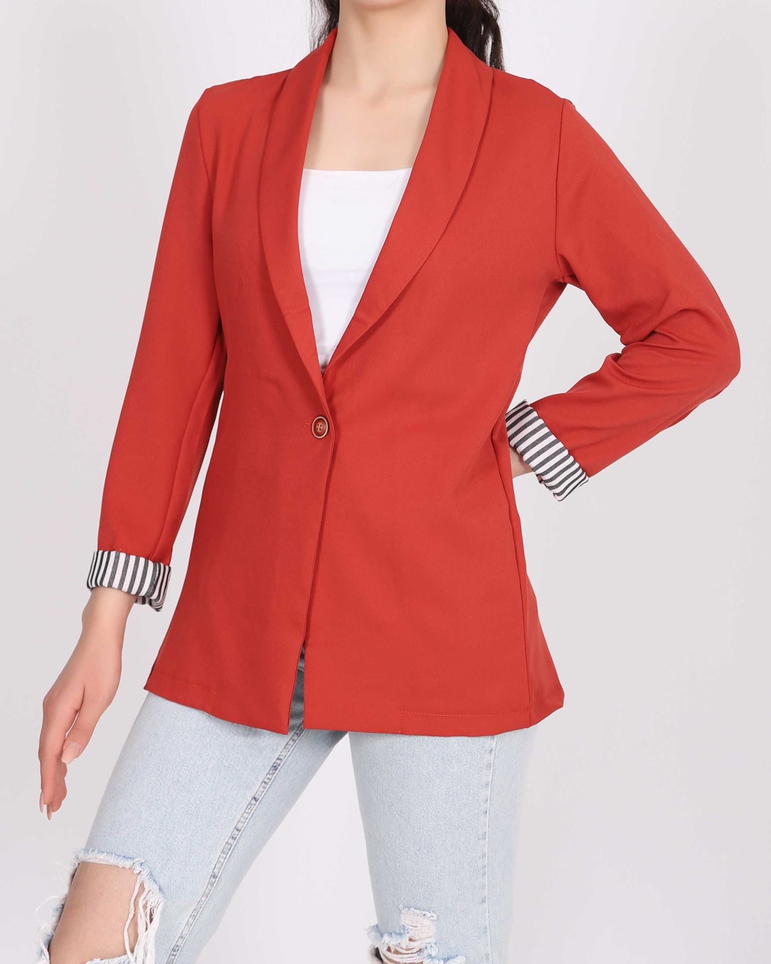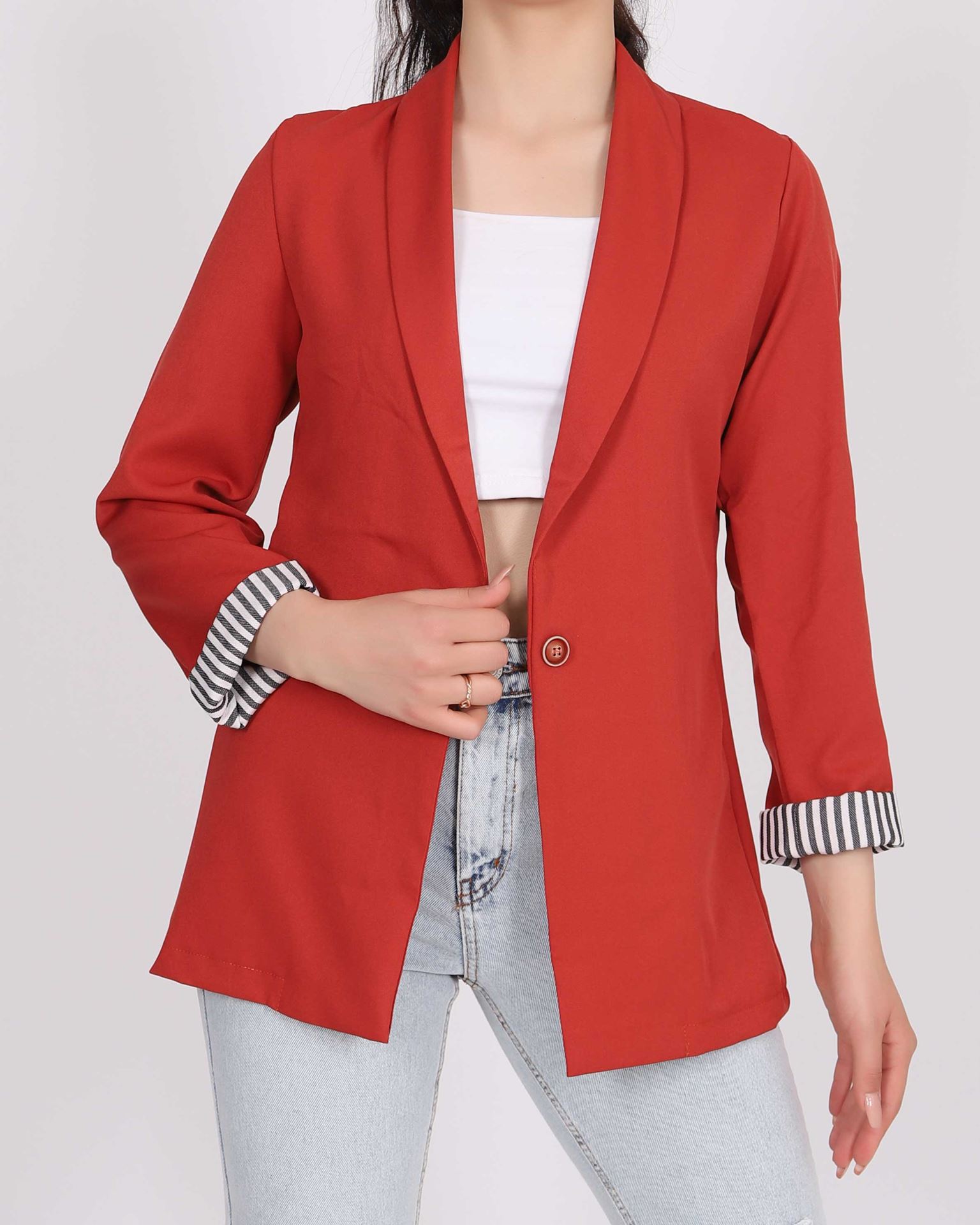 Kiremit Kol İçi Çizgili Tek Düğmeli Ceket CKT320