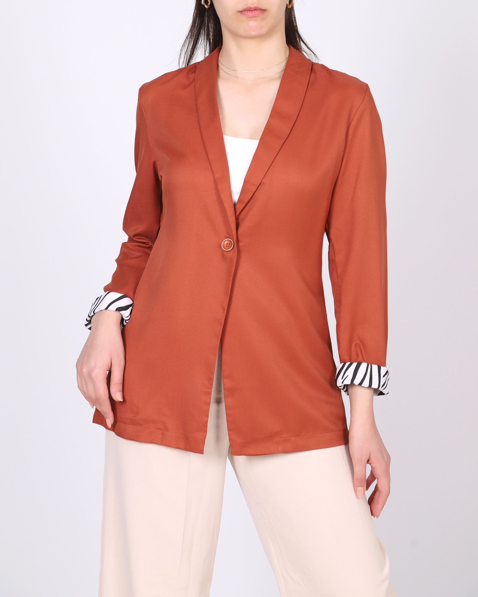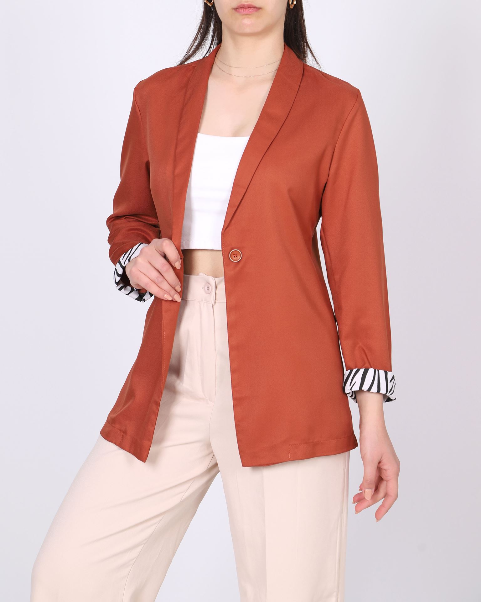 Kiremit Kol İçi Desenli Tek Düğmeli Ceket CKT454