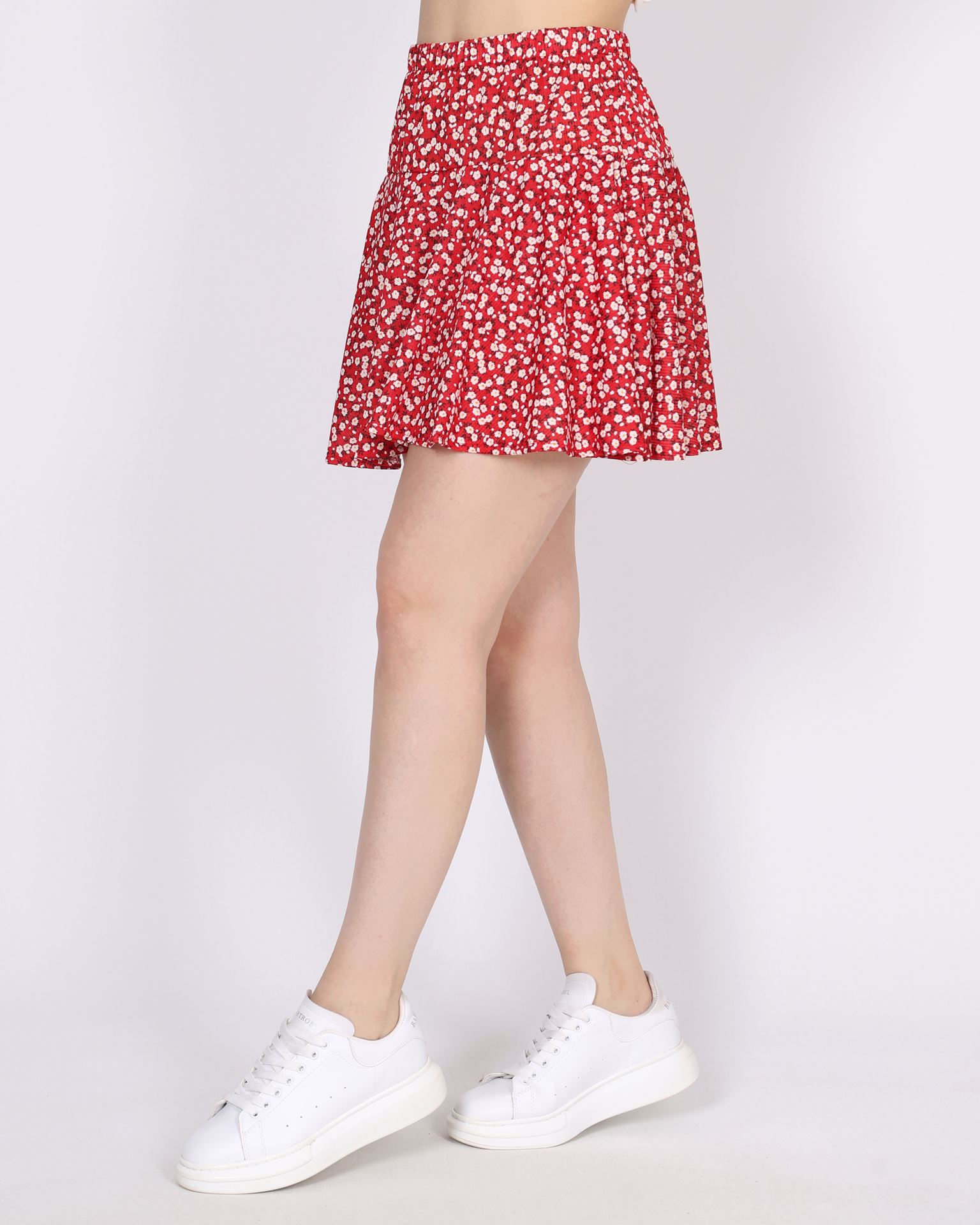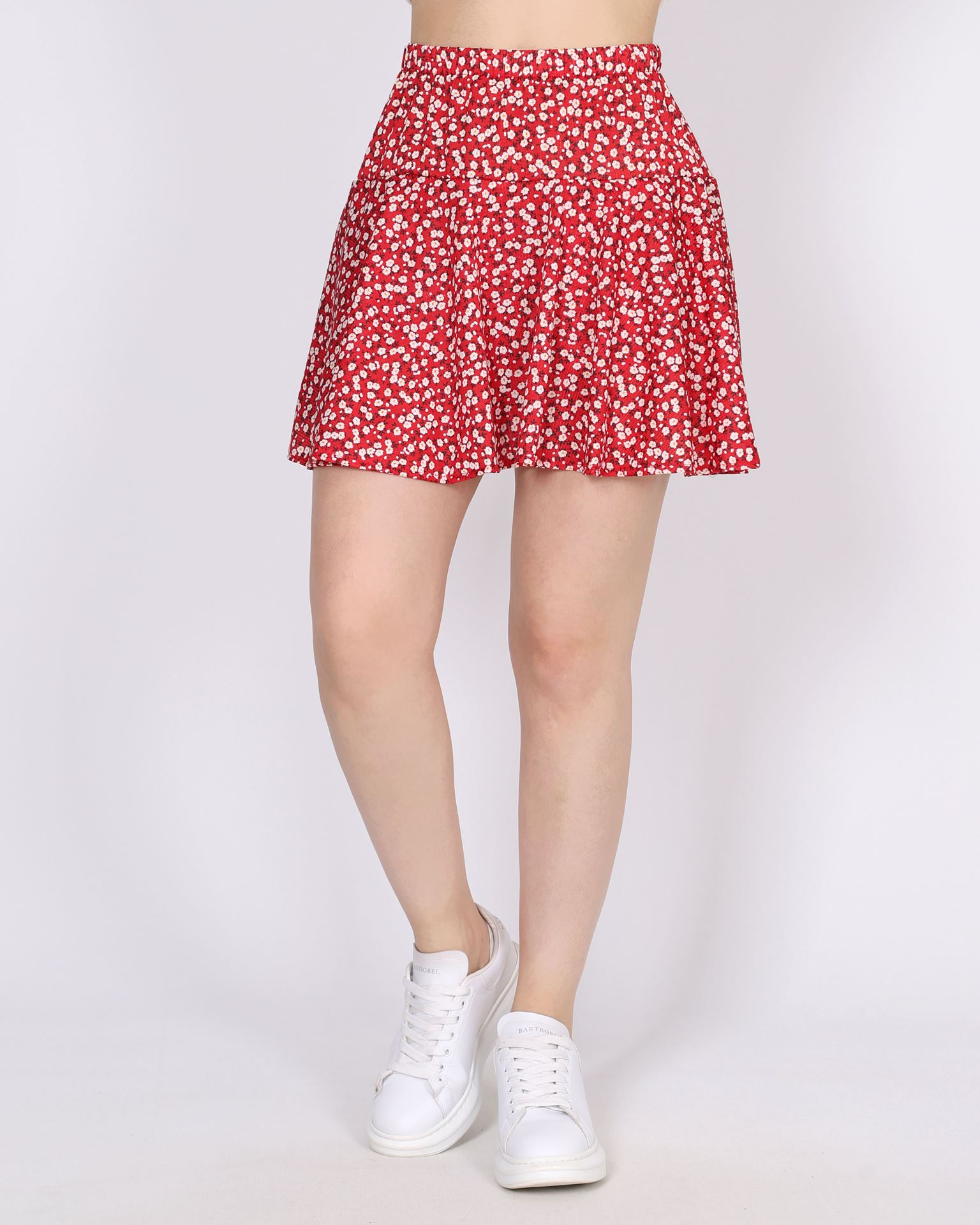 Kırmızı Beli Lastikli Dokuma Şort Etek ETK192