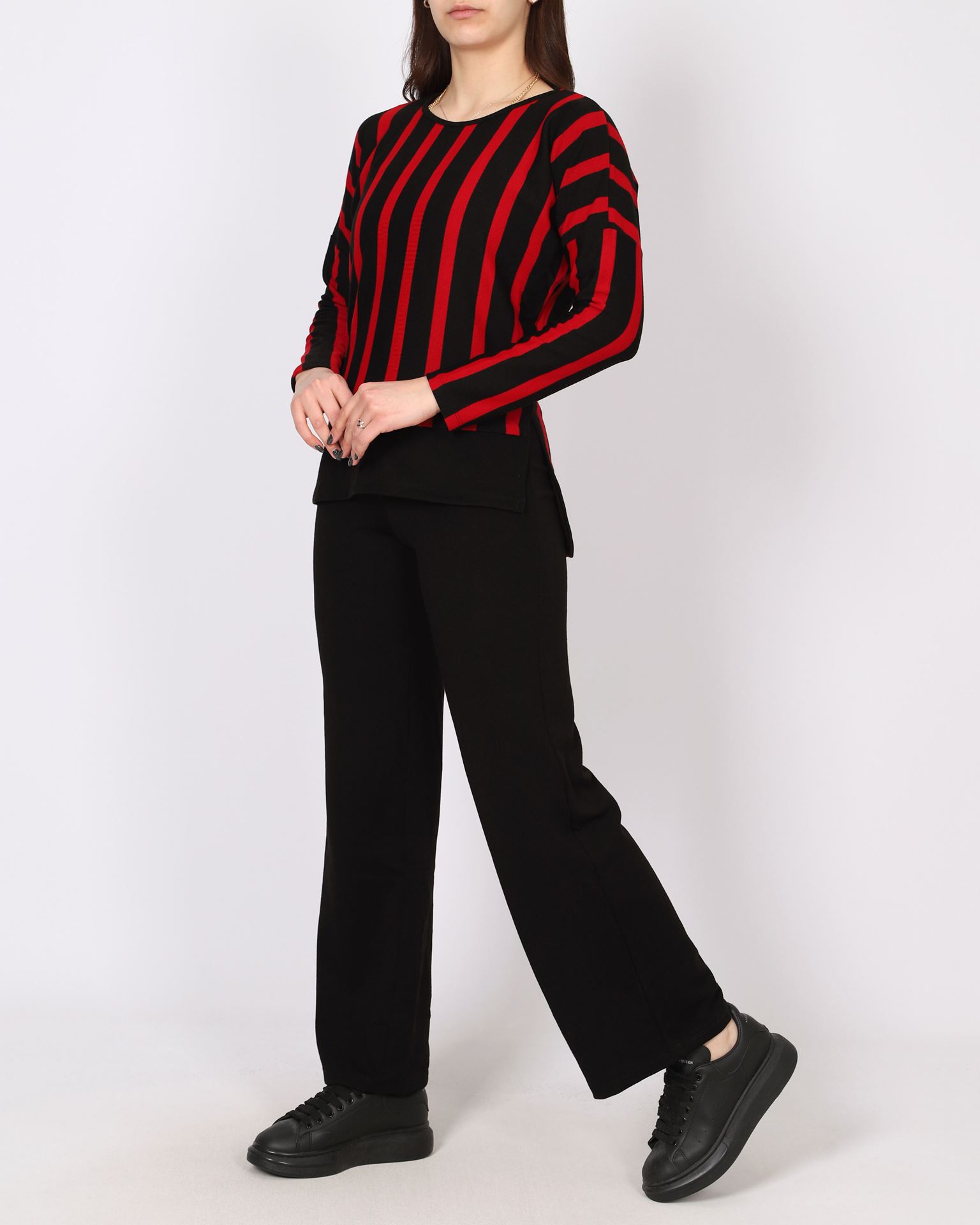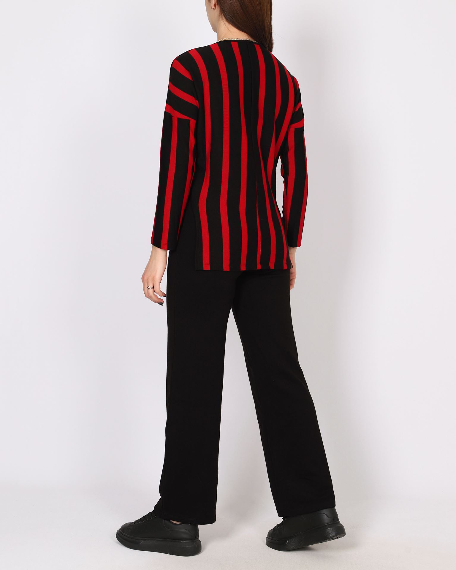 Kırmızı Çizgili Bol Paça Triko İkili Takım TKM2106