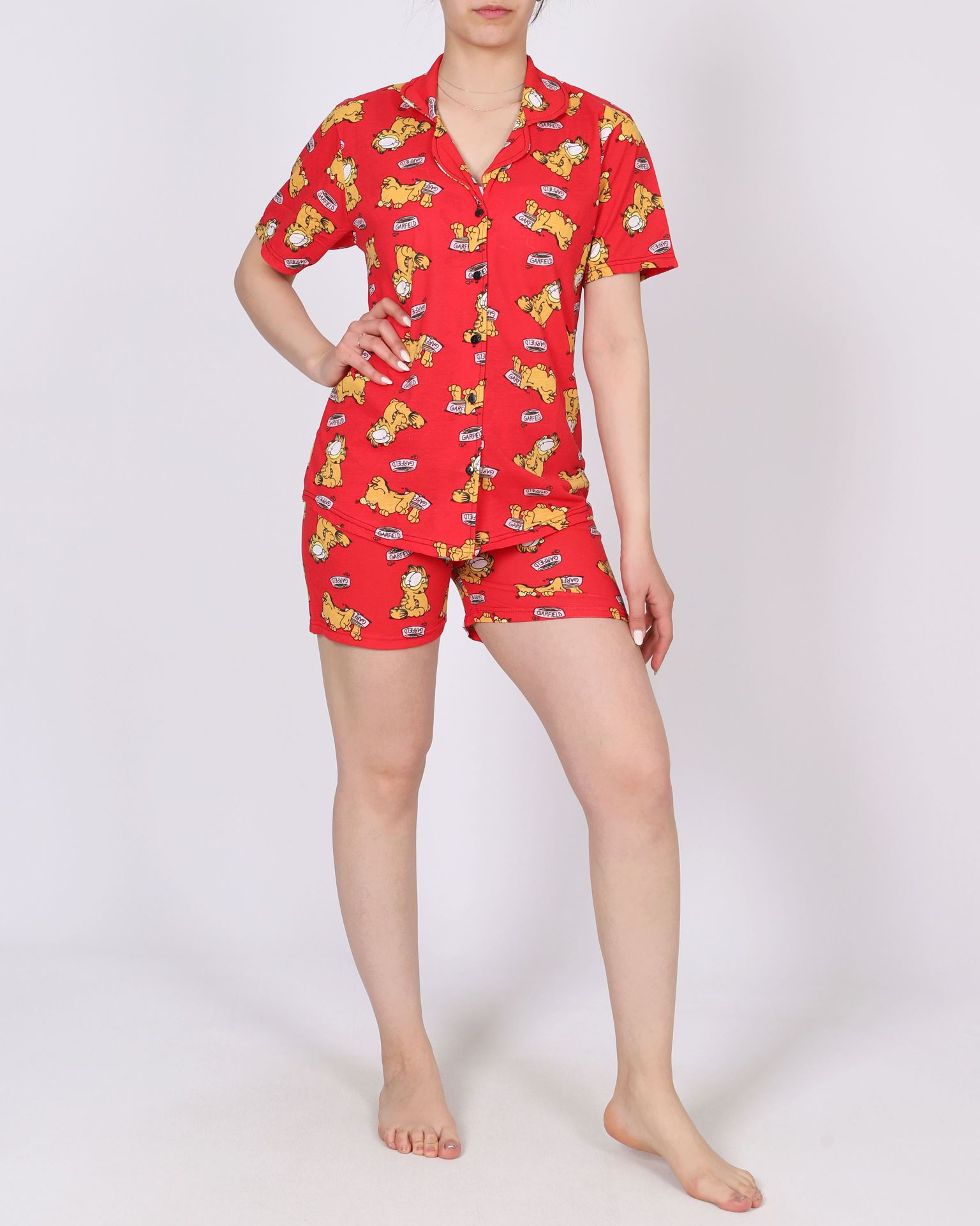 Kırmızı Desenli Düğmeli Pijama Takımı PJM1668