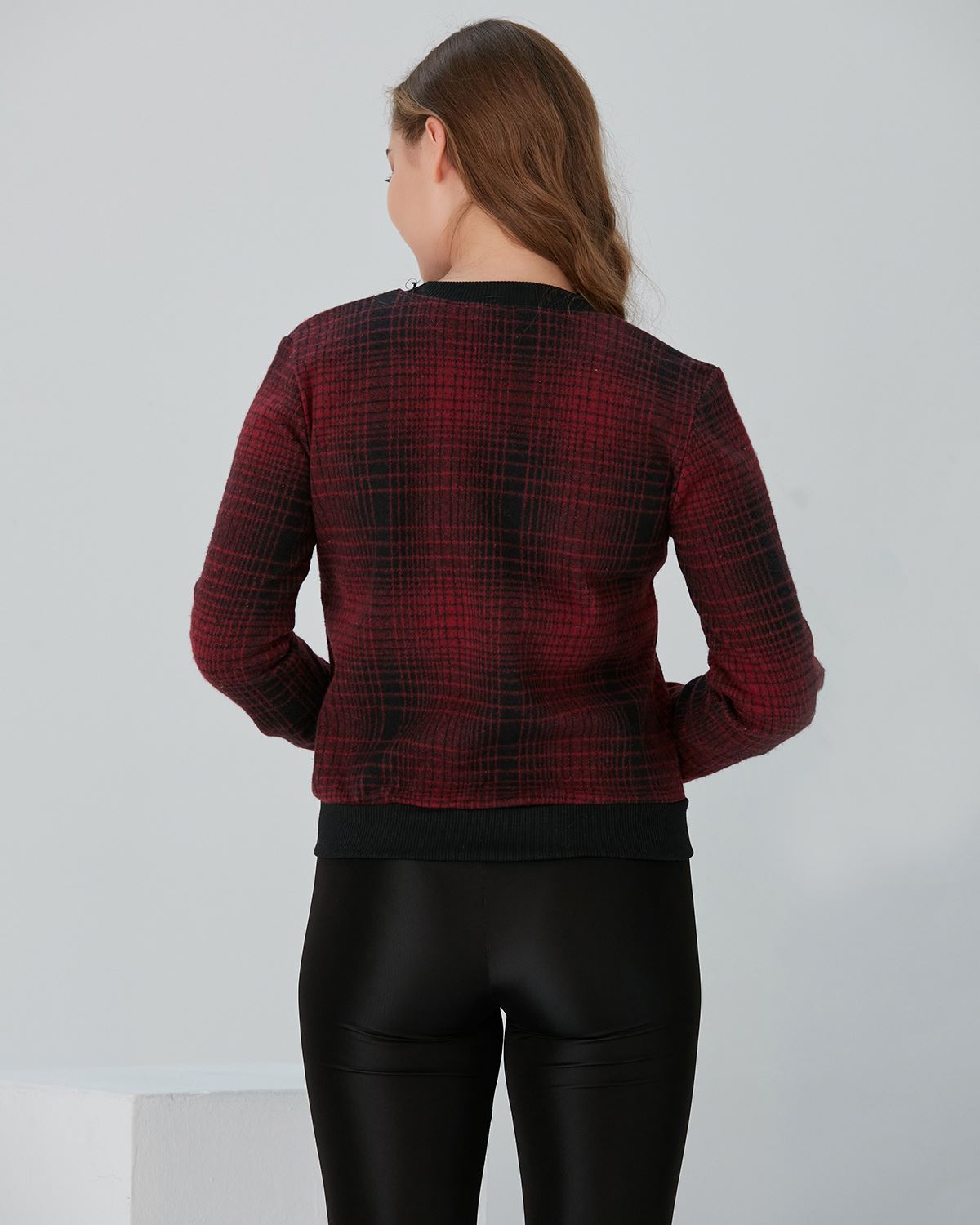 Kırmızı Desenli Fermuarlı Sweat SWT771
