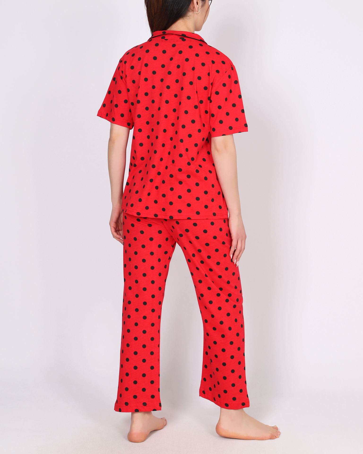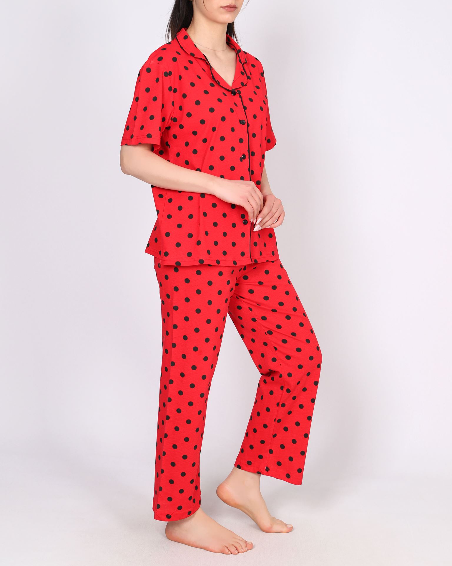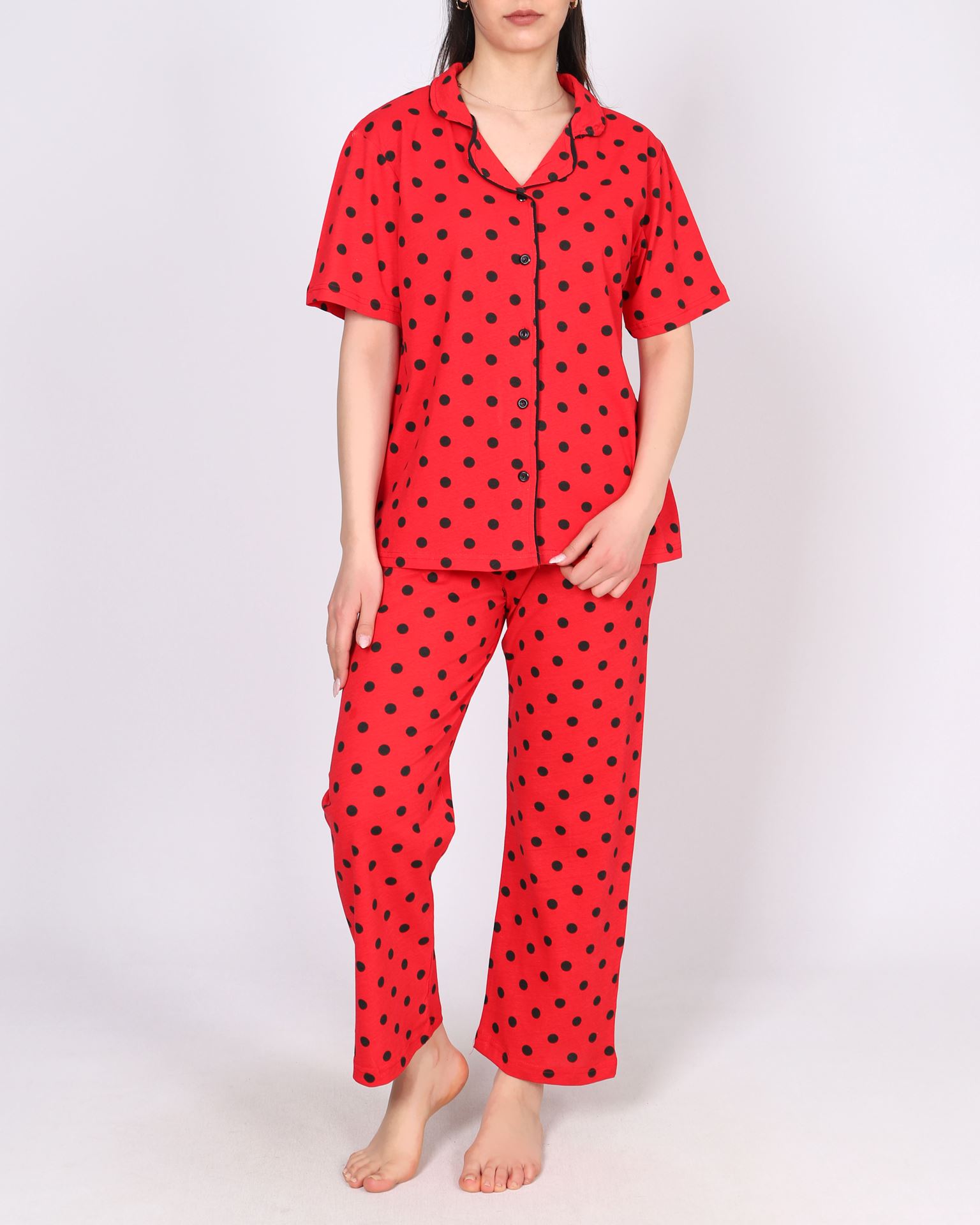Kırmızı Düğmeli Kısa Kol Pijama Takımı PJM1902