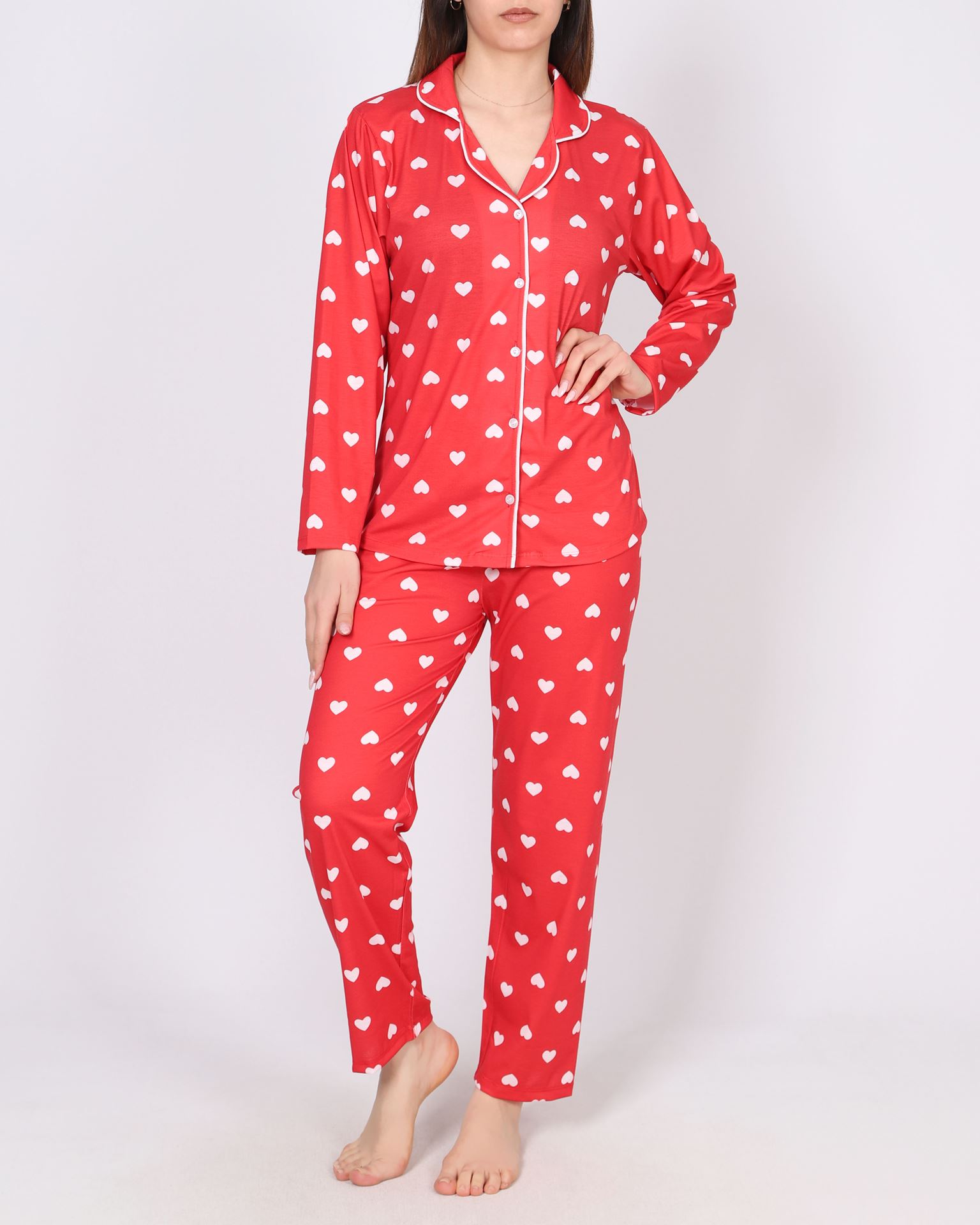 Kırmızı Düğmeli Pijama Takımı PJM1906