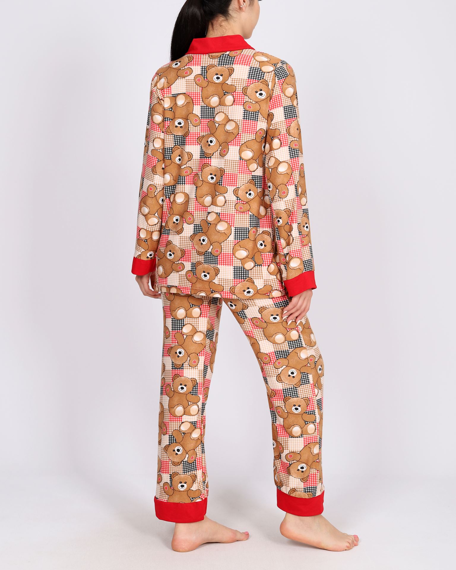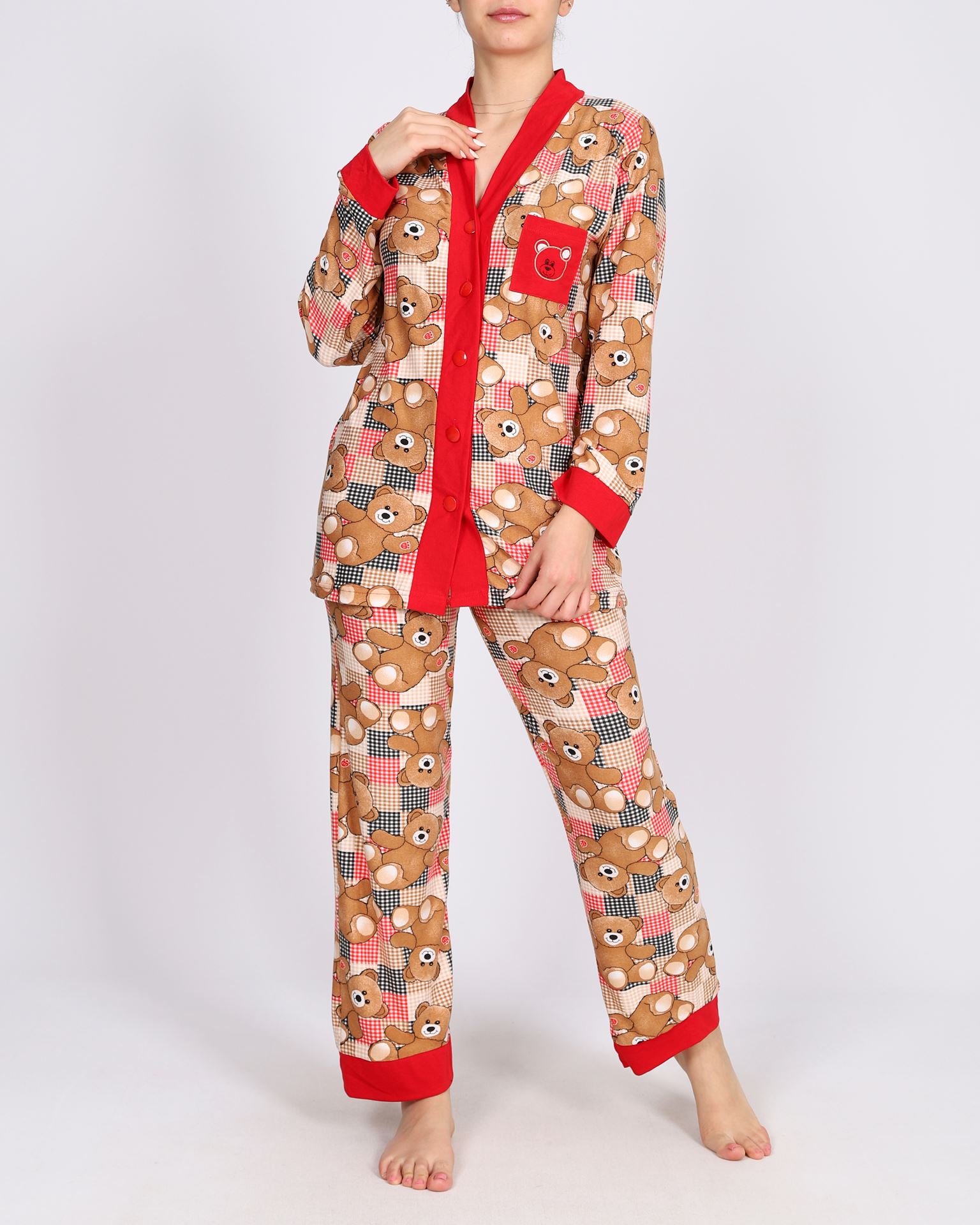 Kırmızı Düğmeli Süet Pijama Takımı PJM1588