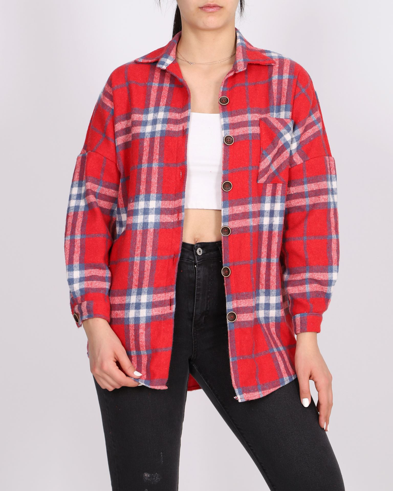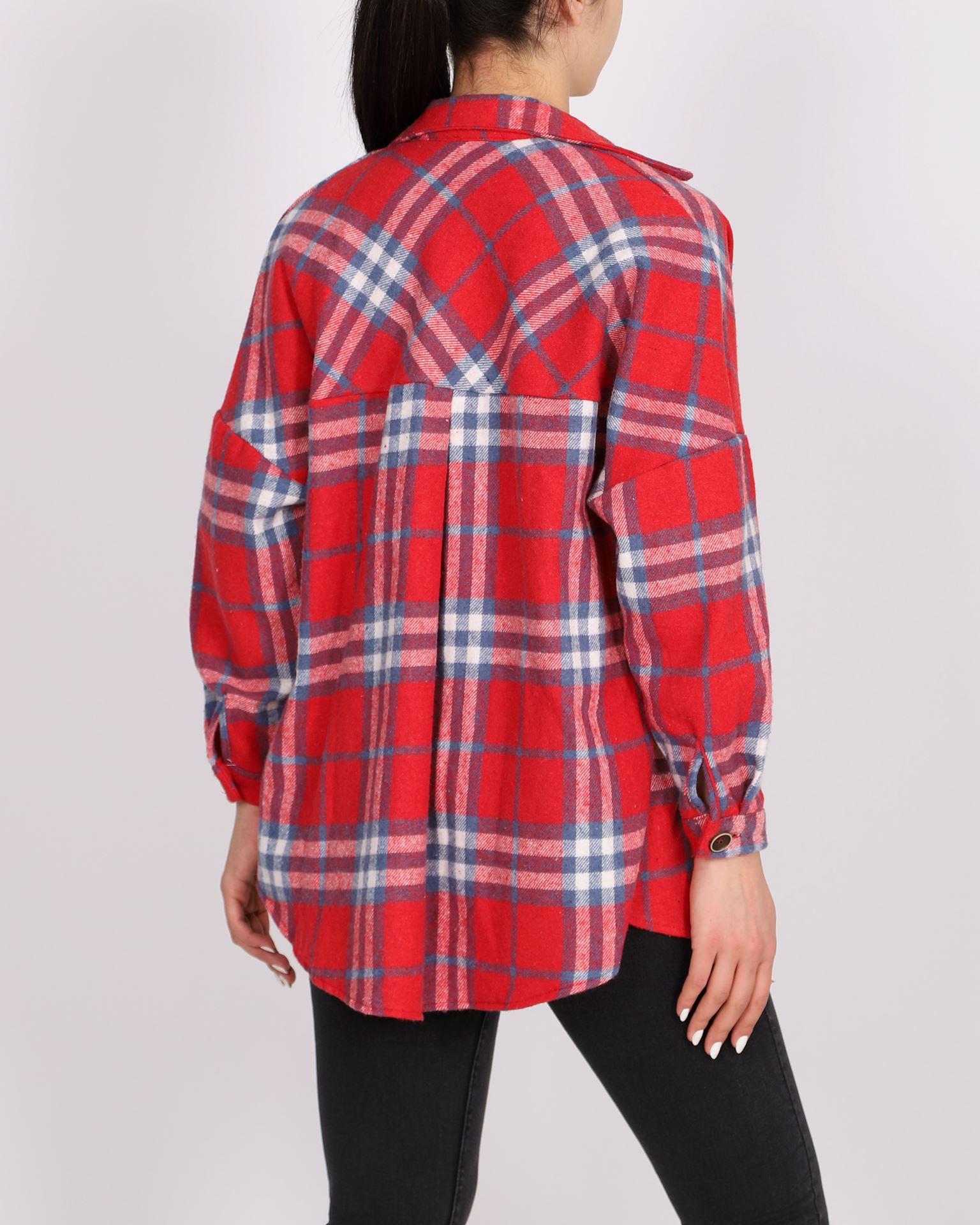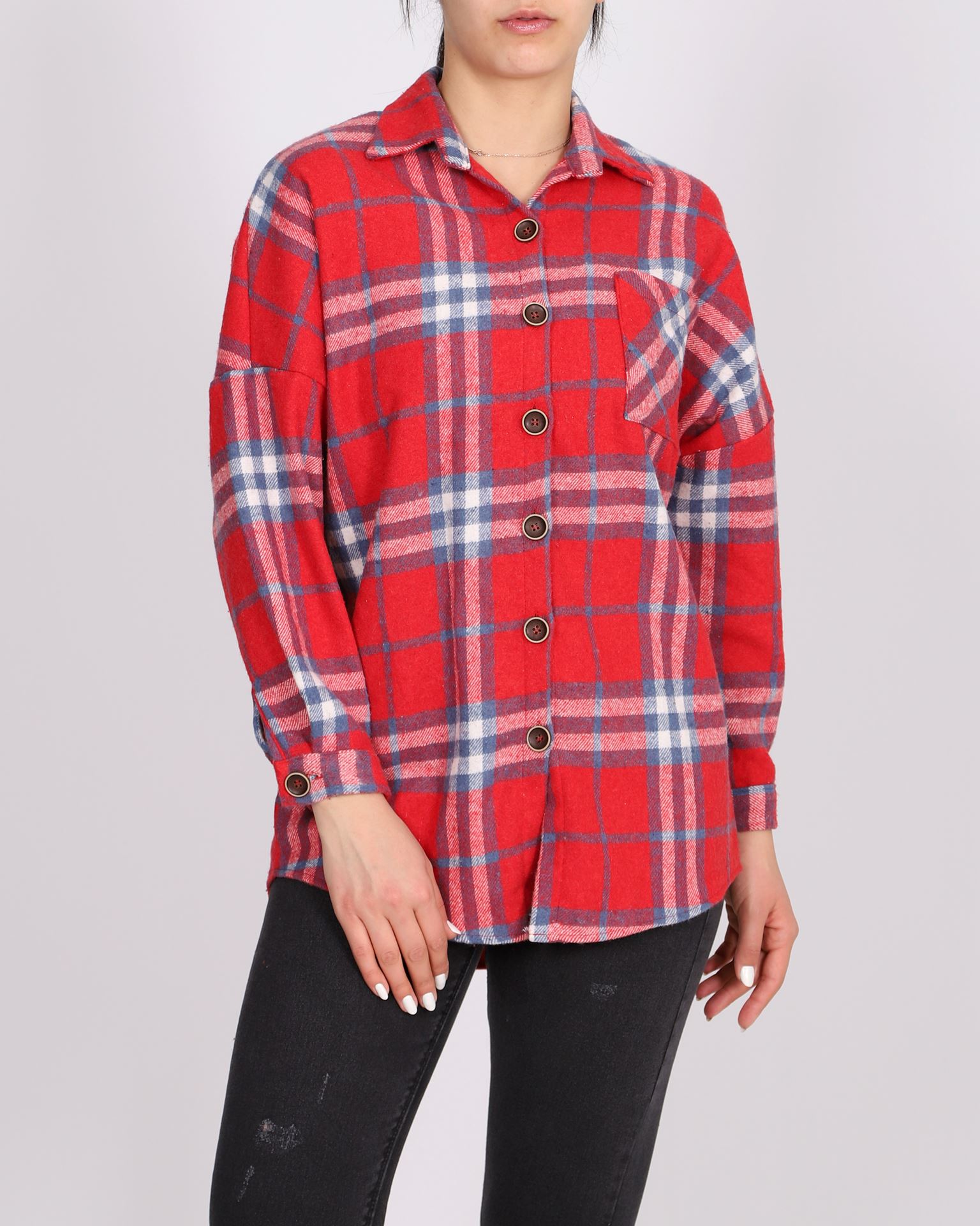 Kırmızı Ekose Desen Oversize Cepli Gömlek GML105