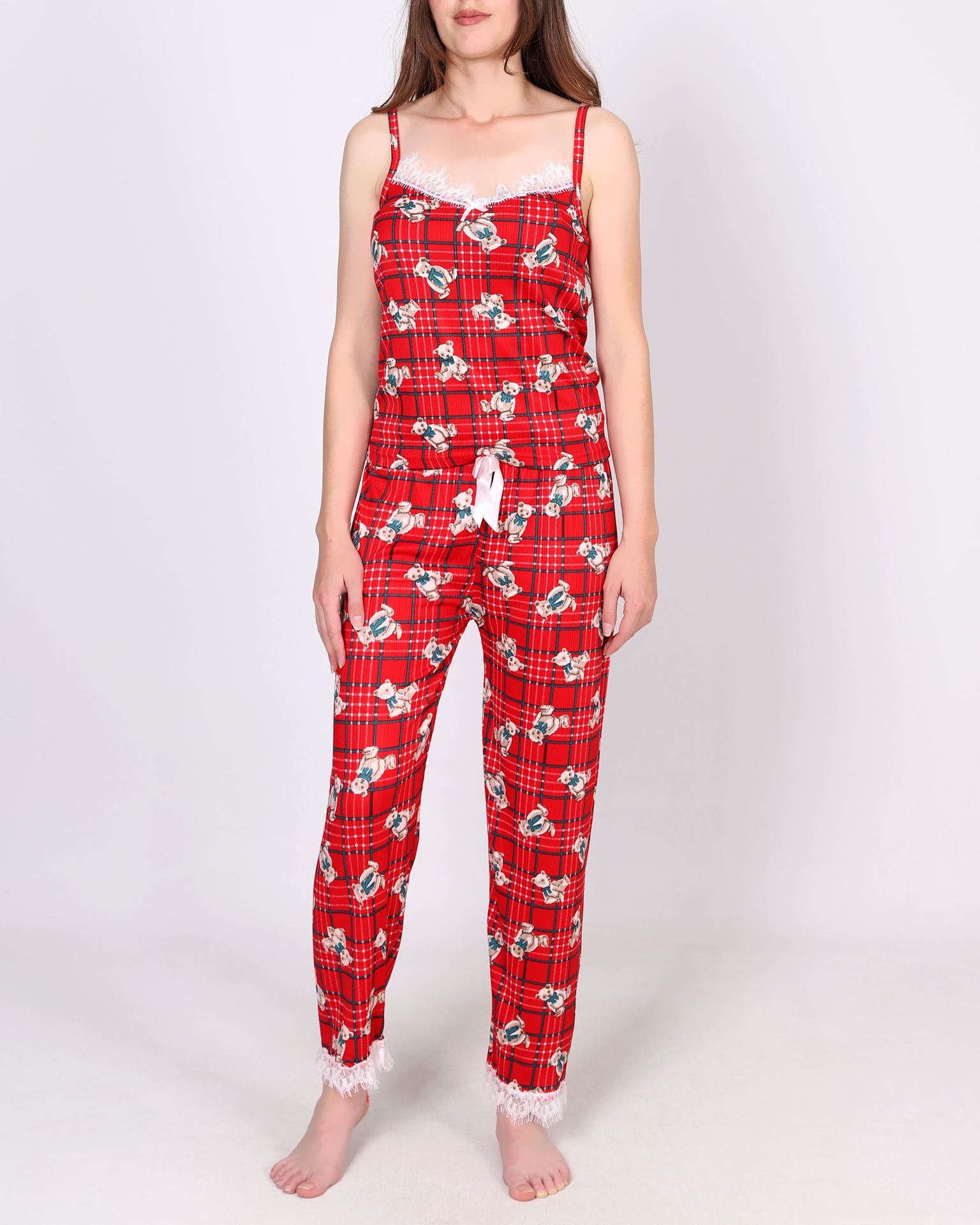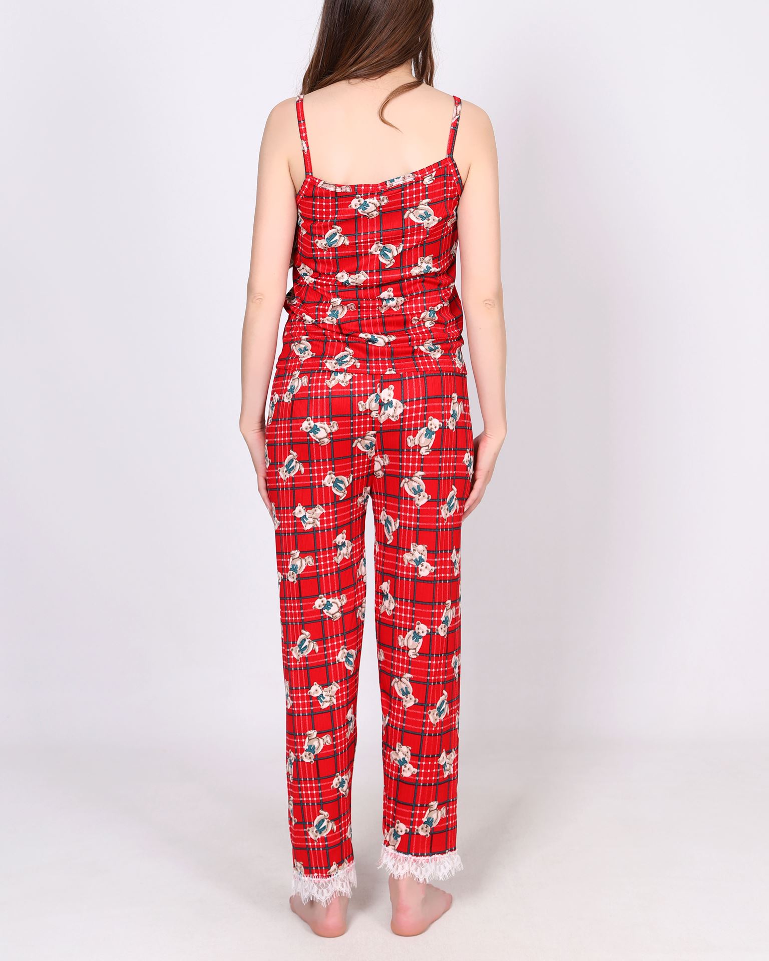 Kırmızı İp Askılı Pijama Takımı PJM2031