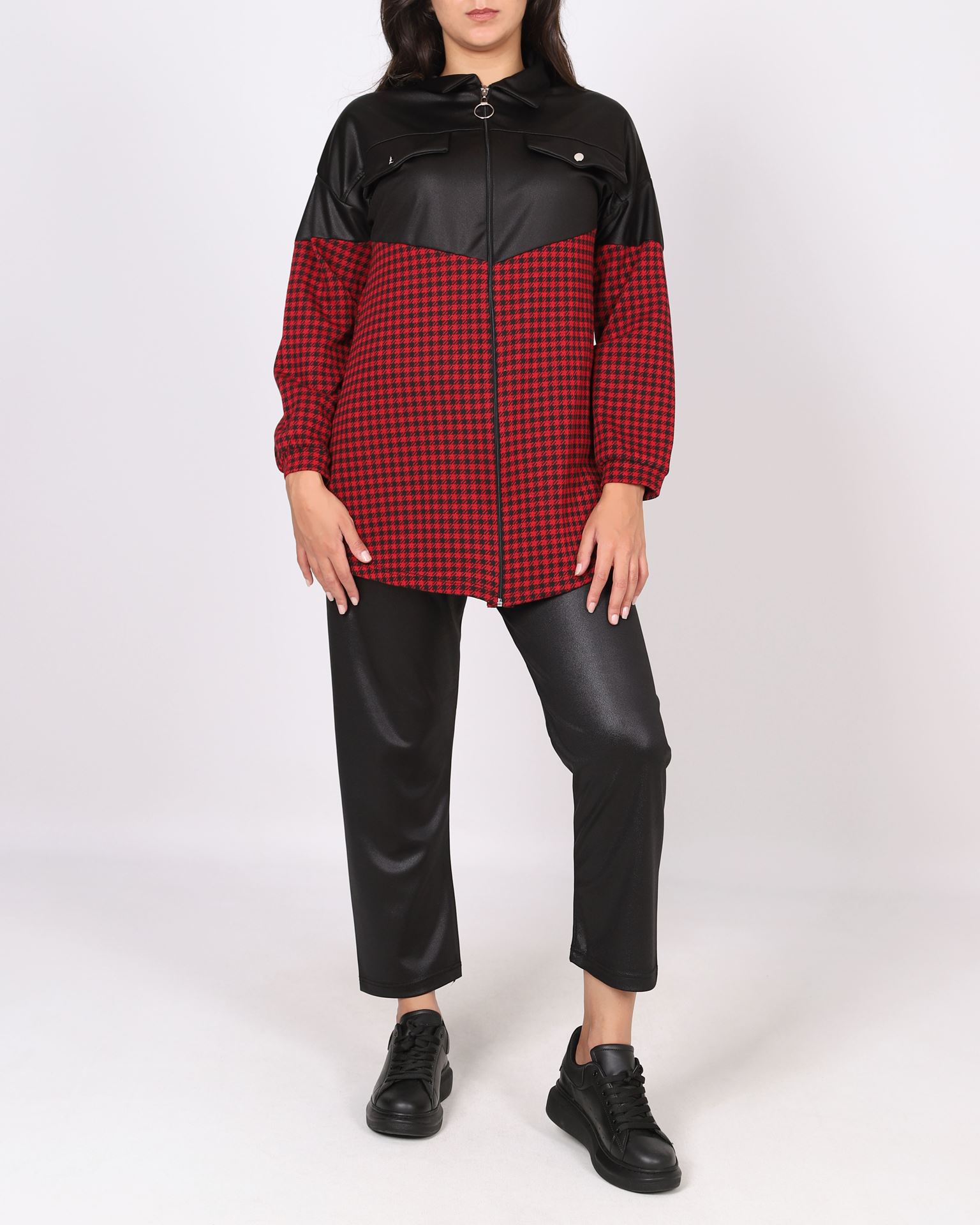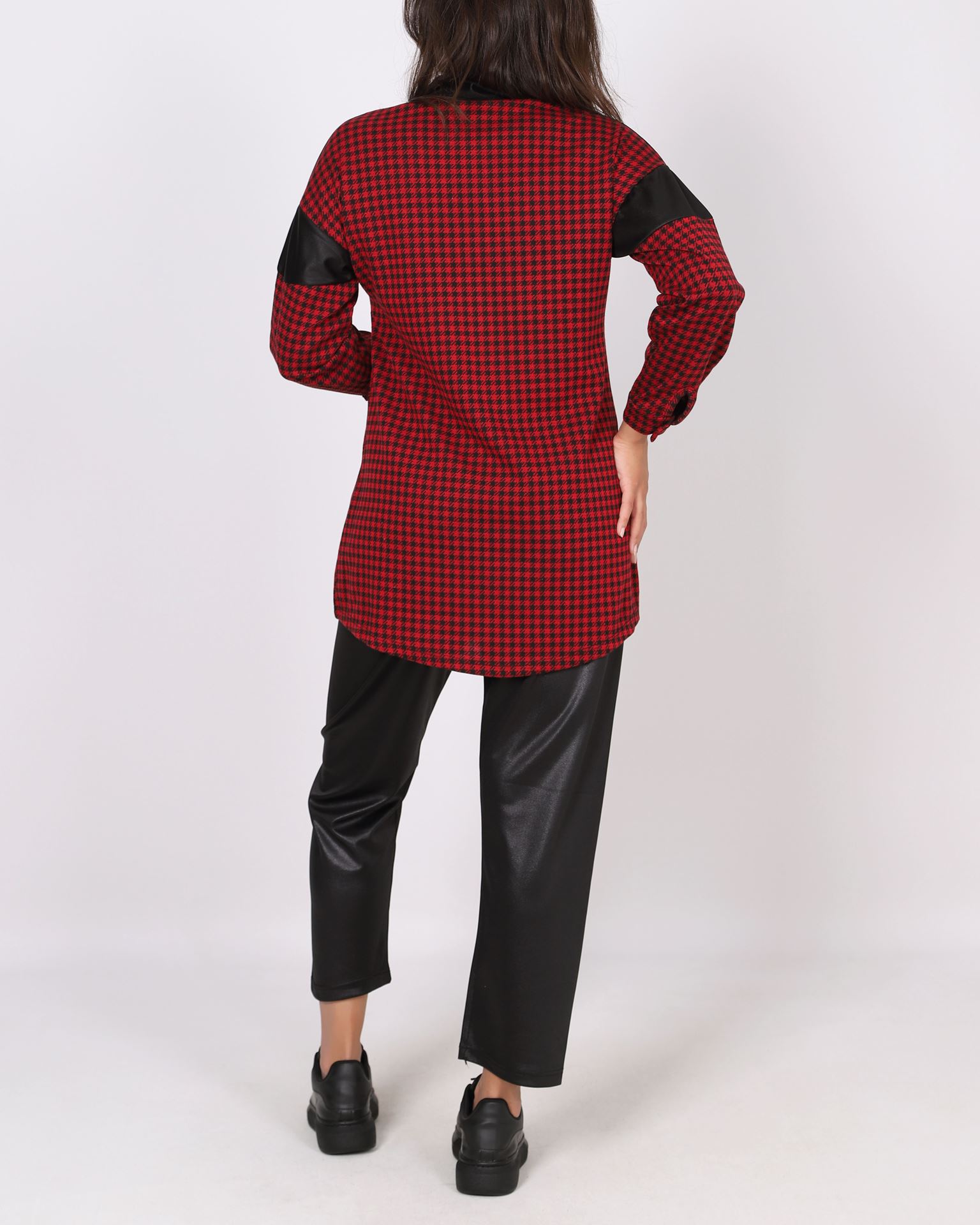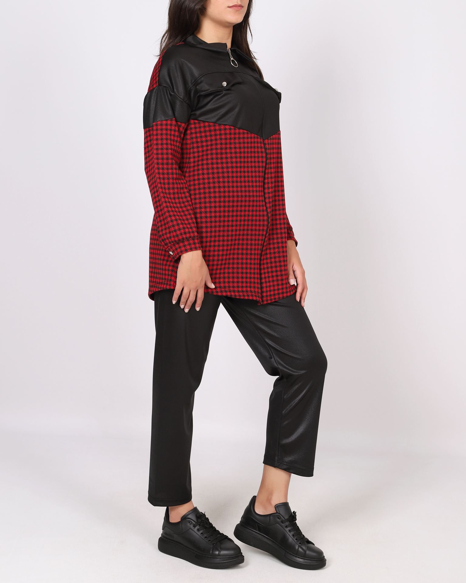 Kırmızı Kazayağı Garnili Parlak Krep İkili Takım TKM2595