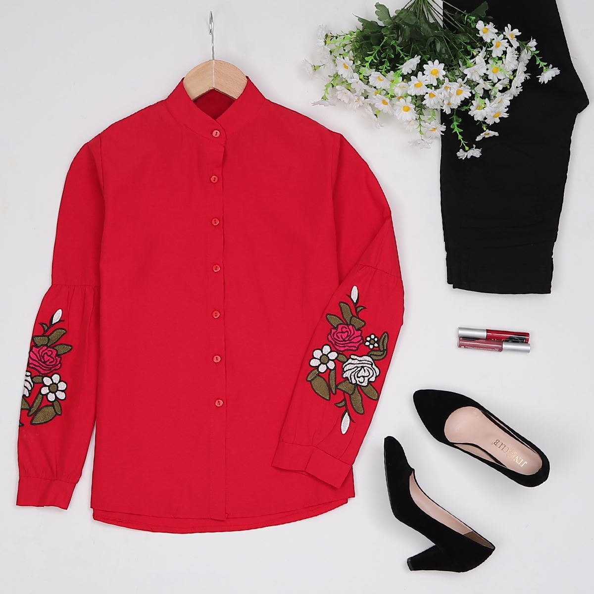 Kırmızı Kolu Nakışlı Gömlek GML004