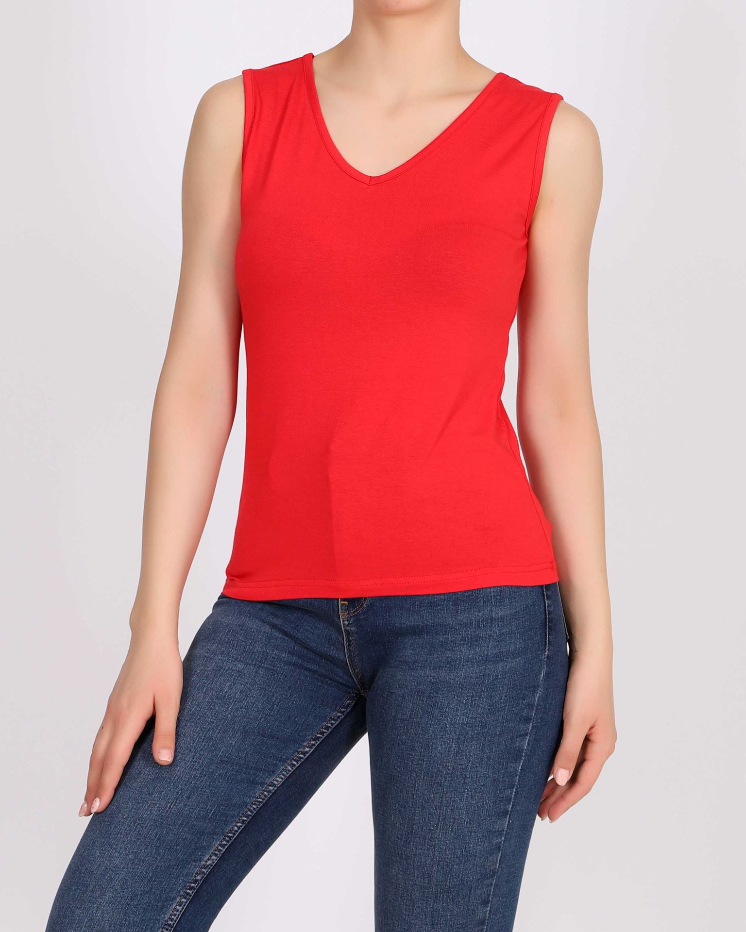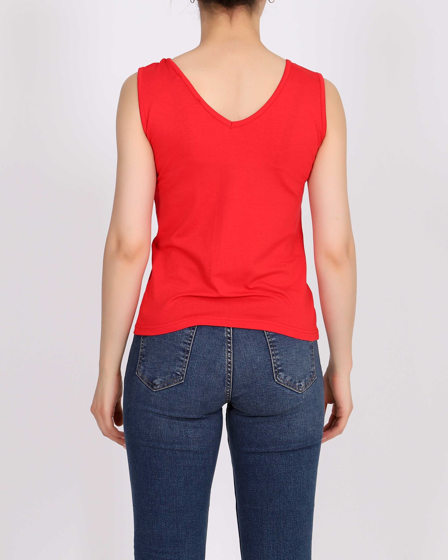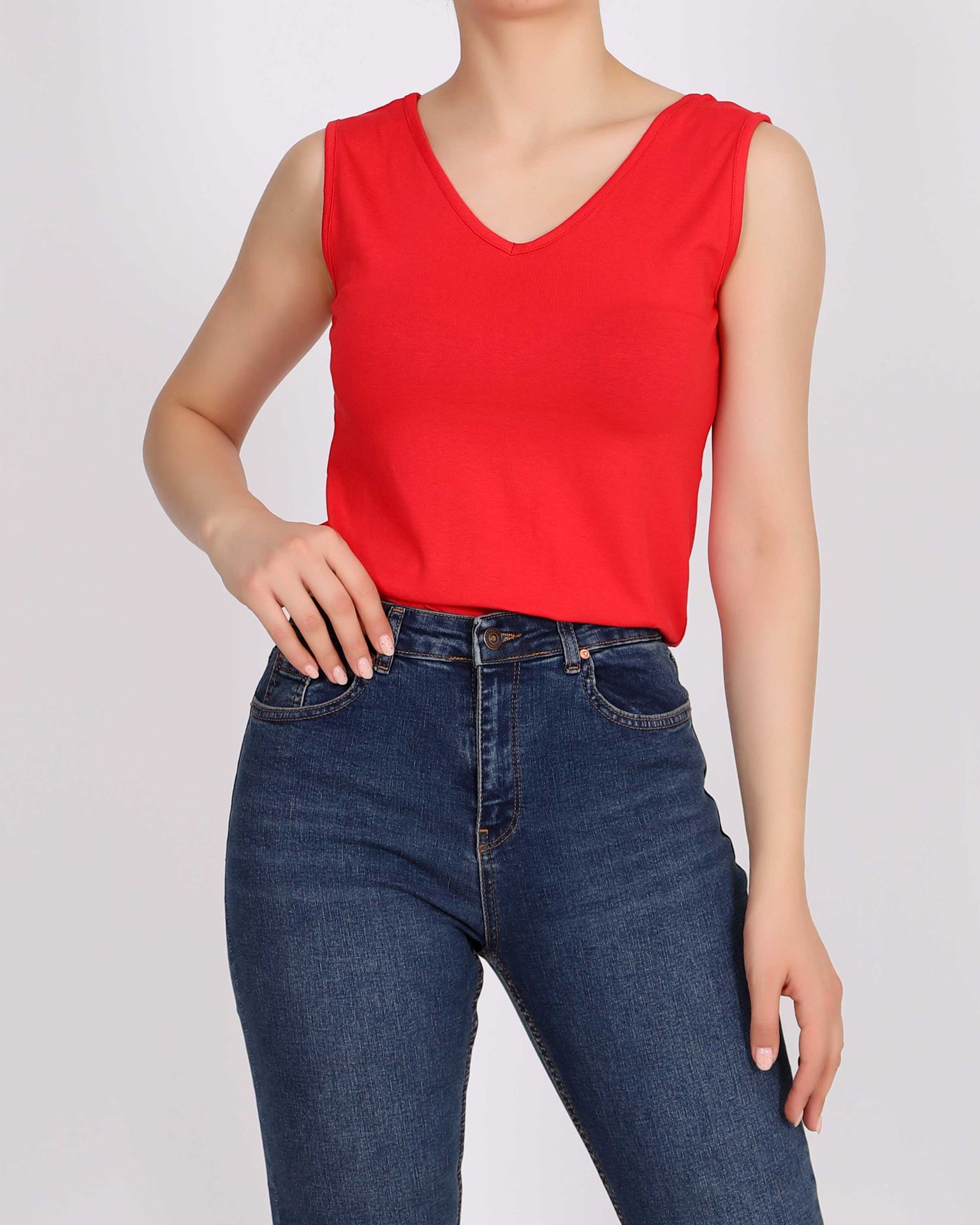 Kırmızı Ön Arka V Yaka Bluz BLZ245