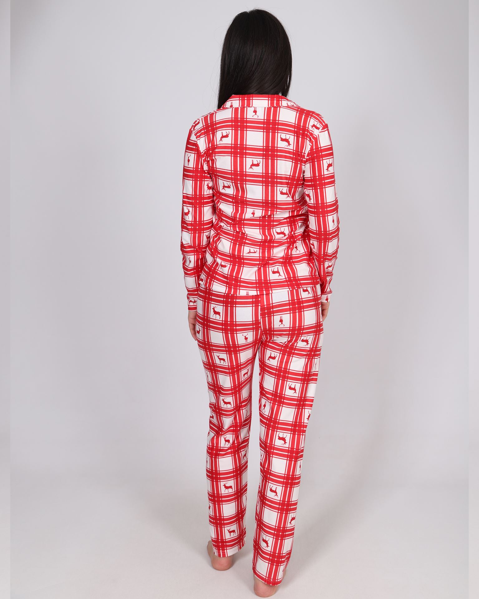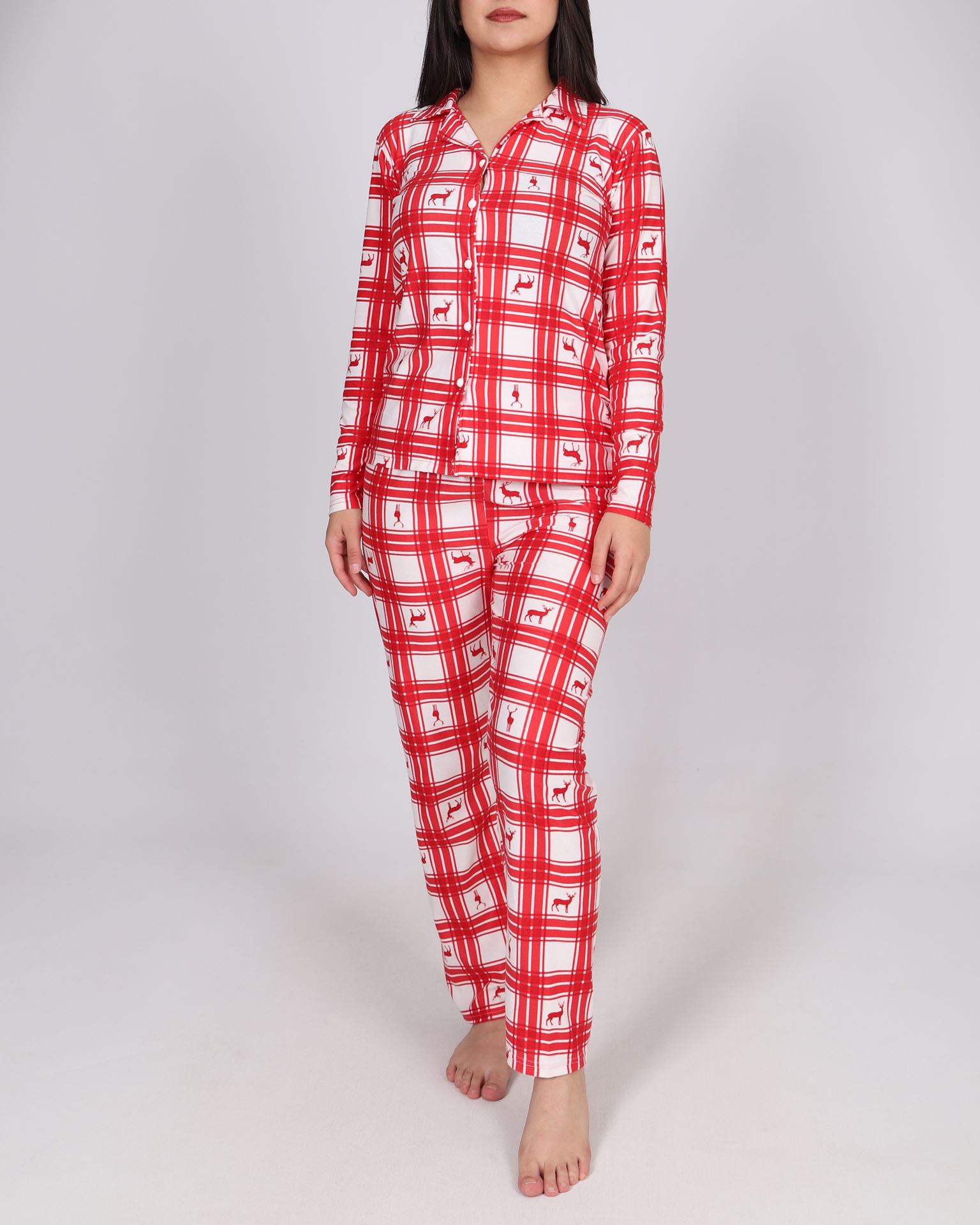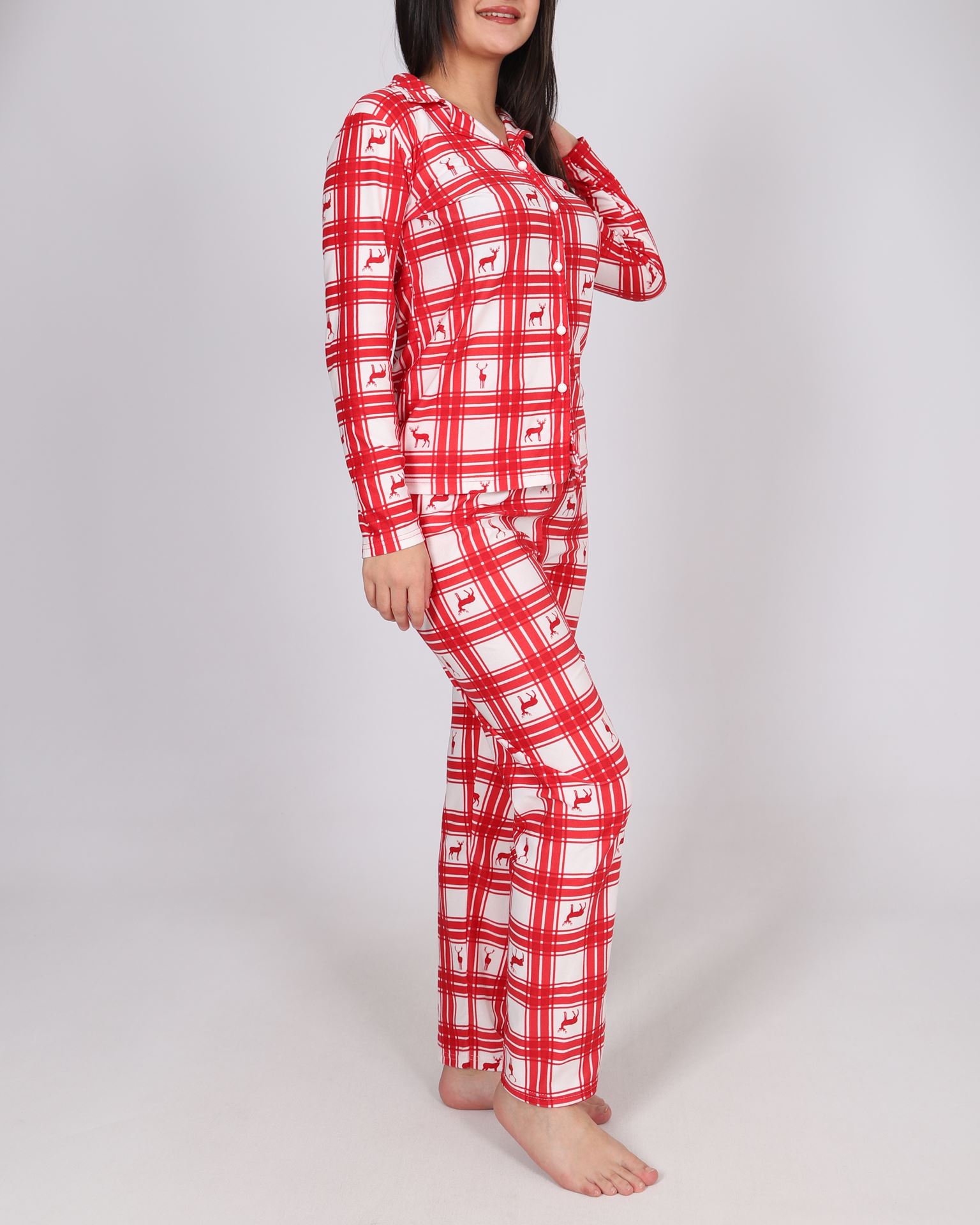 Kırmızı Süet Düğmeli Pijama Takımı PJM2113